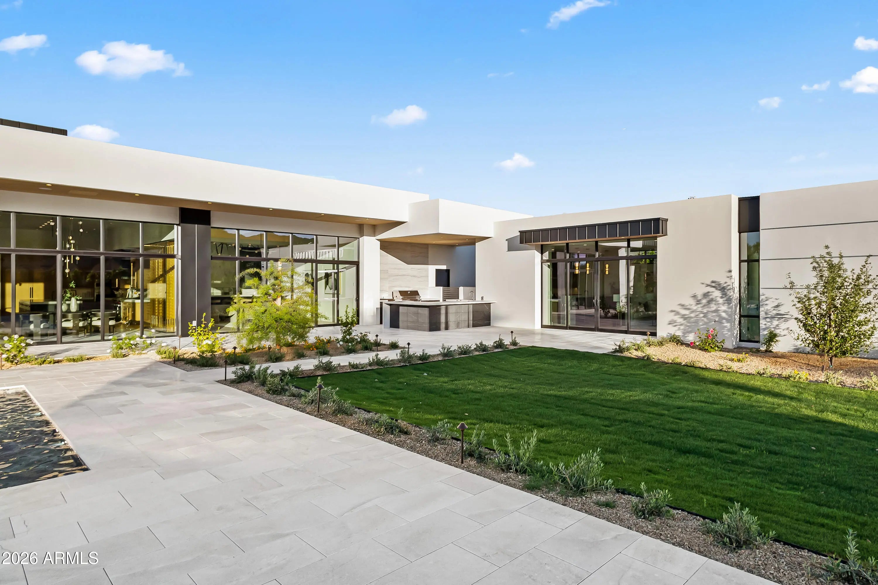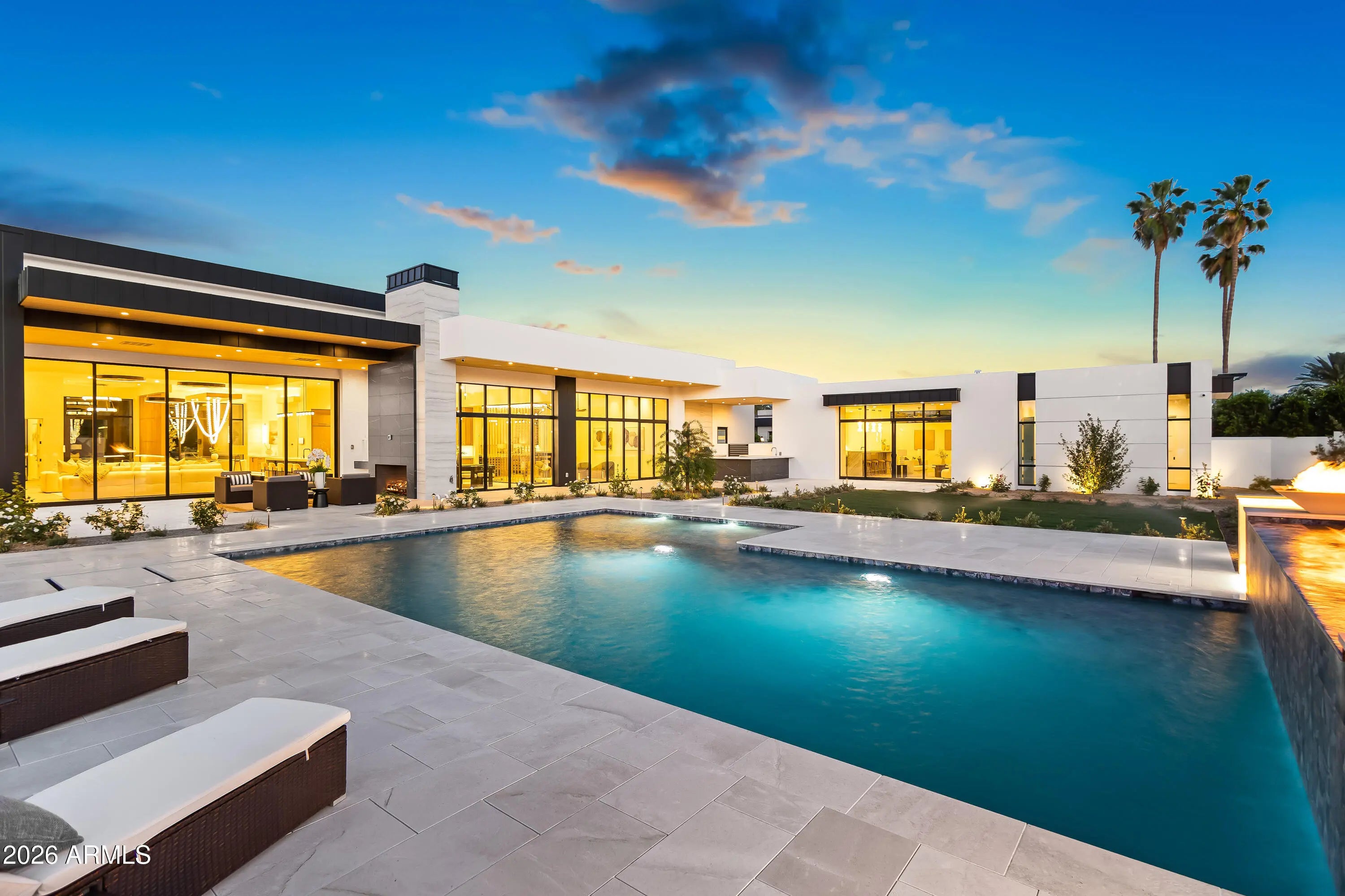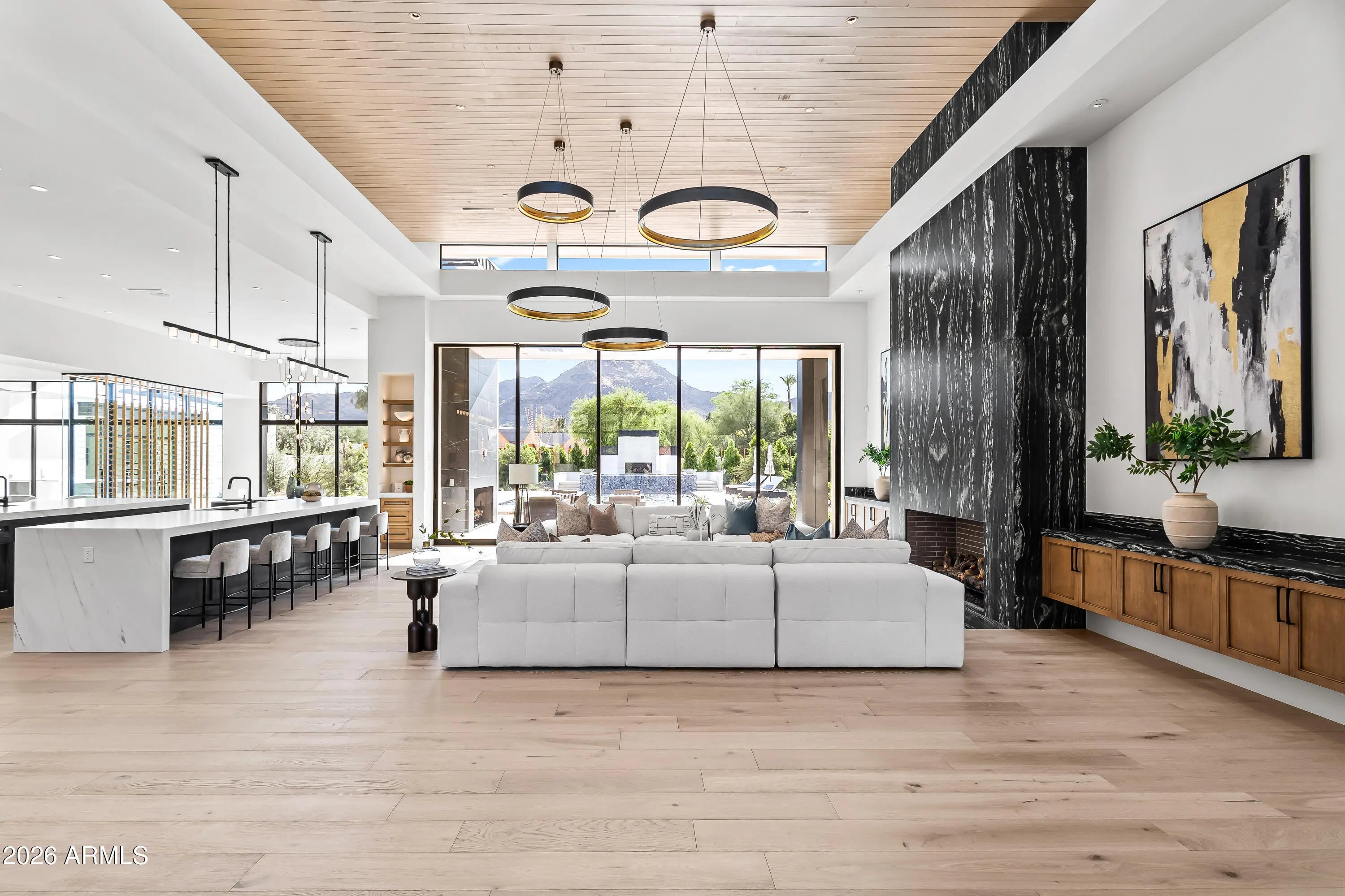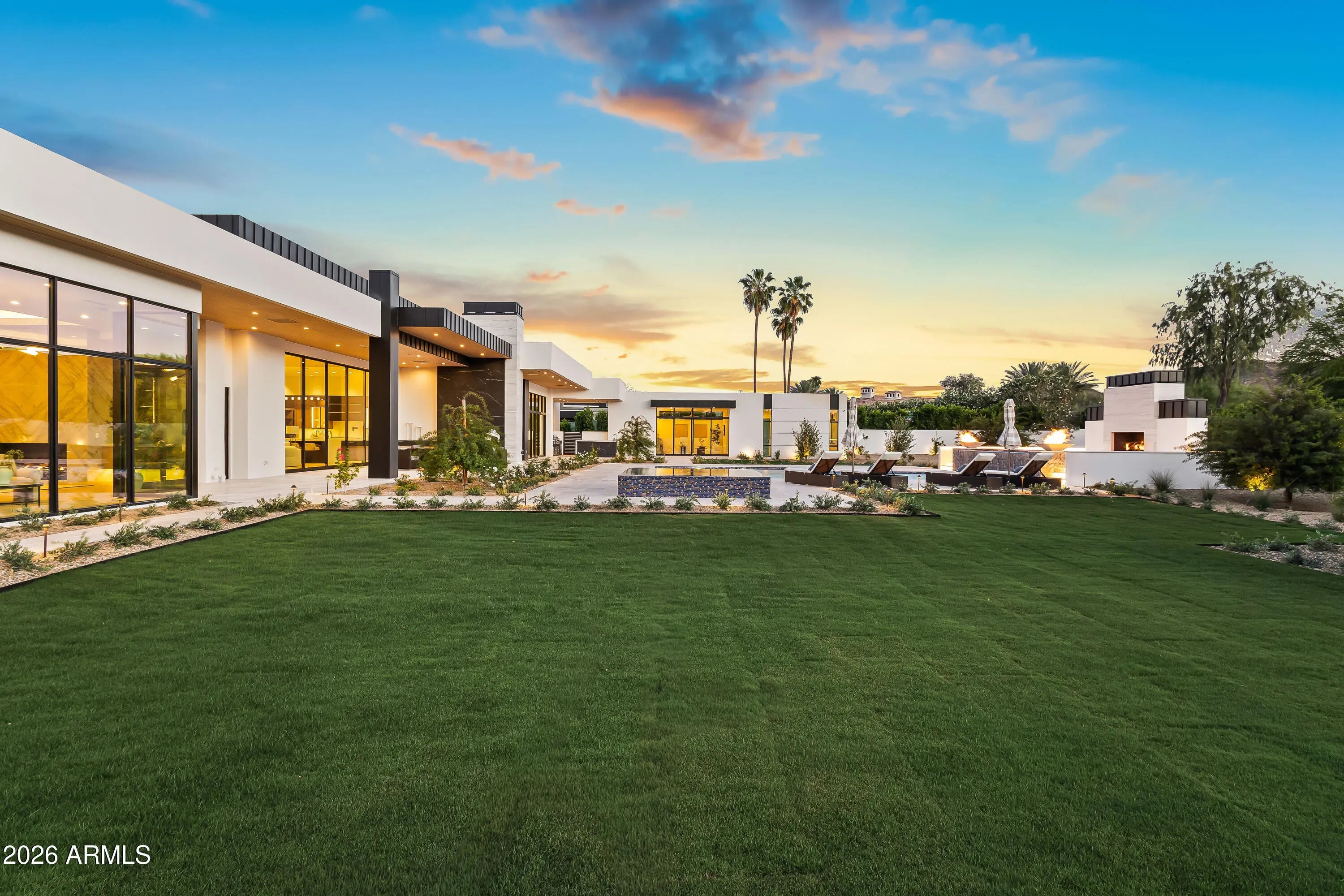 Newly completed architectural masterpiece showcasing breathtaking Mummy Mountain views in the heart of Paradise Valley. Situated on an expansive 1+ acre lot within the prestigious Camelback Country Club Estates, this exceptional single-level estate offers refined desert luxury and seamless indoor-outdoor living. The main residence features 4 spacious bedrooms and 6 spa-inspired bathrooms, complemented by a private 1 bed/1 bath guest casita complete with its own kitchen and living area--ideal for guests or multigenerational living. Designed for both grand entertaining and everyday comfort, the open-concept floor plan includes a stunning great room, formal dining area, and elegant living room anchored by a dramatic marble fireplace. The chef's kitchen is a true centerpiece, featuring dual oversized islands, a breakfast nook, and a fully equipped butler's pantry. The luxurious primary suite offers a private sitting area, direct access to a serene courtyard, an adjoining fitness room, and a spa-like bath with an expansive walk-in closet complete with in-suite laundry. Resort-style outdoor living includes a custom heated pool and spa, outdoor fireplace, fully equipped kitchen with island, and multiple lounge and entertaining spaces surrounded by mountain views. Additional highlights include a private office with custom built-ins, a game room with a striking glass wine wall and full wet bar, and a 4-car garage. Ideally located just minutes from top-rated schools, world-class resorts, fine dining, upscale shopping, and entertainment.