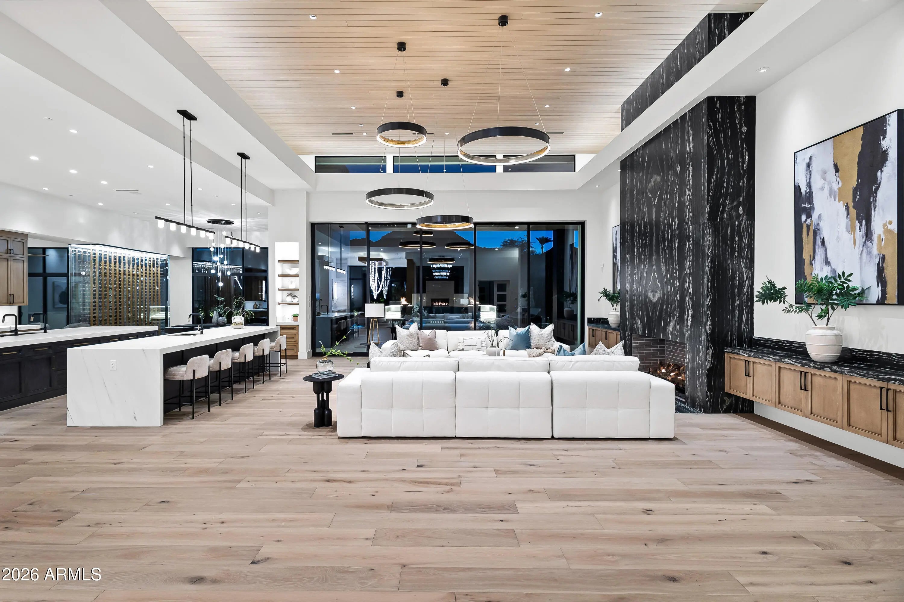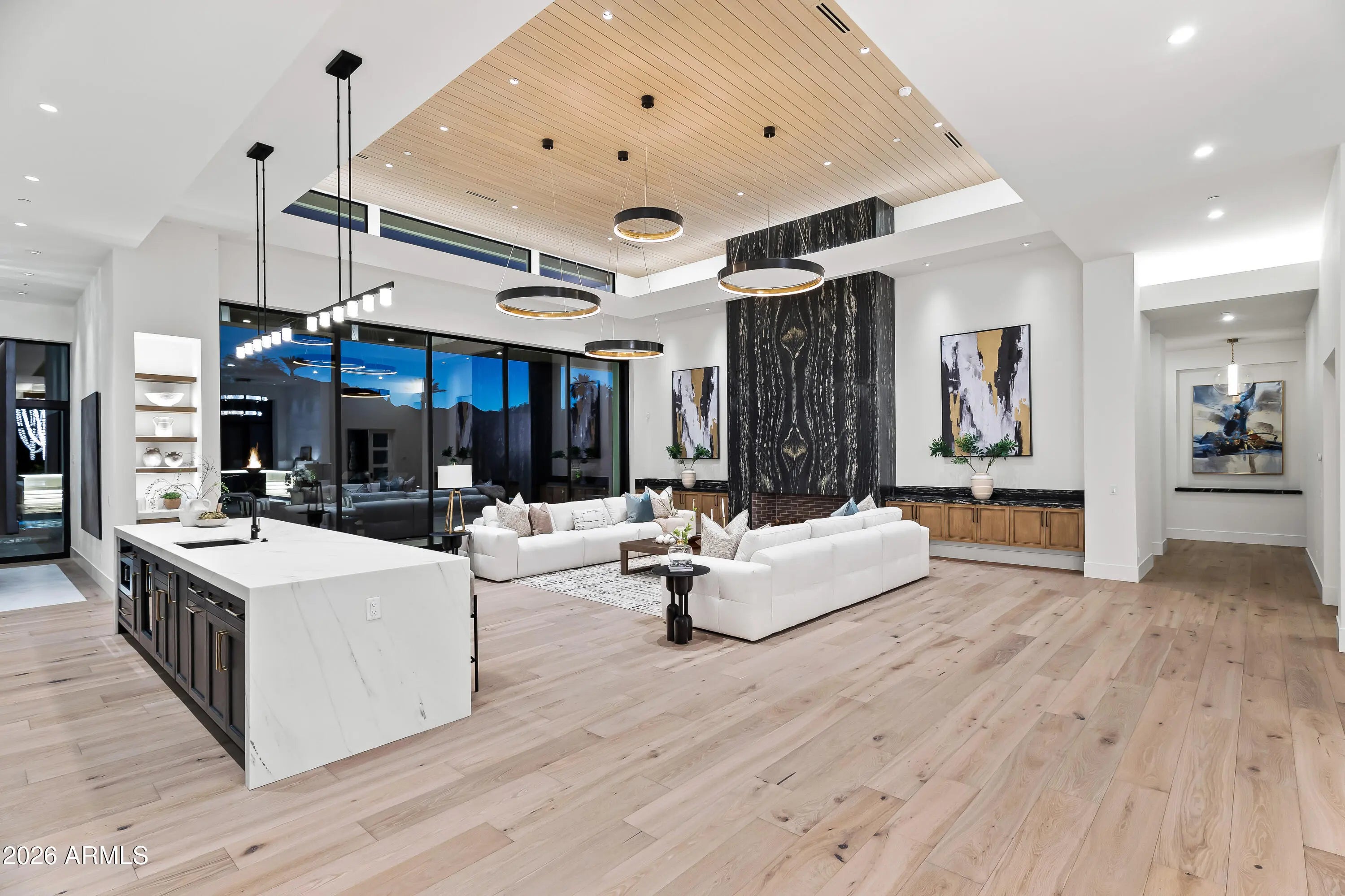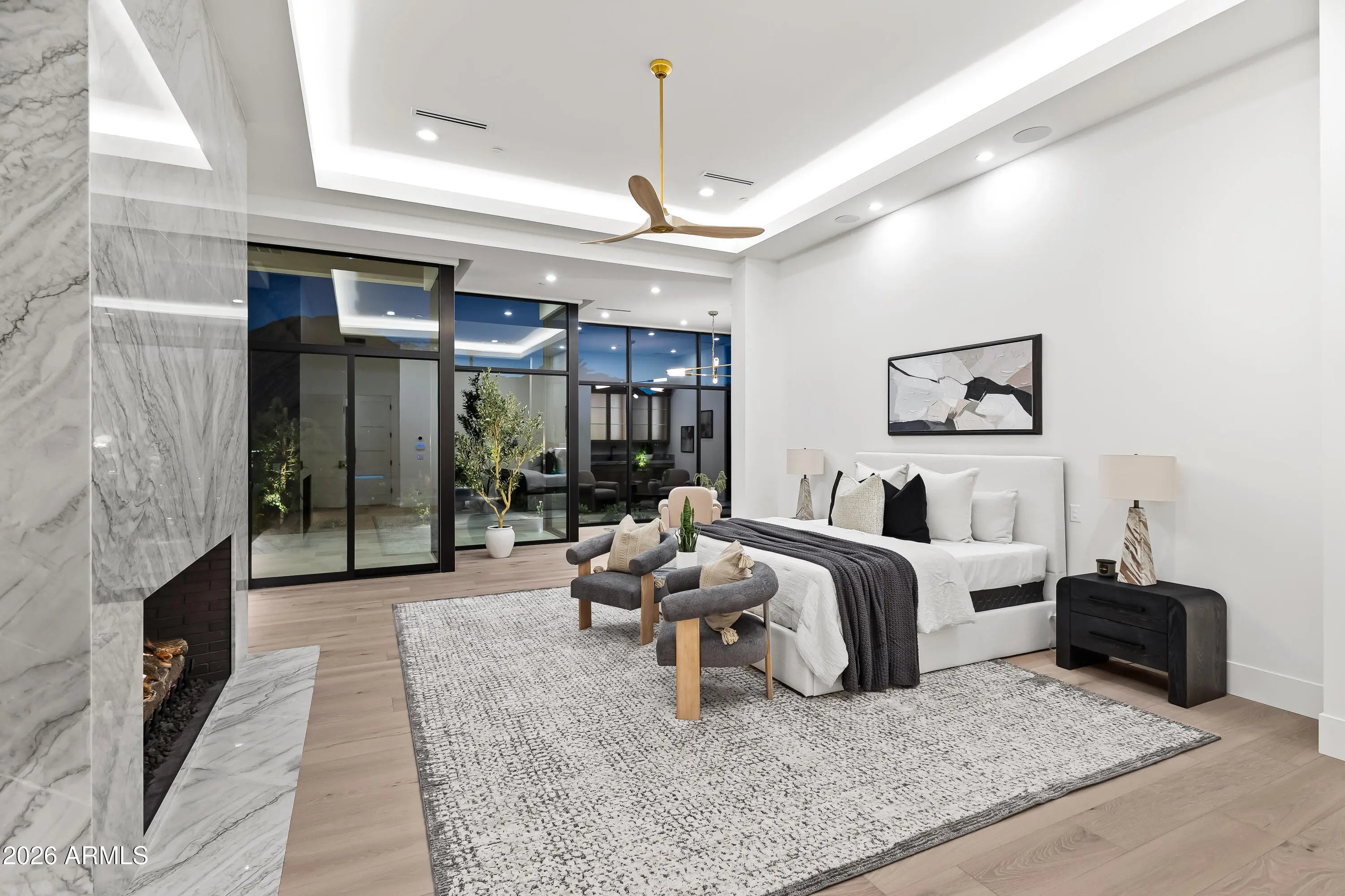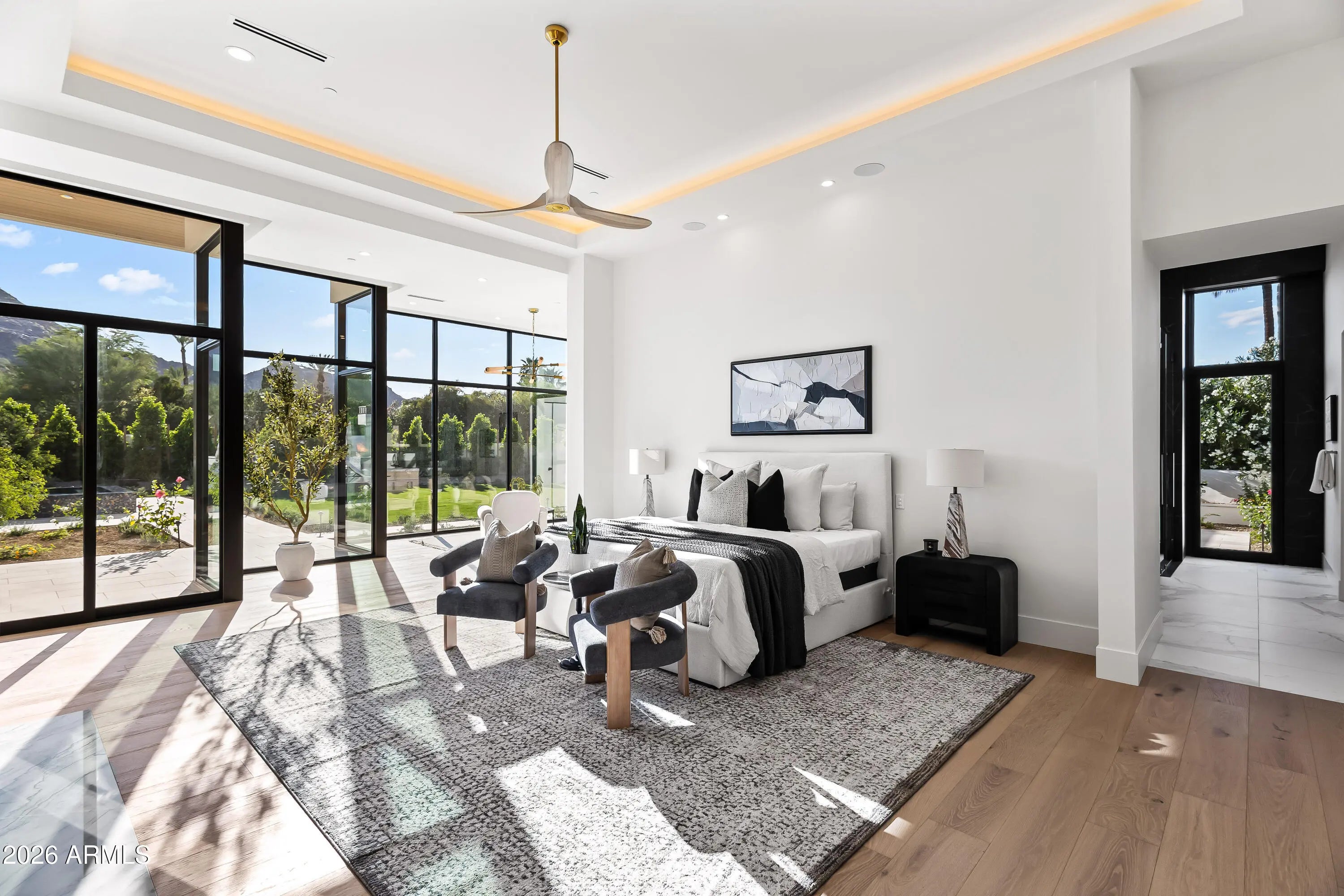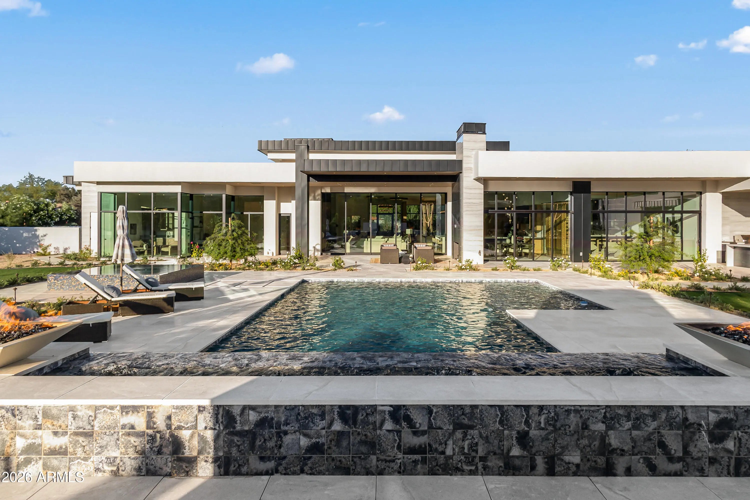 Newly completed architectural masterpiece showcasing breathtaking Mummy Mountain views in the heart of Paradise Valley. Situated on an expansive 1+ acre lot within the prestigious Camelback Country Club Estates, this exceptional single-level estate offers refined desert luxury and seamless indoor-outdoor living. The main residence features 4 spacious bedrooms and 6 spa-inspired bathrooms, complemented by a private 1 bed/1 bath guest casita complete with its own kitchen and living area--ideal for guests or multigenerational living. Designed for both grand entertaining and everyday comfort, the open-concept floor plan includes a stunning great room, formal dining area, and elegant living room anchored by a dramatic marble fireplace. The chef's kitchen is a true centerpiece, featuring dual oversized islands, a breakfast nook, and a fully equipped butler's pantry. The luxurious primary suite offers a private sitting area, direct access to a serene courtyard, an adjoining fitness room, and a spa-like bath with an expansive walk-in closet complete with in-suite laundry. Resort-style outdoor living includes a custom heated pool and spa, outdoor fireplace, fully equipped kitchen with island, and multiple lounge and entertaining spaces surrounded by mountain views. Additional highlights include a private office with custom built-ins, a game room with a striking glass wine wall and full wet bar, and a 4-car garage. Ideally located just minutes from top-rated schools, world-class resorts, fine dining, upscale shopping, and entertainment.