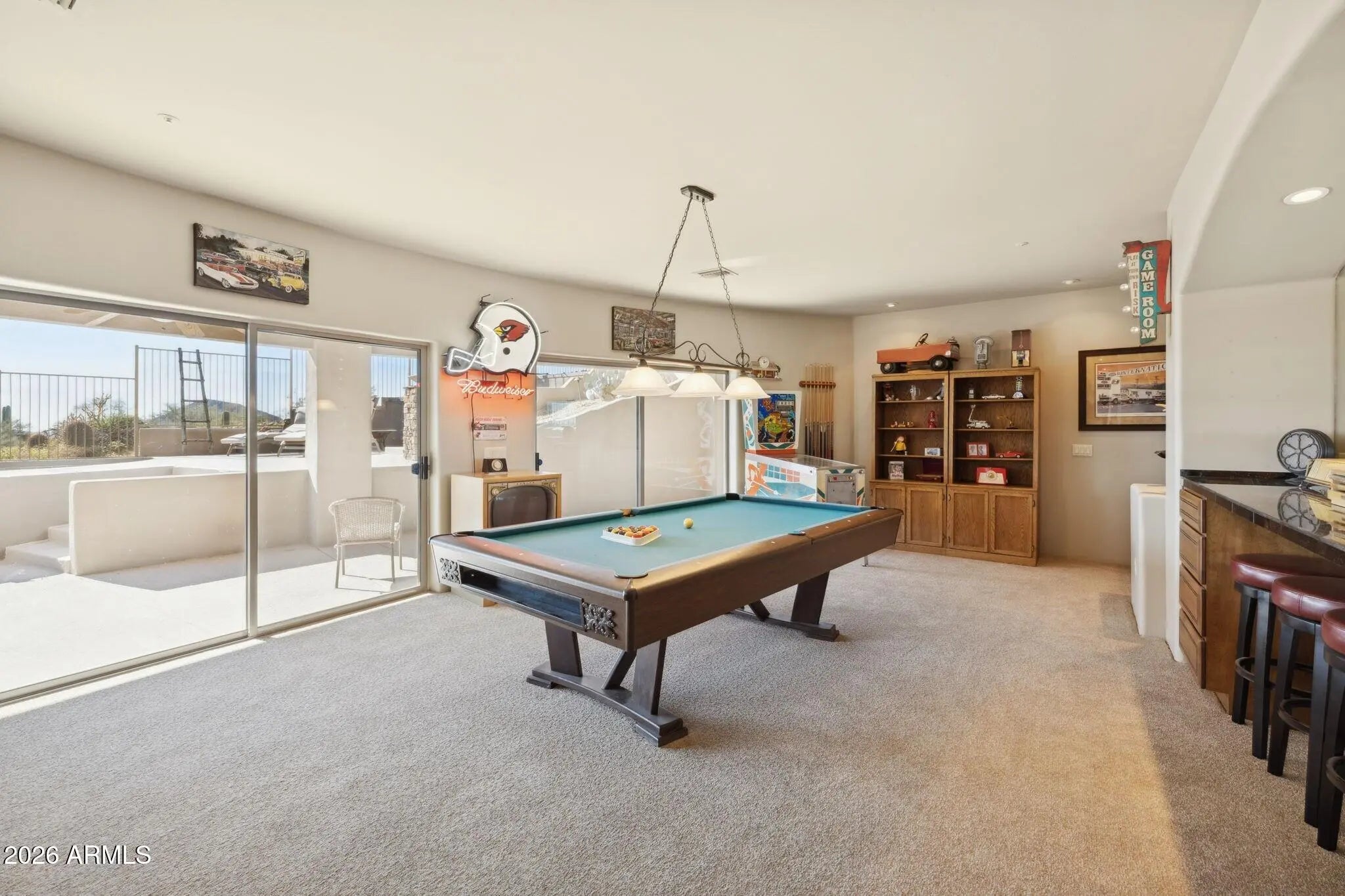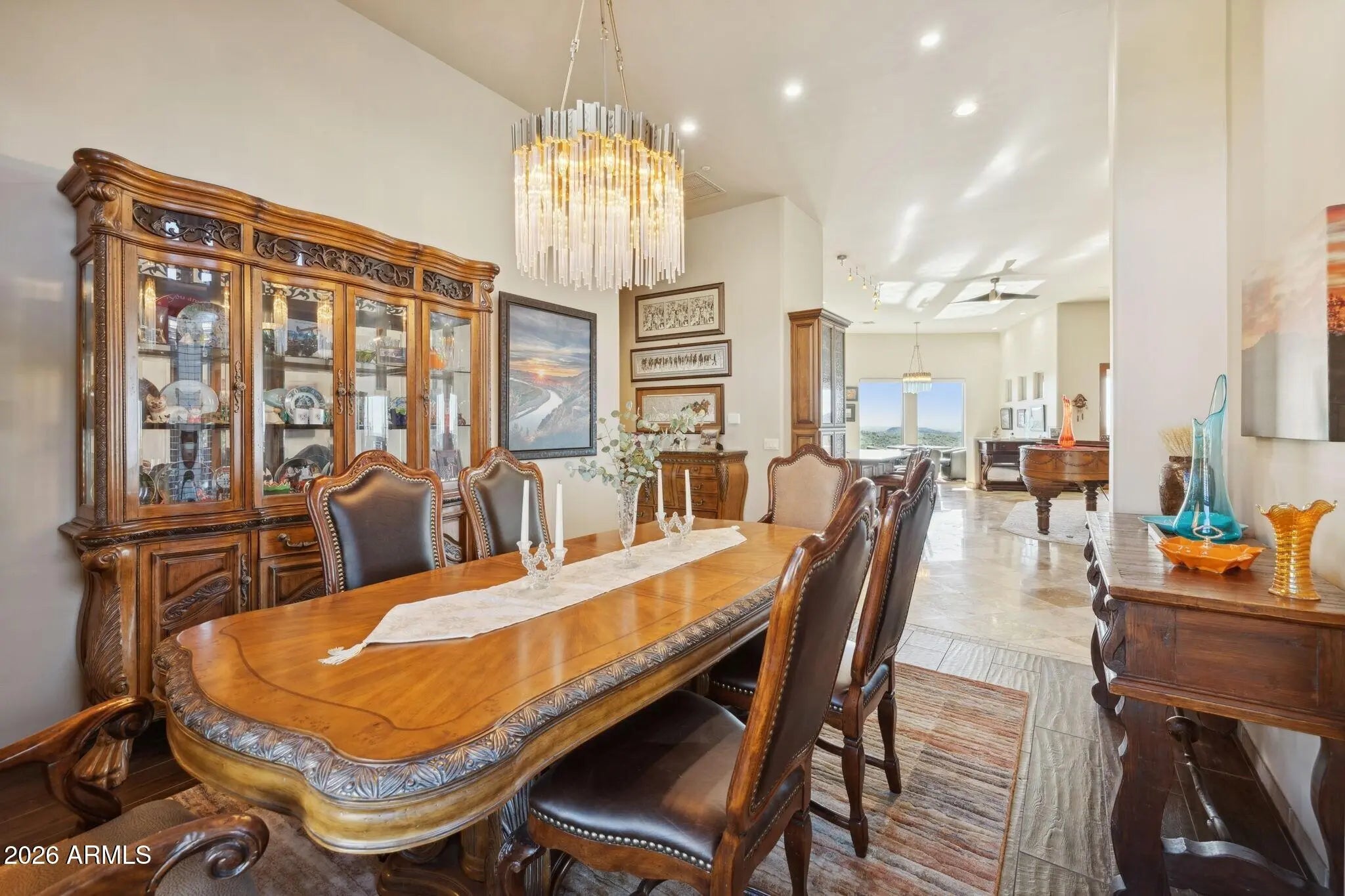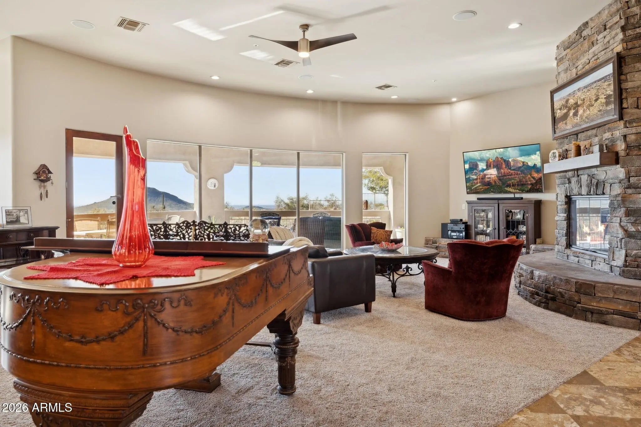 Set within the guard-gated Eagle Mountain, this property offers a rare combination of flexibility, privacy, and lifestyle-driven design, all framed by sweeping views from Red Mountain to Camelback and the soft glow of city lights that emerge each evening. At the heart of the home is a Great Room layout that lives as comfortably as a single level home, creating ease and simplicity for everyday living. The detached casita is a standout feature, offering its own private entrance, kitchenette, fireplace, and patio. It provides a fully self-contained living environment that is ideal for long-term guests, multigenerational living, or a dedicated work /creative space. It feels intentional, comfortable, and entirely its own, while still being seamlessly connected to the main residence. Thoughtfully designed transitions between indoor and outdoor living further enhance the sense of space and livability throughout. Equally compelling is the property's exceptional garage capacity. Designed to accommodate a substantial vehicle collection, including a fully equipped RV garage with electrical service and a sewer dump, this home caters to those who value capability as much as comfort. Whether housing a collection, supporting travel, or simply allowing room to grow, the possibilities here are both rare and meaningful. Additional garage spaces provide flexibility for storage, hobbies, or workshop use, complementing the home's overall versatility. The lower level expands the living experience even further, offering a full bar, game room, theater, and a full kitchen, creating a fully self-sufficient lower-level living environment, along with an additional bedroom and bath. It creates a natural hub for gathering, entertaining, or extended stays, giving the home a dynamic versatility that evolves with your lifestyle. This level lives comfortably as its own retreat, ideal for hosting while maintaining privacy and separation from the main living areas. The design adapts effortlessly to a variety of needs, whether enjoying a quiet morning, hosting an intimate dinner, or welcoming a full house of guests. Surrounded by desert beauty and designed with intention, this is a home that offers not just space, but freedom. Natural light fills the interior, and the connection to the outdoors is ever present, creating an atmosphere that feels both grounded and elevated. It is a place where your lifestyle can expand, evolve, and truly feel at home.