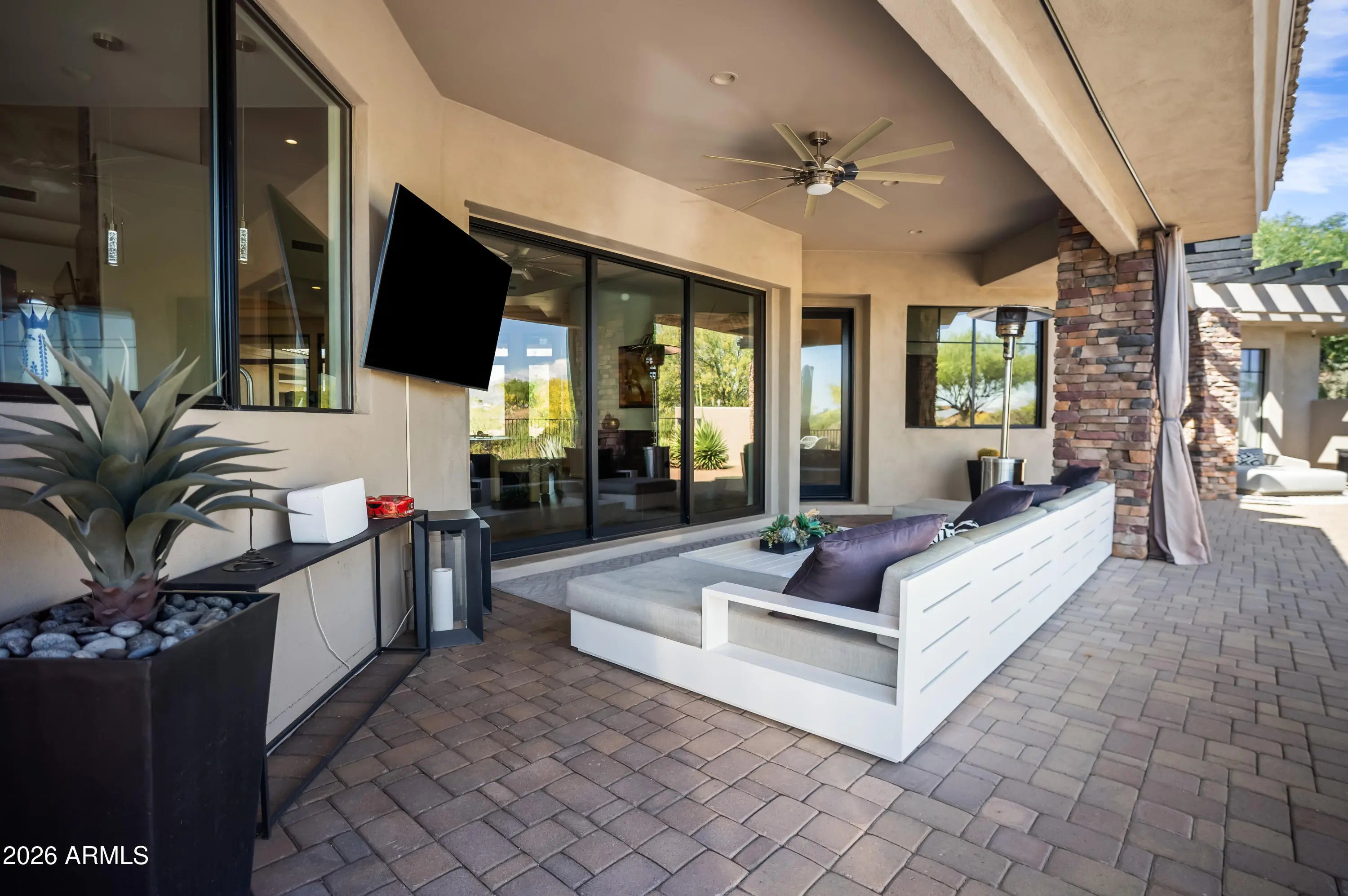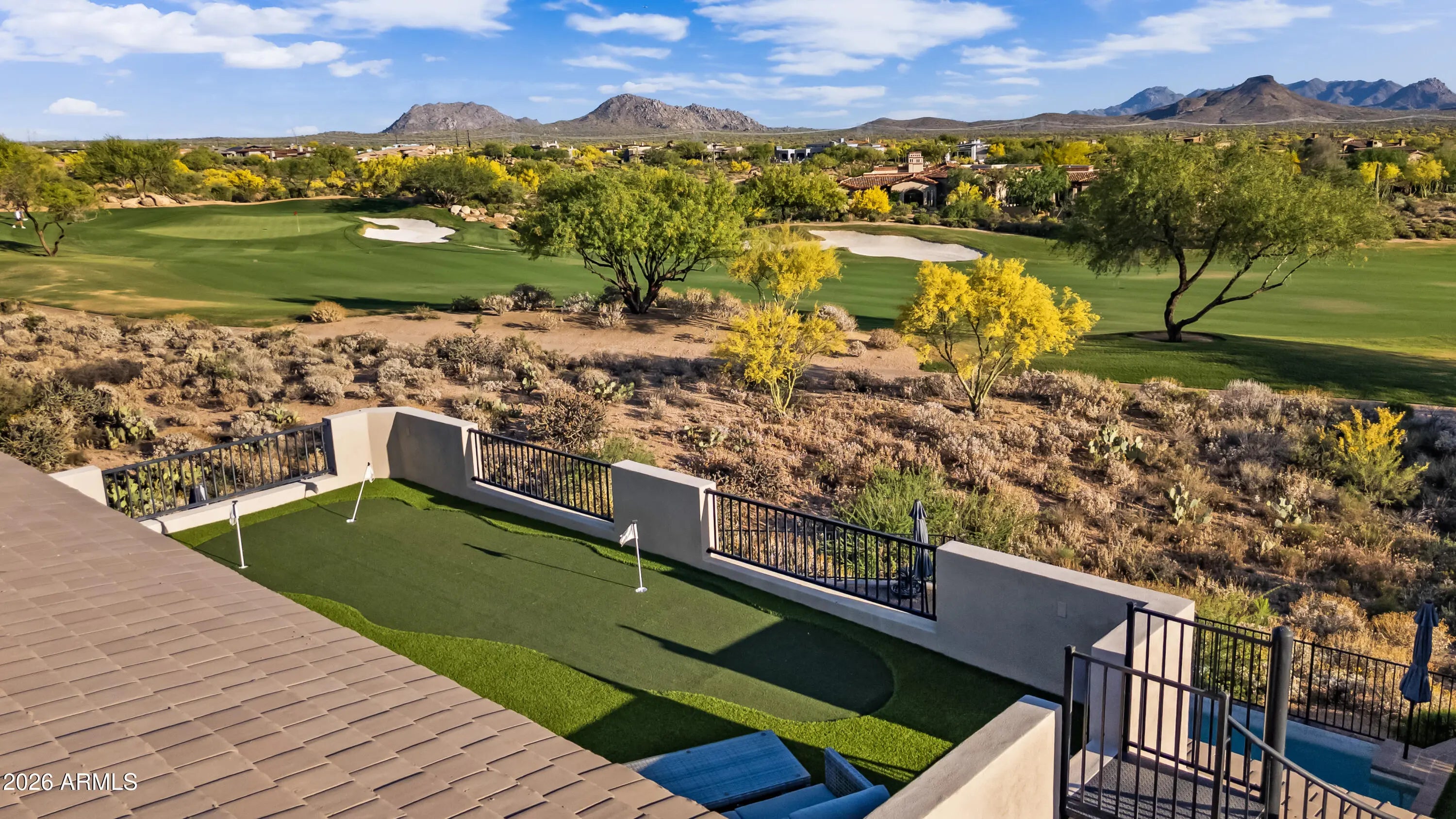 Perched on One of the Most Coveted Lots in all of Mirabel, this Stunning Scottsdale Residence Blends Luxury, Comfort, and Effortless Desert Living. Overlooking the 17th Fairway, the Home Captures Sweeping Golf Course and Mountain Views from Nearly Every Room--Anchored by a Dramatic Wall of Glass that Opens Fully to Merge Indoor and Outdoor Entertaining Spaces. Step Outside to a Spacious View Deck/Private Elevated Putting Green, Surrounded by Lush Desert Landscaping Designed for Low Maintenance Elegance. The Centerpiece is a Negative-Edge Pool that Visually Spills into the Fairway Beyond, Creating a Serene Resort-Style Atmosphere. Inside, the Freshly Renovated Kitchen Features Top-Tier Wolf, Sub-Zero, & Bosch Appliances, Ideal for both Casual Meals & Elegant Gatherings. The Home also Boasts Three Brand-New A/C Units, Ensuring Comfort Year-Round. Located in One of Scottsdale's Most Desirable Golf Course Communities, and Just Minutes from the Charm of Cave Creek and Carefree, this Property Perfectly Combines Sophistication, Privacy, and the Quintessential Arizona Lifestyle.