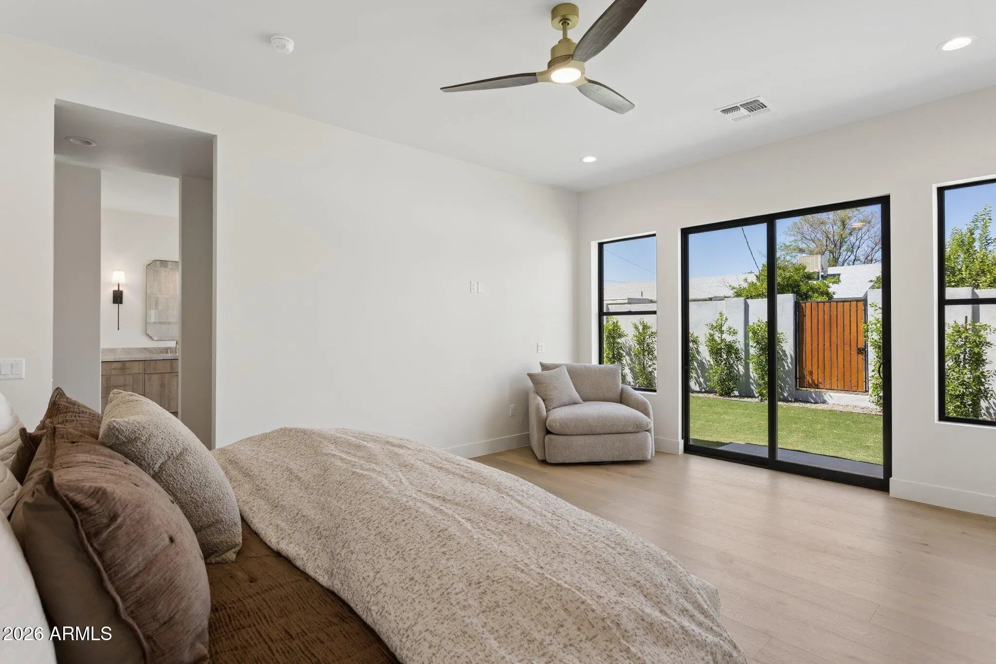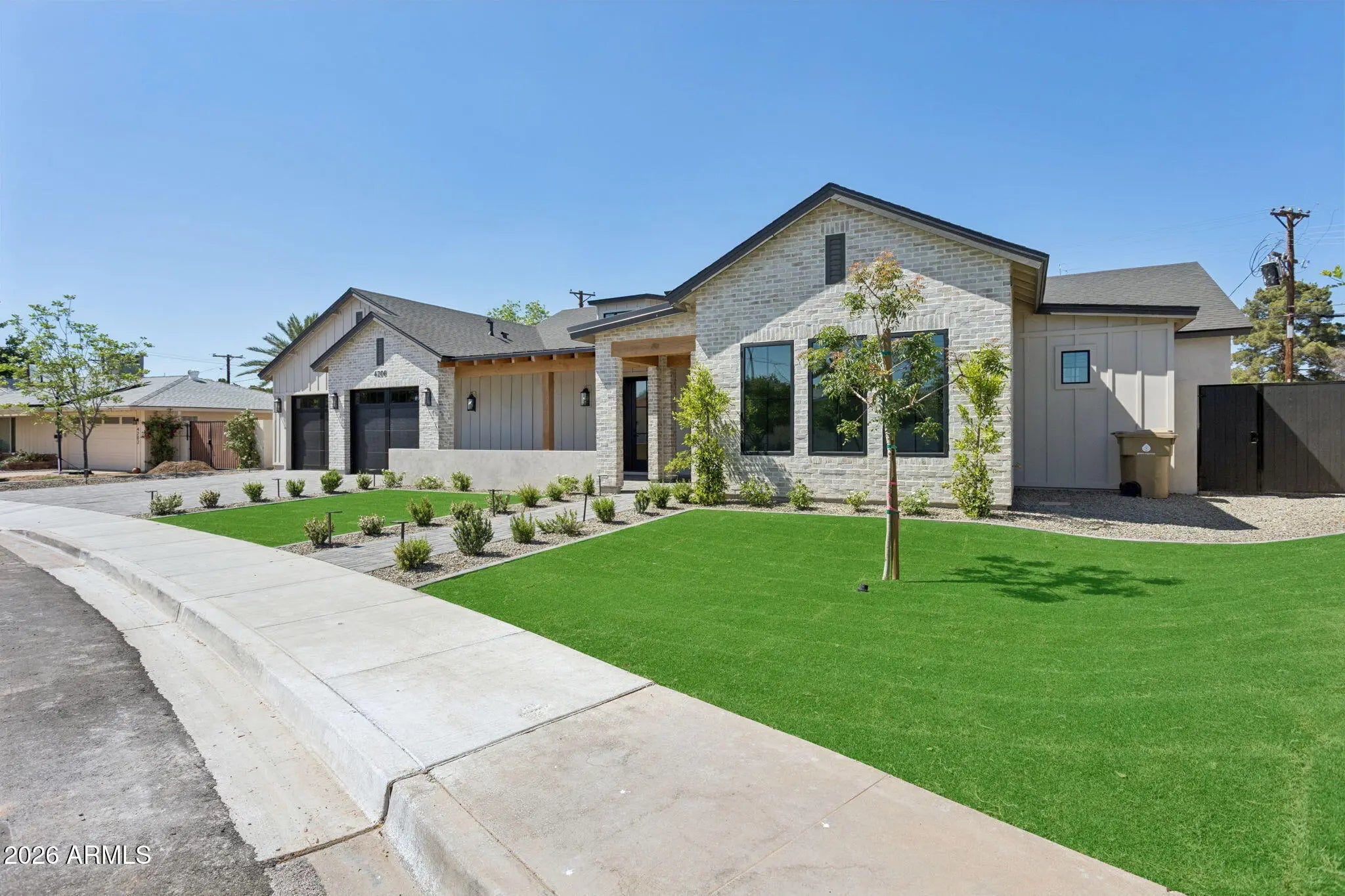 With its beautiful blend of painted brick, clean architectural lines, and modern farmhouse charm, this exceptional new construction home makes an immediate impression in the heart of Arcadia Osborn. Inside, the home unfolds with a thoughtful, highly livable floorplan designed for both everyday comfort and elevated entertaining. The kitchen anchors the main living space with an oversized island, Taj Mahal quartzite countertops, and custom cabinetry, creating a natural place to gather. A private office offers flexibility for work or study, while the dedicated dining room is ready for everything from intimate dinners to holiday celebrations. The primary suite feels like a true retreat, complete with a spa-inspired bath, a soaking tub, an oversized shower, and a generous walk-in closet. Each of the additional bedrooms is privately positioned away from the primary and features an ensuite bath, making the layout especially functional for family and guests. Outside, the backyard extends the living experience with a great patio and outdoor kitchen. Designed for both quiet evenings, easy entertaining, and the way families live today, this stunning new build comes together in one of Phoenix's most beloved neighborhoods. where new construction, charm, and location are rarely found in such balance.