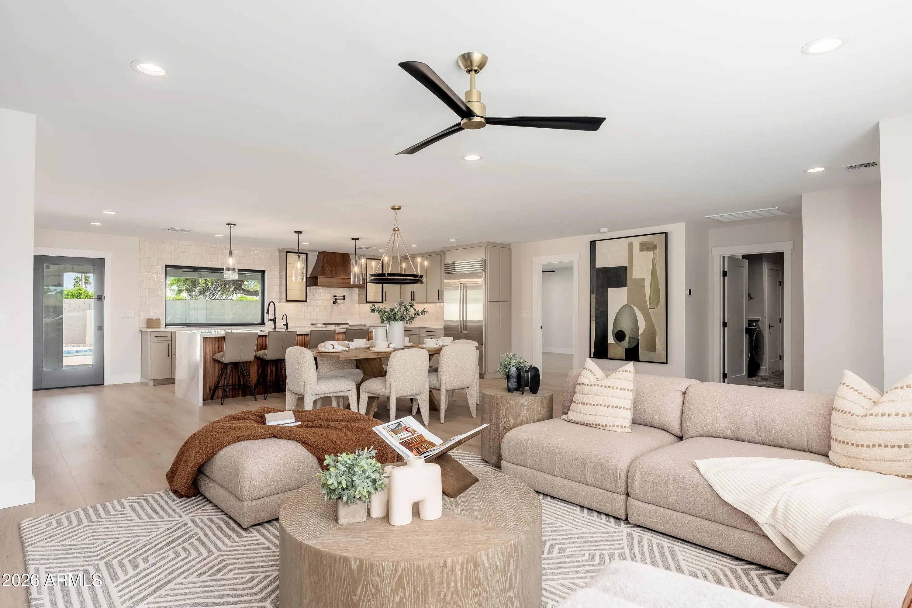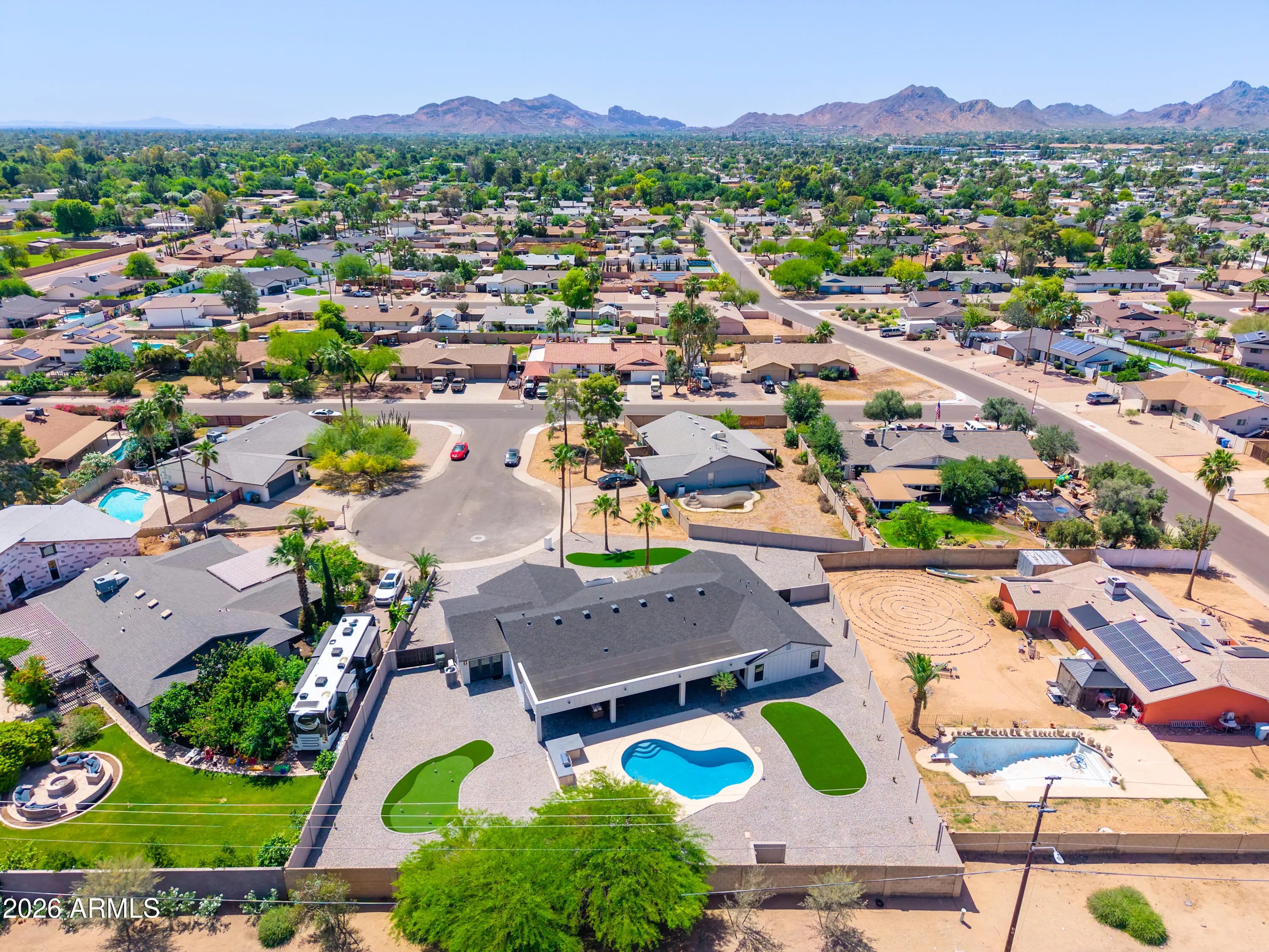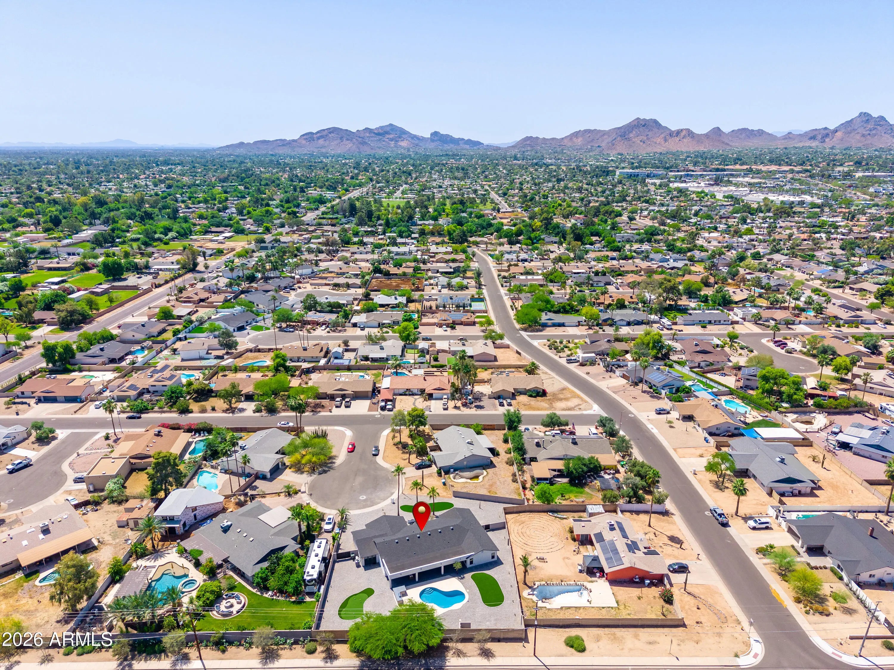 Another immaculate renovation and remodel by Mariano & Co in the sought after 85254 zip code. After adding 1,200 sqft, as well as a 3rd car garage, total livable size is now at 3,052 sqft. Property was taken down to the studs with no stone left unturned including NEW electrical wiring, plumbing, windows, insulation, HVAC, roof, front & back landscaping, and of course all the interior finishes. This open floorplan boasts 4 bedrooms and 4 bathrooms on a cul-de-sac lot with a north/south exposure. The chef's kitchen features WOLF appliances, Cambria countertops, waterfall island, pass-through window (excellent for outdoor entertaining), butler's pantry, and floor-to-ceiling wine closet. The primary suite includes a massive walk-in closet (with own washer & dryer), private backyard access, and an en-suite bathroom with dual vanities, soaking tub, and a huge shower with double shower zones. The garages offer epoxy flooring, with the 3rd car bay completely insulated with its own mini-split HVAC system ... ideal for the car enthusiast, a fitness room, or an extra indoor/outdoor recreation room with its direct yard access through glass French doors. The backyard showcases an oversized covered patio, pavers, refinished pool interior & decking, built-in BBQ, and a putting green to create the perfect Arizona oasis. Every detail of this home shines, highlighting its incredible features throughout--don't miss this Scottsdale gem!