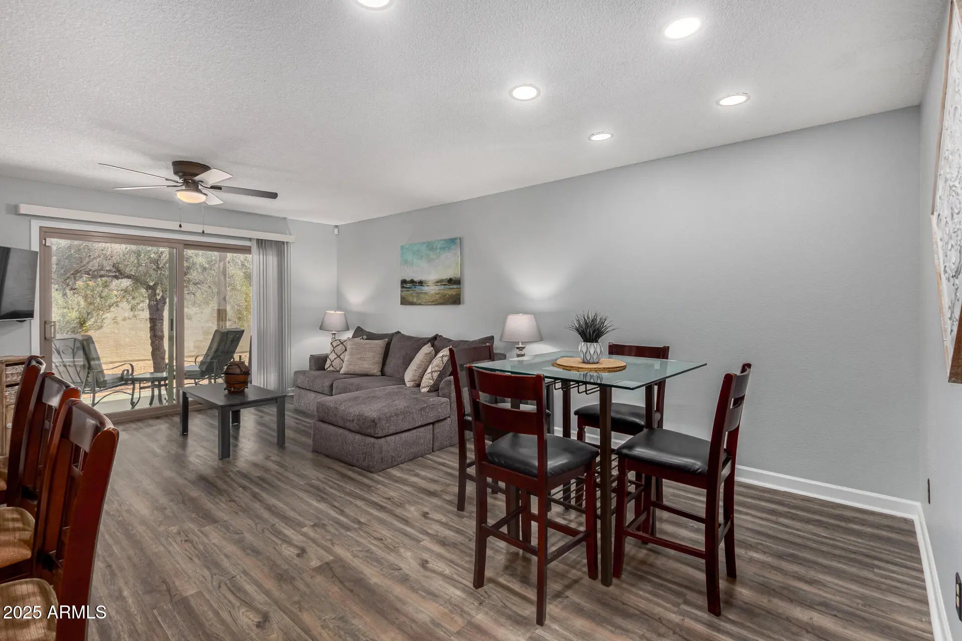 Charming Updated 2BR/2BA Townhome with Garage, in highly sought-after Fountain of the Sun - 55+ Gated Community in Mesa- FULLY FURNISHED. This home combines modern updates with classic charm and is move-in ready! Step inside to discover an open-concept living and dining area featuring neutral tones, luxury vinyl plank flooring, and plenty of natural light, including solar tubes. The updated kitchen boasts sleek quartz countertops, stainless steel appliances, white shaker cabinets, and a convenient breakfast bar. The spacious primary suite includes a private en-suite bath with a new vanity and a walk-in shower with upgraded glass doors. The guest bedroom is perfect for visiting family or a home office, with a second bath close by, which has also been beautifully updated. Enjoy your morning coffee on the private covered patio. Additional highlights include an attached extended one-car garage with epoxy flooring, ceiling storage racks, and a laundry area with washer/dryer and storage cabinets. Golf cart can be parked in front of the unit, on the property. Pets welcome! Fountain of the Sun offers resort-style amenities including a golf course, heated pool and spa, clubhouse, fitness center, and organized activities everything you need for a vibrant, active lifestyle. Don't miss this opportunity to own a stylish, low-maintenance home in one of Mesa's premier 55+ communities.