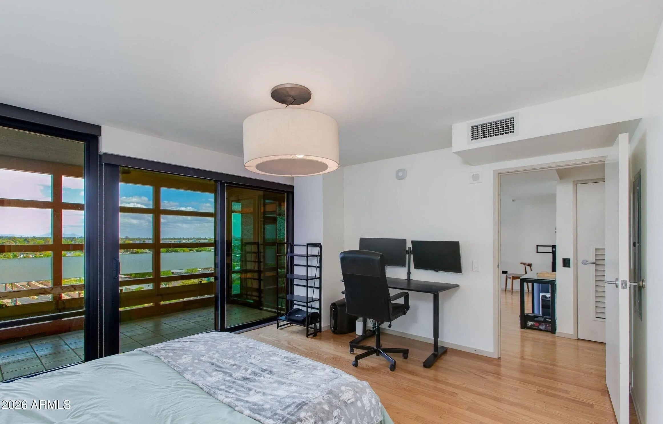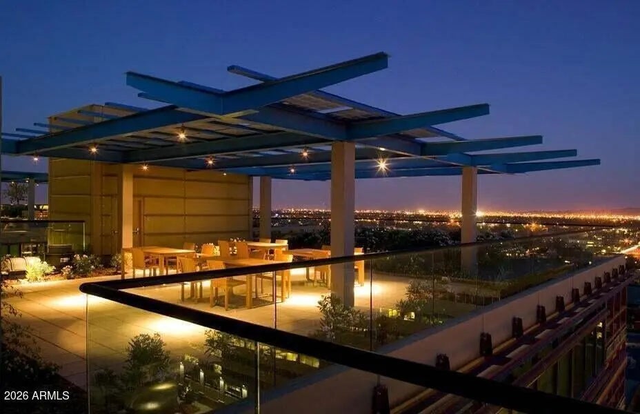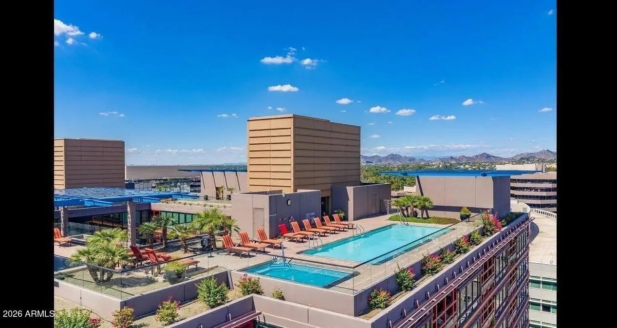 Experience elevated living at Optima Biltmore, one of Phoenix's most desirable addresses. This stylish 8th-floor 1-bedroom, 1-bath condo offers low-maintenance living, beautiful partial views of Camelback and Papago Mountains, and amazing night view. Inside, you'll find elegant wood flooring, floor-to-ceiling windows filled with natural light, an upgraded kitchen with eat-in dining, and a comfortable living area perfect for relaxing or entertaining. The spacious bedroom features a private balcony and bonus space ideal for an office or extra storage. This unit comes with a reserved parking space plus a personal storage unit. Enjoy resort-style amenities including a rooftop pool and lounge area, fitness center, steam room, concierge services, secure 24 hrs. monitored garage parking. Just steps from shopping and dining, and minutes from Sky Harbor Airport. HOA covers water, sewer, gas, and trash for added convenience and value. The property is tenant-occupied with a lease in place through 02/01/2027 at $2,150 per month, offering immediate and stable rental income, an excellent opportunity for investors.