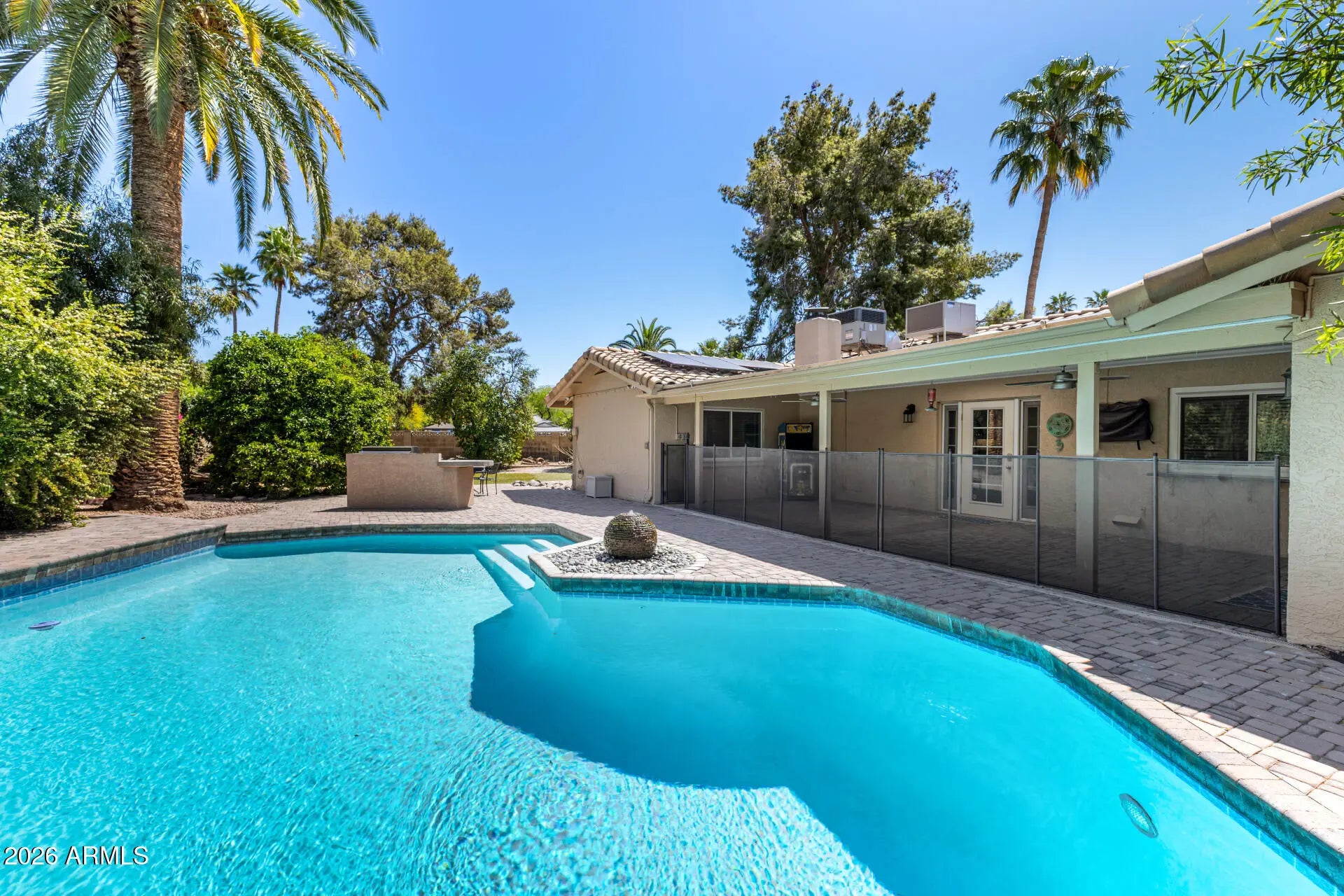 Beautifully positioned on a corner lot within a quiet cul-de-sac, this 85254 property with NO HOA offers an exceptional location just minutes from the revitalized PV, shopping, dining, and playgrounds/parks. Meticulously maintained by the original owner for 49 years, the home reflects true pride of ownership. The low-maintenance front yard provides great curb appeal, while the private backyard is designed for year-round enjoyment featuring a freshly resurfaced pool, brand-new built-in grill, and mature citrus trees. A fully fenced side area offers convenient space for additional vehicles, trailers, or recreational toys. This is a rare opportunity to own in one of the area's most desirable neighborhoods, with solar benefits and a well-cared-for home.