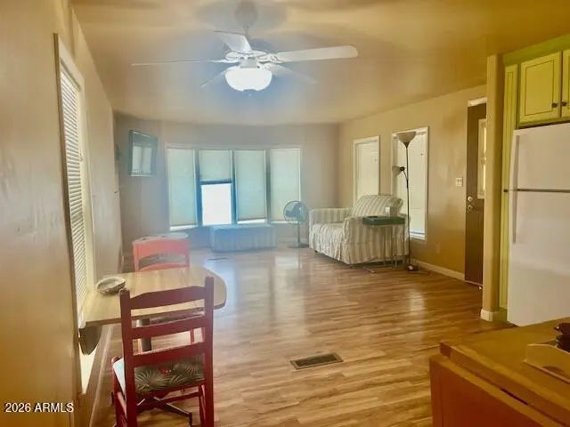 Gas, Central Air, Ceiling Fan(s), Window/Wall Unit