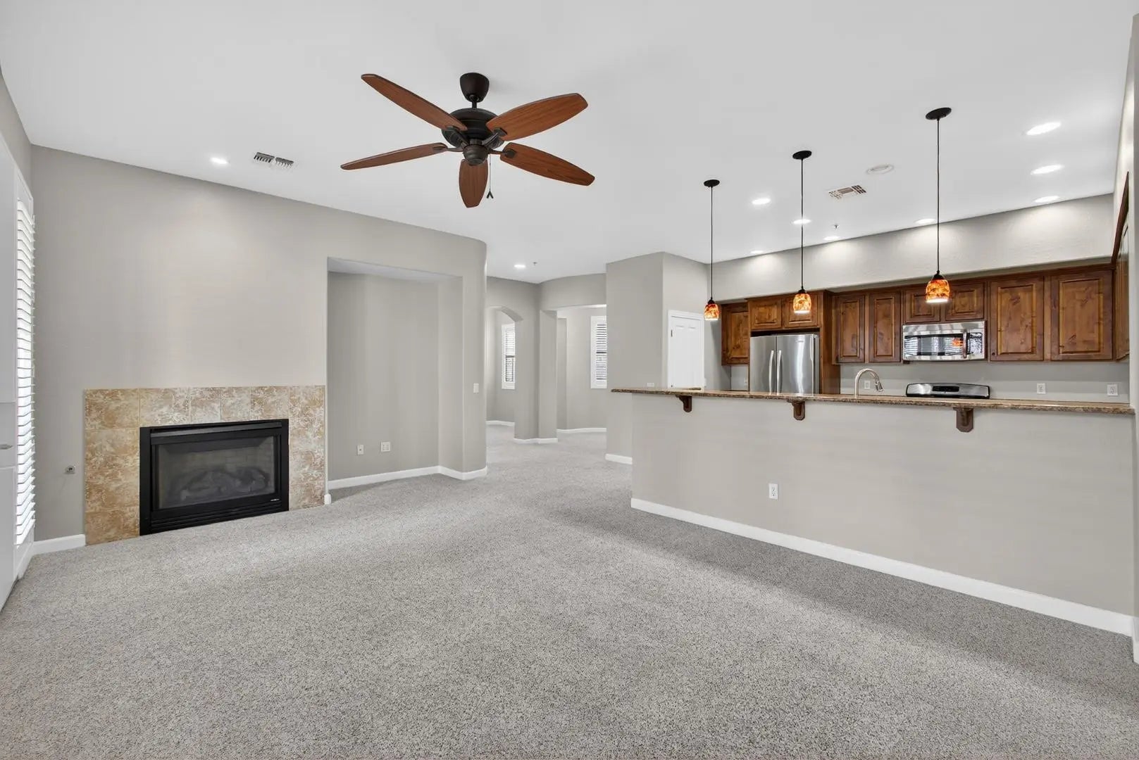 Welcome to resort-style living in the highly desirable Fulton Ranch community. This beautifully maintained second-floor unit offers an open and functional floor plan with abundant natural light, a cozy fireplace and stylish finishes throughout. The kitchen features granite counters and stainless steel appliances. The large primary suite includes a large walk-in closet, private bath, and a separate exit to the balcony. The luxurious gated community features a resort like pool/spa, fitness center and clubhouse. Ideally located near shopping, dining and entertainment.