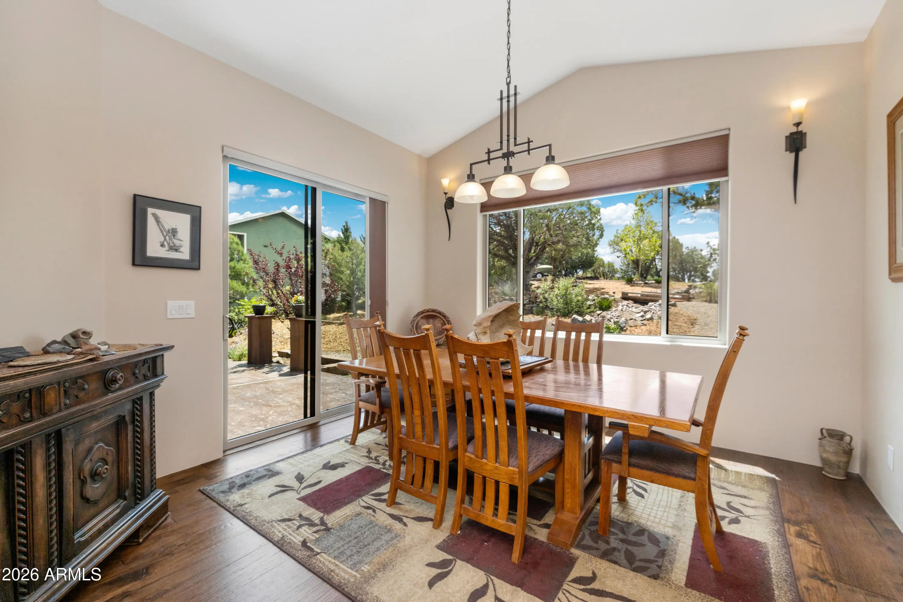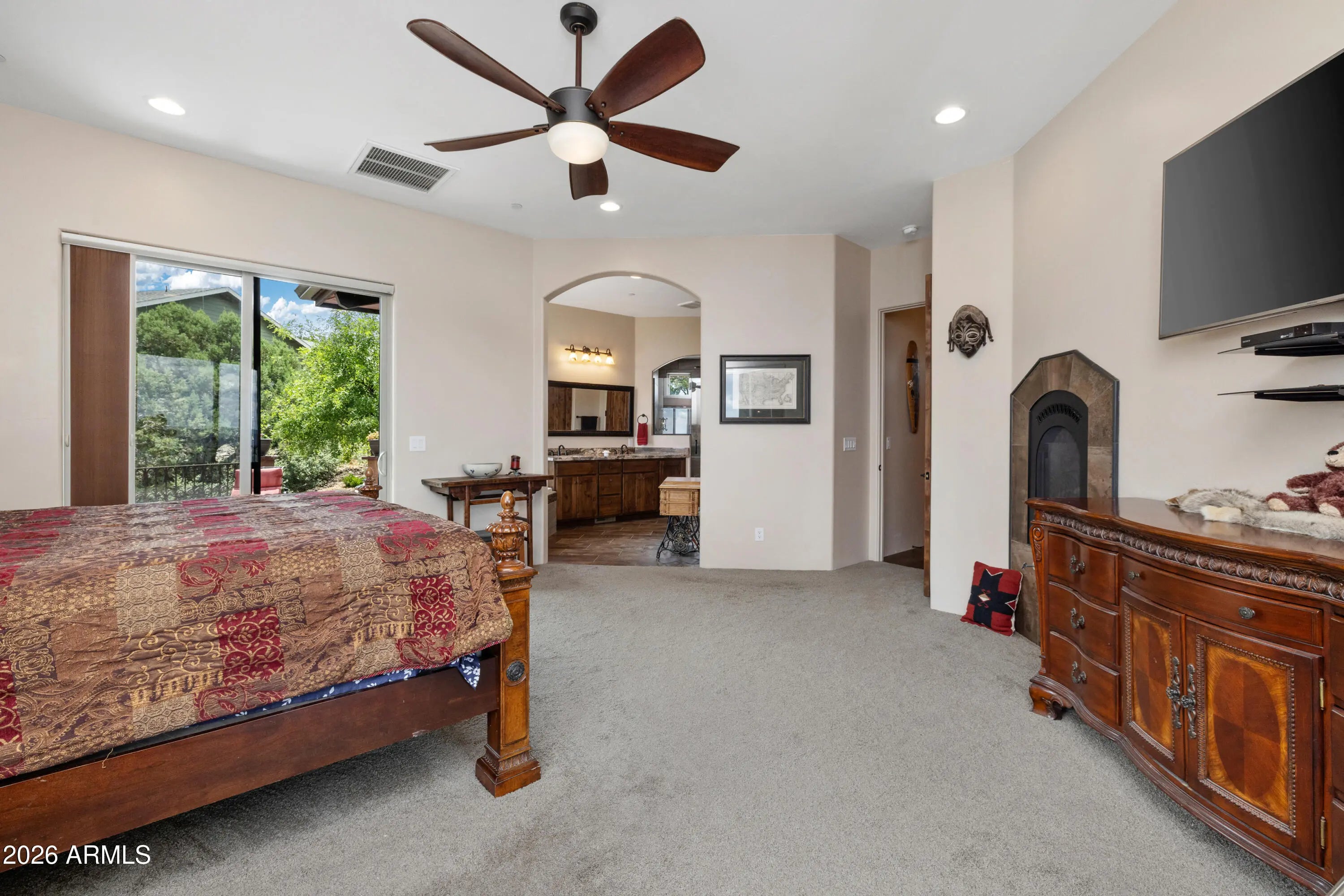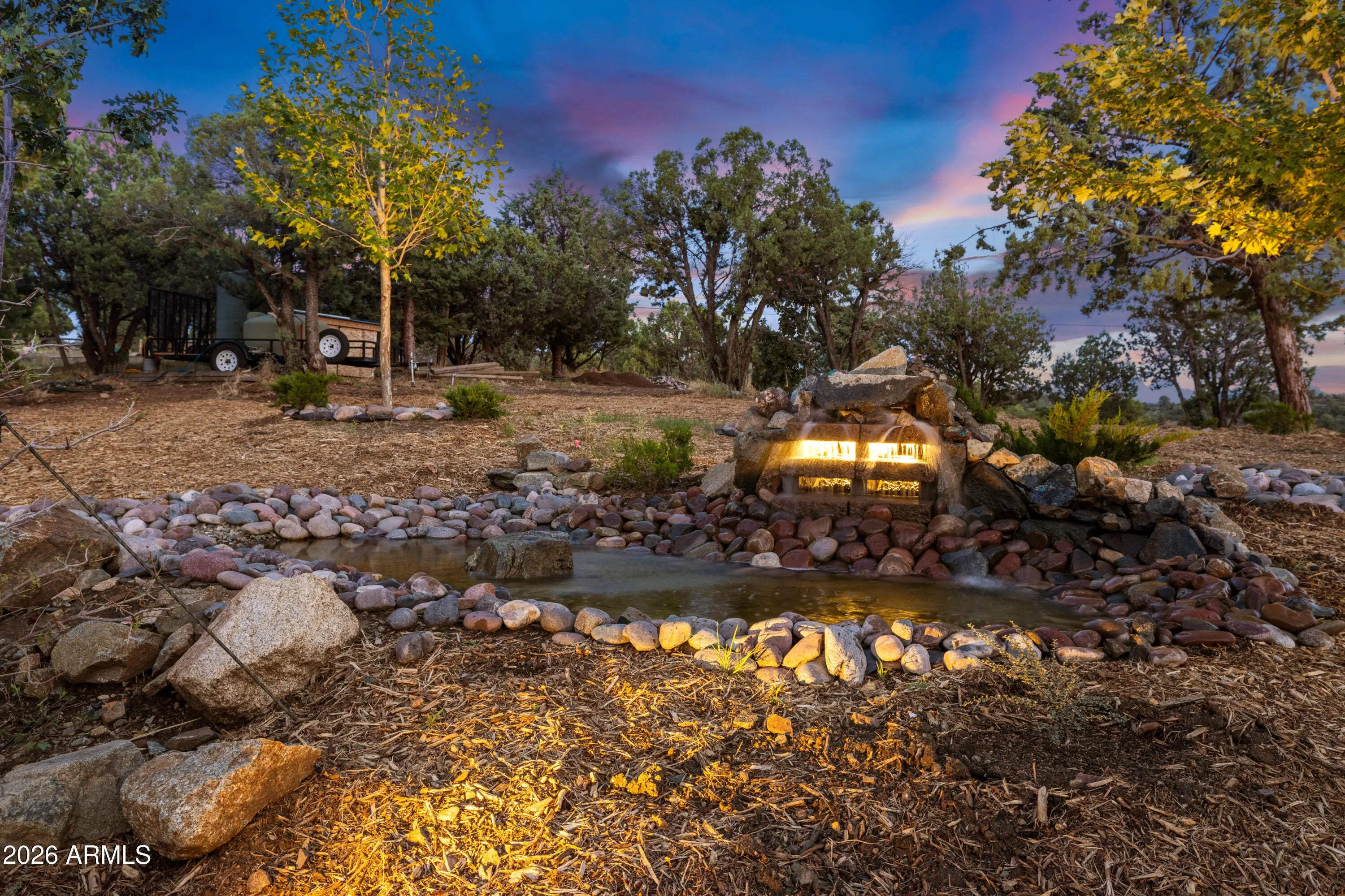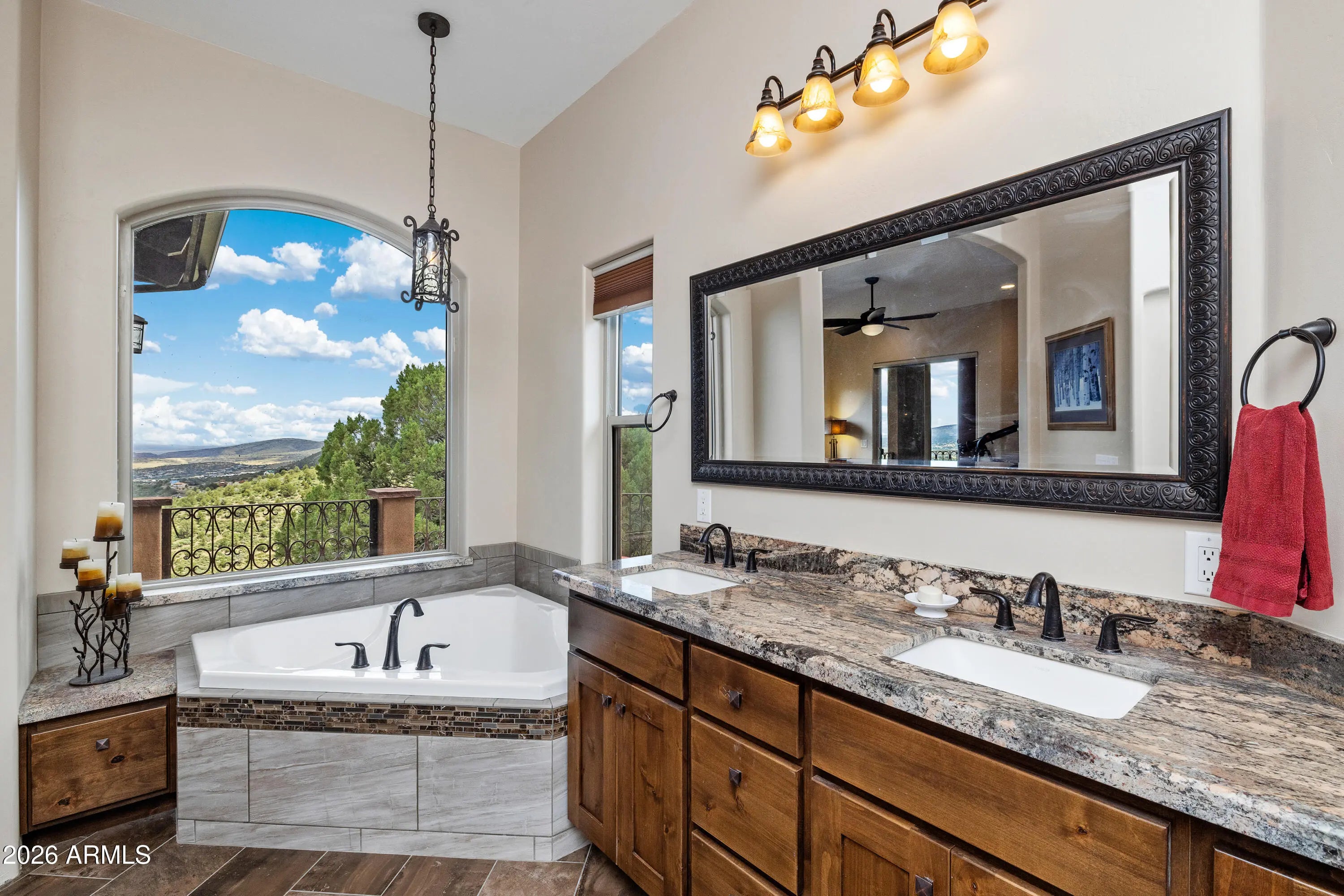 Perched on 1.37 acres high above Prescott, this custom-built residence was thoughtfully designed to capture some of the most breathtaking panoramic views in the region. From the expansive covered deck, take in unobstructed vistas stretching from Thumb Butte and Granite Mountain to the distant San Francisco Peaks, with the sparkling city lights of Prescott unfolding below. The main level features a highly functional split floor plan, offering both a luxurious primary suite and a private secondary en suite, thoughtfully separated by an open-concept living and kitchen area. The chef's kitchen is as beautiful as it is practical, showcasing rich knotty alder cabinetry, chisel-edge granite countertops, and a breakfast bar framed by a sunlit enclave of windows-- perfect for enjoying serene mornin The lower level is equally impressive, with stamped concrete flooring throughout and generous space for relaxation and entertainment. Here you'll find a spacious family room, an inviting wet bar, a dedicated game or hobby room, and a third bedroom. Step outside to the covered patio, where the remarkable views continue uninterrupted. Multiple outdoor living spaces, enhanced by carefully designed patios and tranquil water features, create a private sanctuary that feels worlds away. Completing the property is an oversized three-car garage and full RV hookups, offering both convenience and versatility. This exceptional home is a rare opportunity to experience elevated living, where refined design meets awe-inspiring natural beauty.