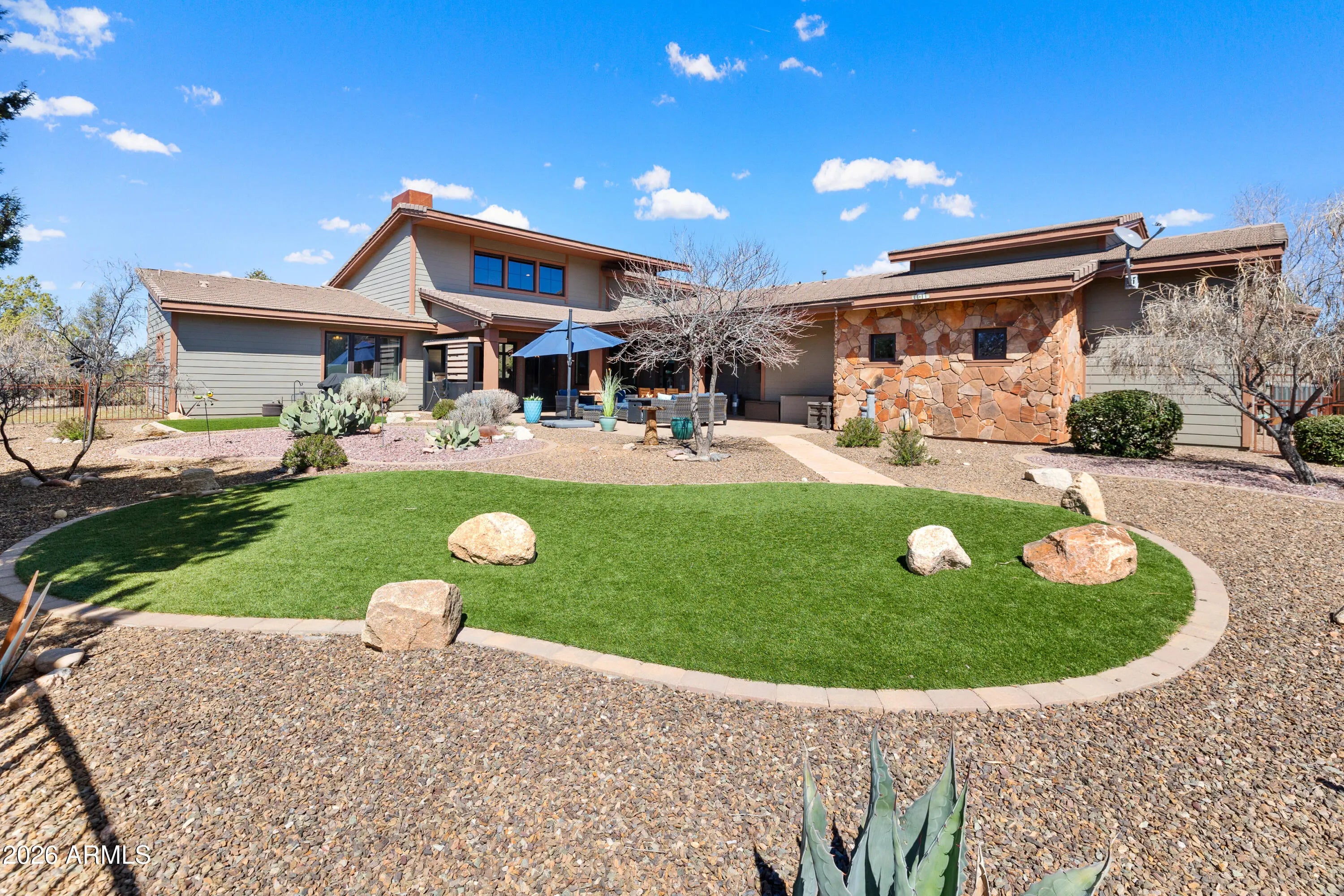 We are excited to share details regarding a stunning Fisher Custom Home currently available in the exclusive Talking Rock Ranch community. This 3,033-square-foot residence is perfectly sized and features an expansive great room with vaulted tongue-and-groove ceilings and a stone fireplace, creating an ideal space for gathering. The kitchen is designed for entertaining, complete with a large island, breakfast bar, and a wine cooler. The home offers a thoughtful layout including two master suites with ensuite bathrooms, an additional guest bedroom & bathroom, and a versatile laundry/office area. Large slider doors on both sides of the great room provide access to a spacious, fenced-in backyard. This outdoor oasis features a covered dining area, a built-in kitchen, and beautiful views! Additionally, the property includes an extra-long two-car garage with dedicated space for a golf cart or ATV, all situated on a private 0.99-acre lot. Located within the 24-hour staffed, gated community of Talking Rock Ranch, members enjoy access to premium amenities. These include an award-winning Jay Morrish-designed golf course, The Ranch House Restaurant and Bar, Coop's Coffee House, a fitness center, and facilities for tennis, pickleball, and bocce ball. The community also features an outdoor pool, dog park, community garden, and miles of hiking and biking trails.