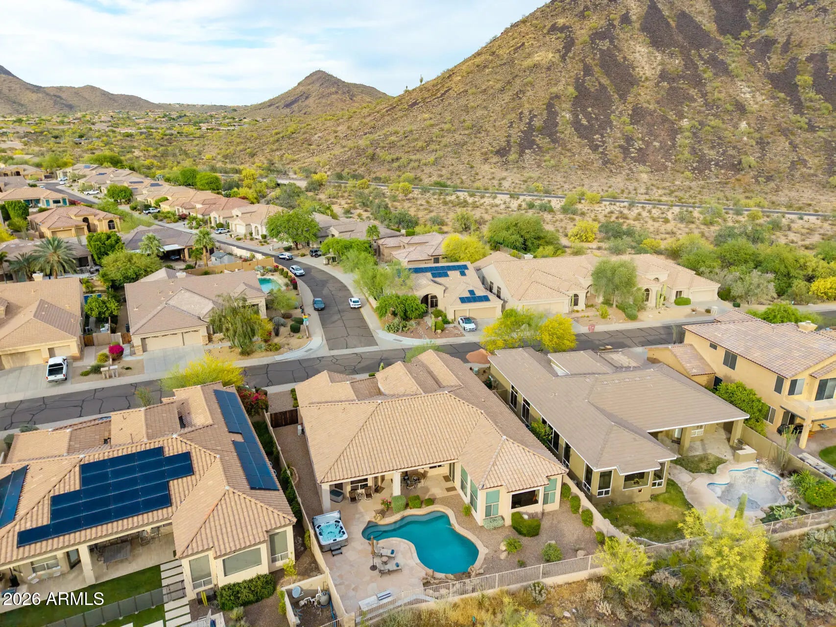AMAZING MOUNTAIN VIEWS!! Views from your main living space, Formal Dining, Living room, Family room, Kitchen & Master Suite! Homes in this peaceful neighborhood rarely come on the market. Popular split floor plan. 3 bedroom w/ a Den (can easily convert to a 4th Bedroom by adding double doors) 3 full bathrooms that are remodeled. Custom Remodeled Kitchen layout w/ HUGE Granite Kitchen Island & a Built-in Bar nook! Kitchen cabinets were recently re-stained and look brand new! SO MANY upgrades & improvements (see list in document tab) Breathtaking views & privacy (no 2-story homes on either side) NEW Backyard design! Soothing water feature, pool, hot tub & newly built-in BBQ! Plenty of room to entertain! Walking trails are a short walk down the street! A+ schools & Shopping nearby! New roof underlayment in 2021 still under warranty New A/C Unit in garage 2025. Epoxy flooring, tankless water heater, water filtration & water softener all new in 2021. New pool pump in 2025 (WIFI enabled) , 2016 Pebble tech pool resurfaced & New pool cartridge pool filter in 2020, New Bullfrog Hot tub in 2023. Smart Home Thermostat Automation & Irrigation system. Motorized shades on Patio, Hunter Douglas Shades & Automation in the Family room, Dining, living room & Master Suite, New interior paint & Baseboards in 2021. Newer fixtures New Pella windows (see list) The list goes on.... This home has been well maintained and LOVED!