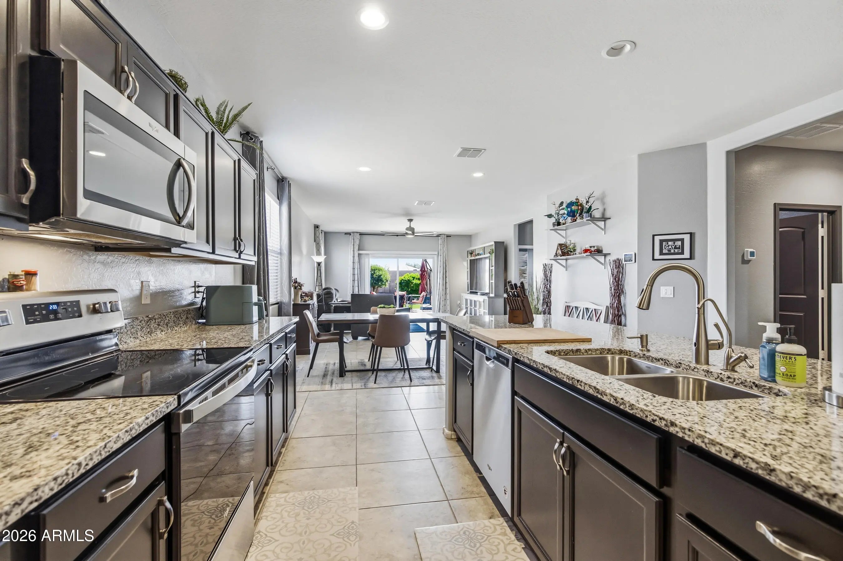 Designed for connection and effortless entertaining, this smart home in San Tan Valley, AZ offers an open layout where gatherings flow naturally and memories are made. The upgraded kitchen features granite countertops, a 24 cu ft refrigerator, and reverse osmosis at the sink, opening seamlessly into the main living space. Stay fully connected with fiber internet pre-wiring and hardline networking, plus enjoy added peace of mind with an owned security system and smart home features. Step outside to a large backyard with extended patio and drip irrigation, ideal for relaxing or hosting. Located in a community with workout facilities and pickleball courts, this move-in ready home delivers modern comfort, technology, and lifestyle. A home that lives well, entertains beautifully, and will not last long.