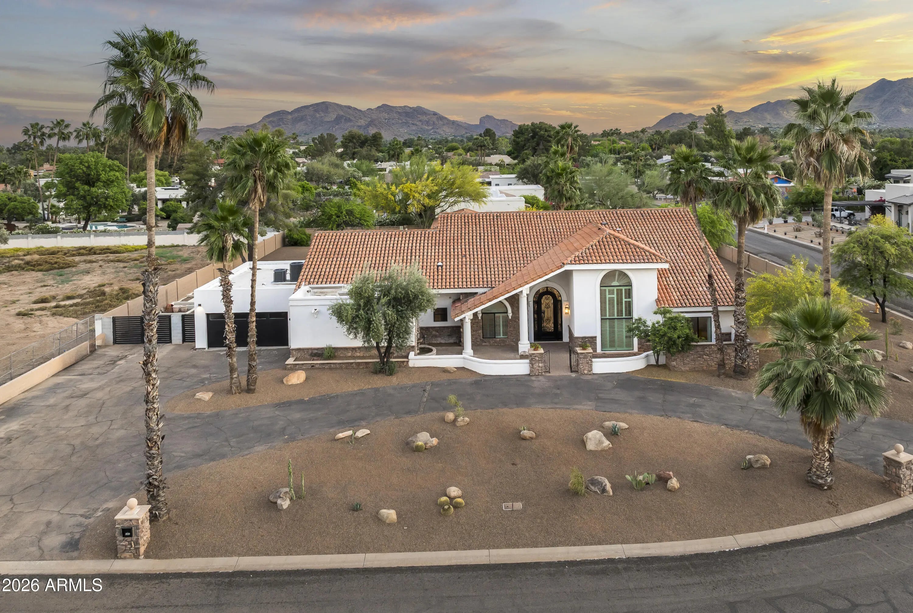 Tucked away on an expansive 36,000+ sf lot with Camelback Mountain views, this fully remodeled 4 bed, 5.5 bath home offers privacy, space, and a true indoor-outdoor lifestyle. Thoughtful redesign throughout with Italian stone floors, soaring entry ceilings, and custom kitchen cabinetry. Flexible floor plan includes a loft, office, and bonus workroom. Primary suite features a spa-style bath with outdoor shower. All bedrooms en-suite. Resort-style backyard with lush landscaping and space to entertain. Laundry room includes built-in dog wash. Rare combination of lot size, privacy, and turnkey quality in a prime Scottsdale location. No HOA.