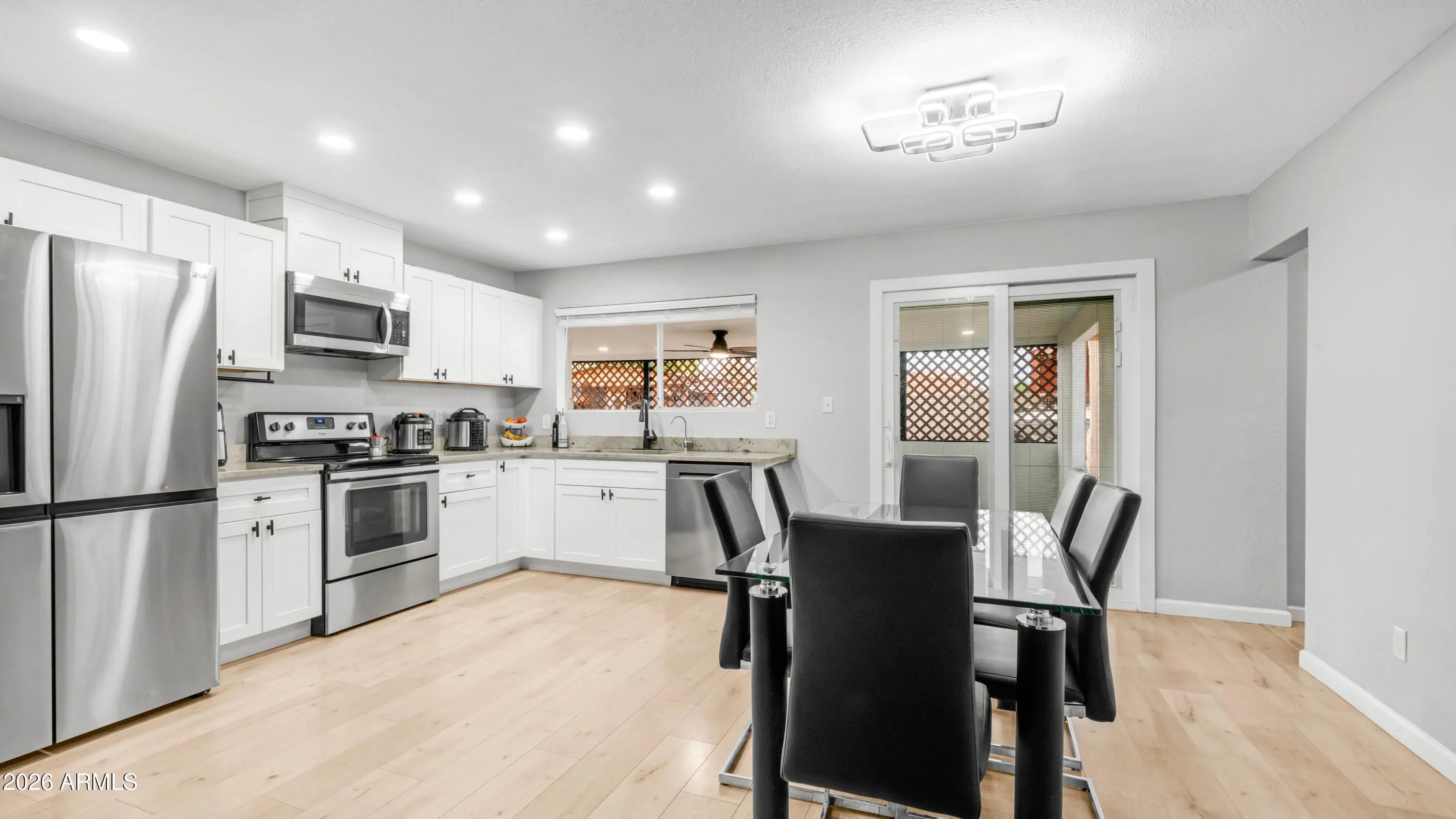 Beautifully updated brick home offering space, flexibility, and long-term value--perfect for first-time buyers. Move-in ready with all appliances included: washer, dryer, refrigerator, and stove--saving you thousands upfront. Features wood-look flooring, modern finishes, and a stylish kitchen with shaker cabinets and stainless steel appliances. The standout is the rear addition with private entrance and second kitchen, ideal for a studio, workspace, or guest suite. Spacious backyard with covered patio and RV gate. A rare opportunity to own more space, flexibility, and value at this price point.