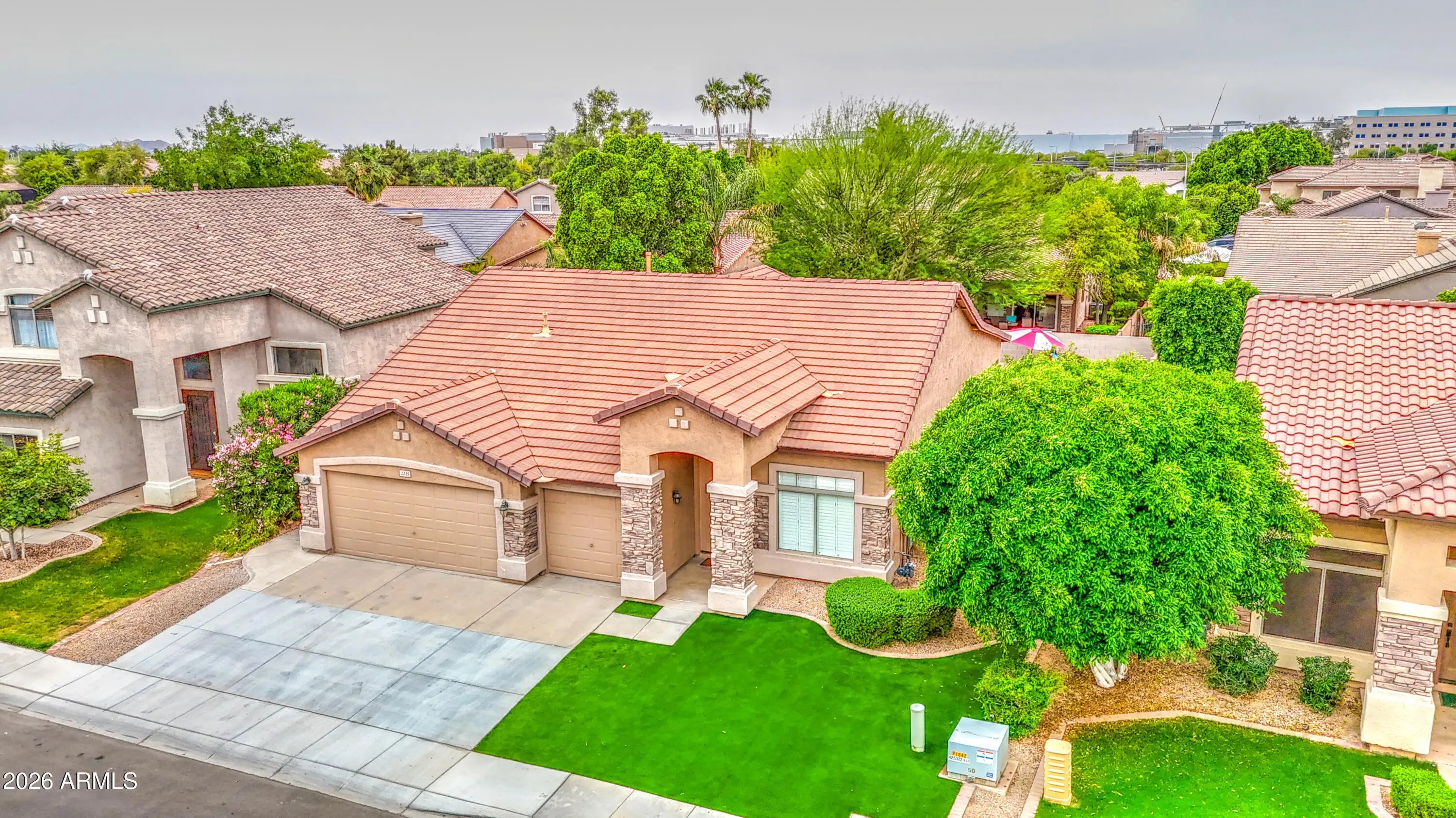 ELEGANTLY REMODELED TURNKEY POOL HOME * PRIME SHORT-TERM RENTAL OPPORTUNITY * Own a fully furnished, income-producing retreat, perfect as a second home, vacation getaway, or high-demand short-term rental. Located in Ocotillo Golf Community with impressive curb appeal, this property combines lifestyle, location, and long-term value in one exceptional package. This home features: New Custom Tile Flooring, New interior paint, New Fans & Fixtures, New Wet-Bar, Recessed Lighting, Completely Remodeled Bathrooms with New Vanities, Gorgeous Tile Showers & more! Your Chef's Dream Kitchen has New Cabinets with Crown Molding, Black Hardware, Huge Island , Quartz Countertops, Modern Backsplash, Pendant Lighting, SS Appliances. Your Backyard Oasis boasts a newly resurfaced Pool & Travertine Tile. This is the Entertainer's dream home. Relax at those gatherings with family and friends under your Covered Patio or take in the Sunsets just floating in your pool. Your entire property features Custom Pavers and Synthetic Grass for low maintenance. A Large 3 Car Garage is loaded with smart garage opener, insulated doors & built-in cabinets for the extra storage you've been looking for! Indoor Laundry Room comes with Washer & Dryer. This property also comes equipped with a Trane (18 Seer) AC unit installed in 2019. Your New Home has a great functional layout and the large den/flex room can be easily converted to a 4th bedroom. **You can't beat this location with Amazing Schools, Golf, Intel & Snedigar Park all nearby!**