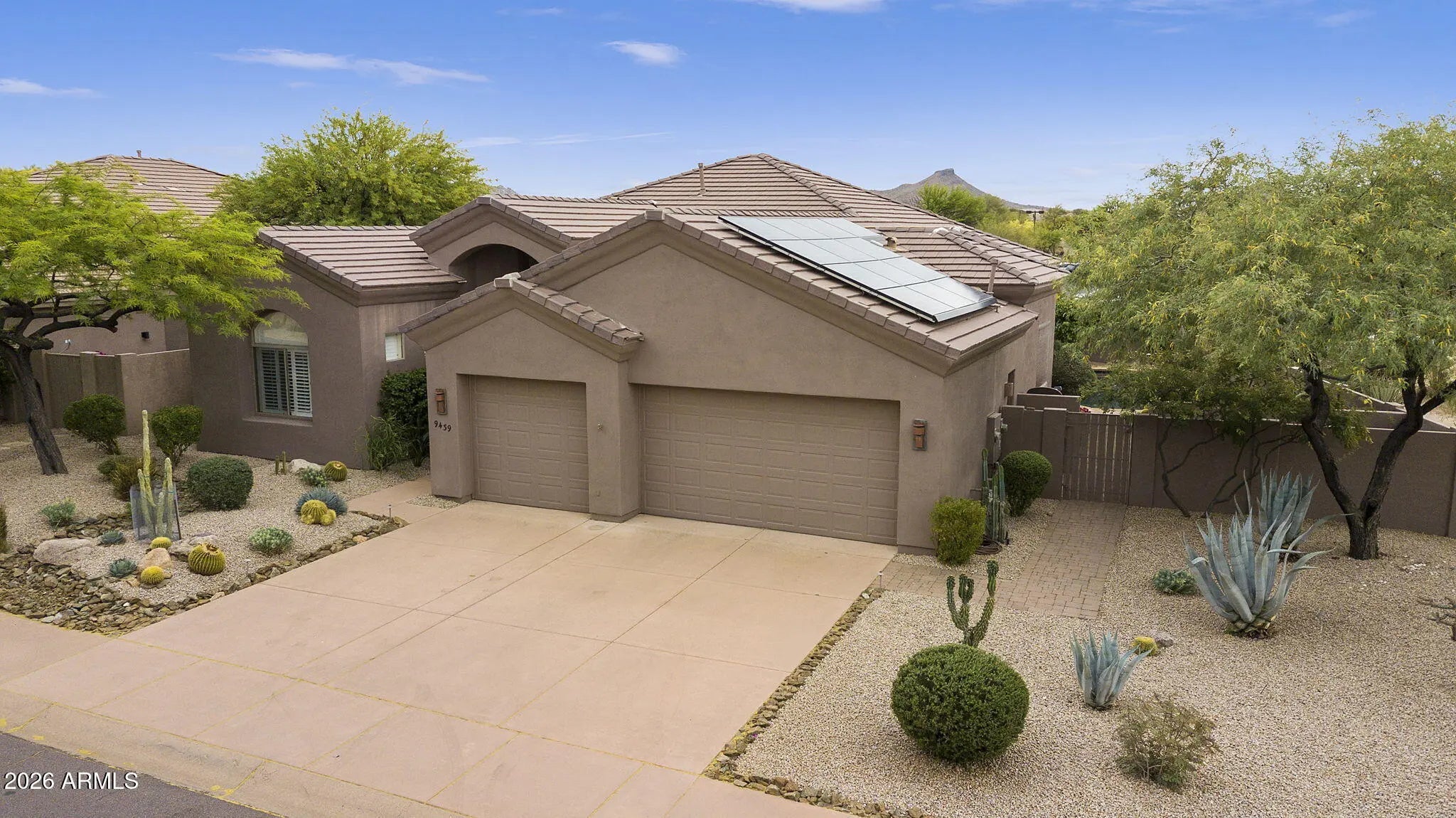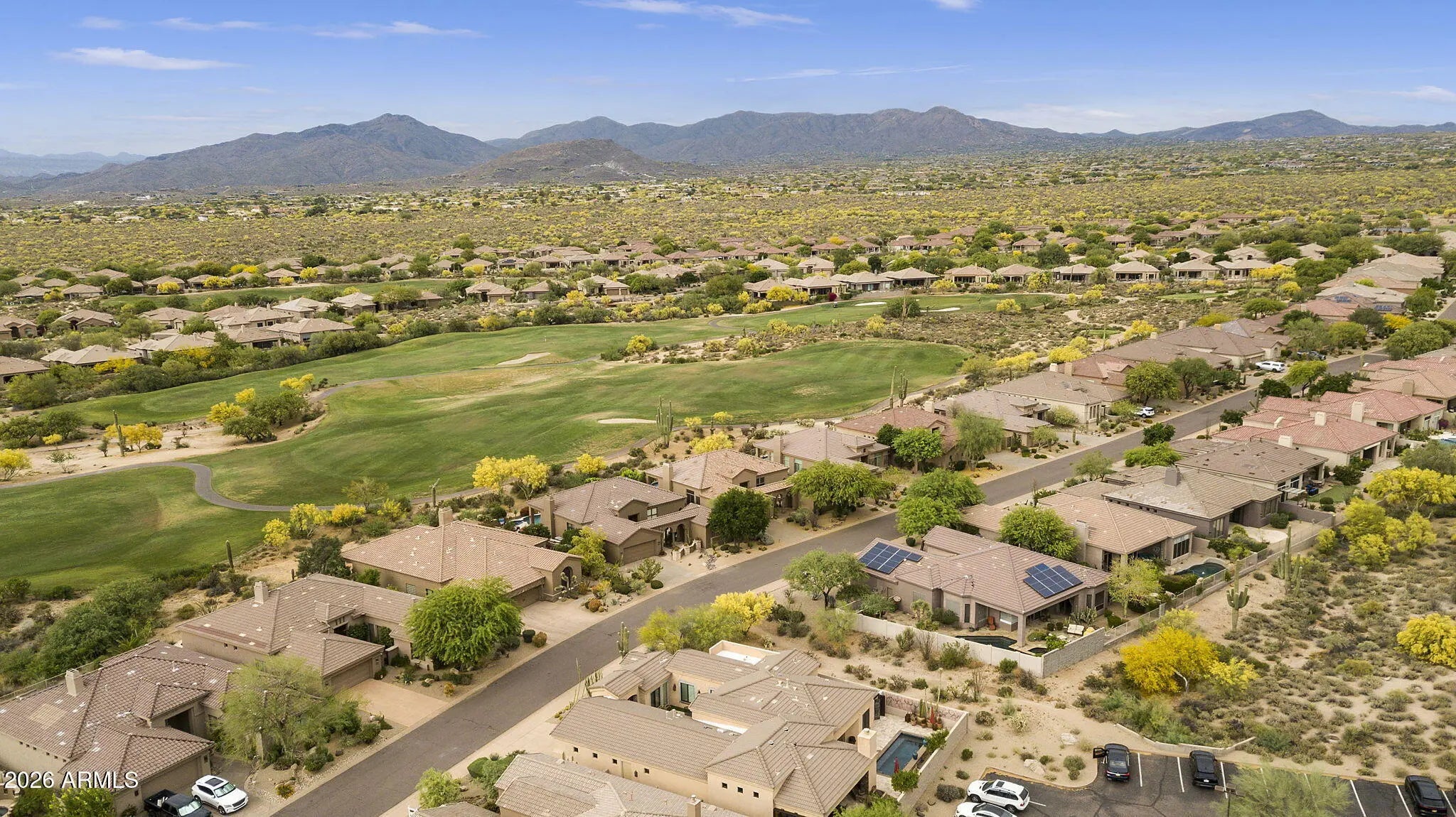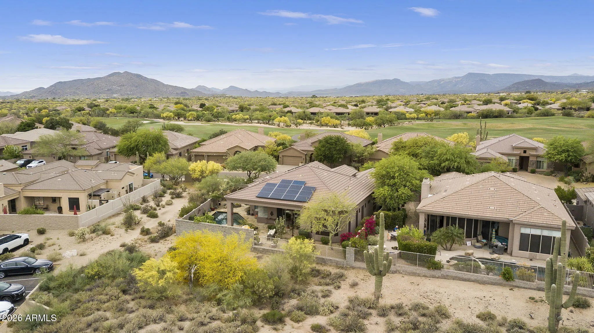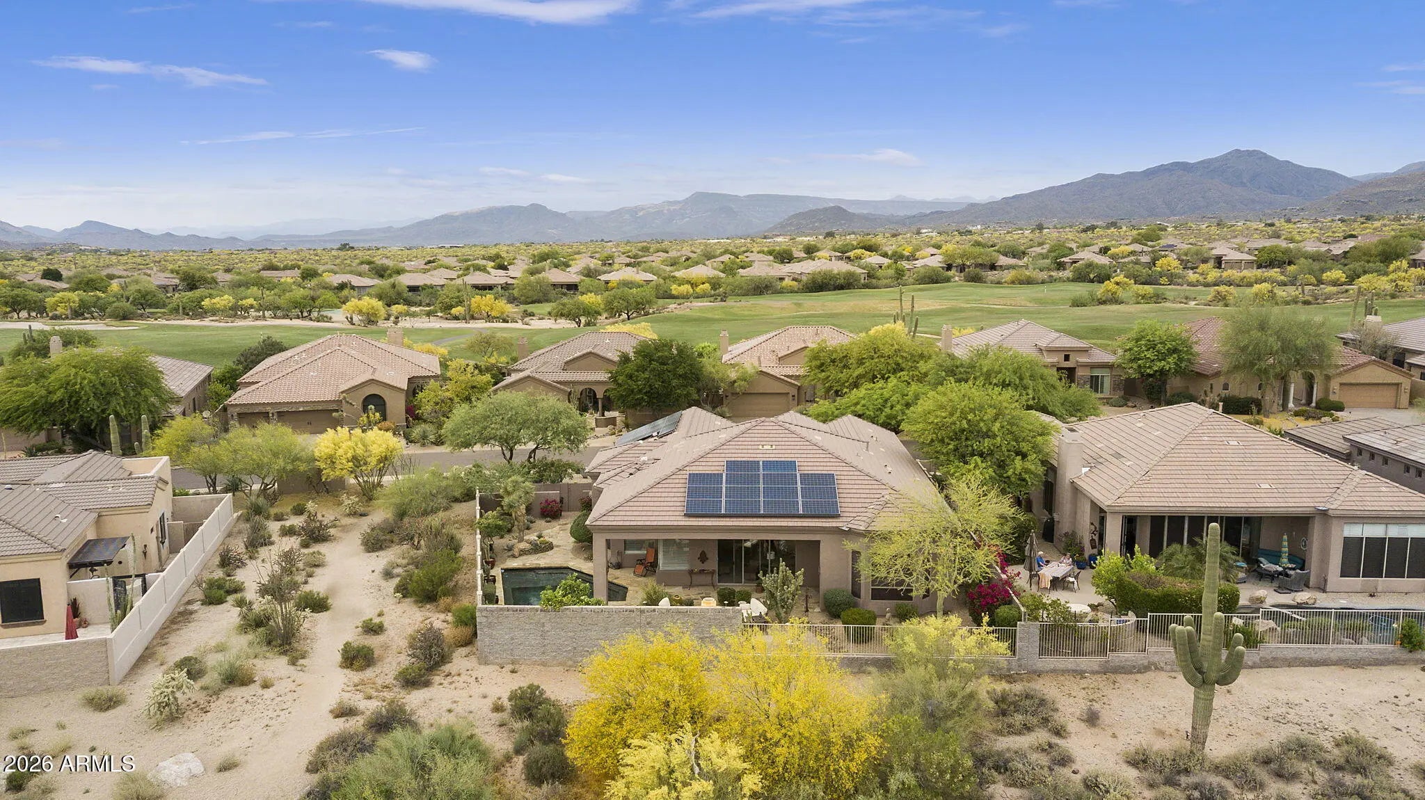 Welcome to Legend Trail living at its finest! This stunning Solar operated Avron custom-built Vision Seeker model sits on a spacious 0.29-acre lot and offers the perfect blend of comfort, upgrades, and outdoor lifestyle. This thoughtfully designed home features 3 bedrooms and 2.5 bathrooms, including a convenient Jack-and-Jill layout. The interior has been extensively updated with all-new kitchen appliances including gas cooktop, wine refrigerator CUSTOM TV wall with built-in cabinets in Livingroom. Water heater with recirculation pump, and numerous system upgrades for peace of mind--including a leased Tesla solar system, updated HVAC, and a roof largely replaced in 2023. SOLAR SYSTEM LEASE TO BE ASSUMED BY BUYER. Step outside to your private backyard oasis, complete with a nearly lap-sized heated pool and heated spa--perfect for relaxing or entertaining year-round. The yard also includes covered patio space and a separate sitting area by the outdoor fireplace and built in BBQ surrounded with lush desert landscaping and beautiful trees for shade and privacy. New irrigation system and updated pool pump. Additional highlights include a freshly updated garage with new carpet and paint, along with new garage door springs and safety sensors. Residents of Legend Trail enjoy access to exceptional community amenities, including 2 pools heated all year around and spa, fitness center, tennis court, and four pickleball courts. Plus, you'll love the easy access to the McDowell Mountain Preserve, offering endless opportunities for hiking and biking right nearby. This is Arizona living at its best--don't miss your chance to make it YOUR HOME!