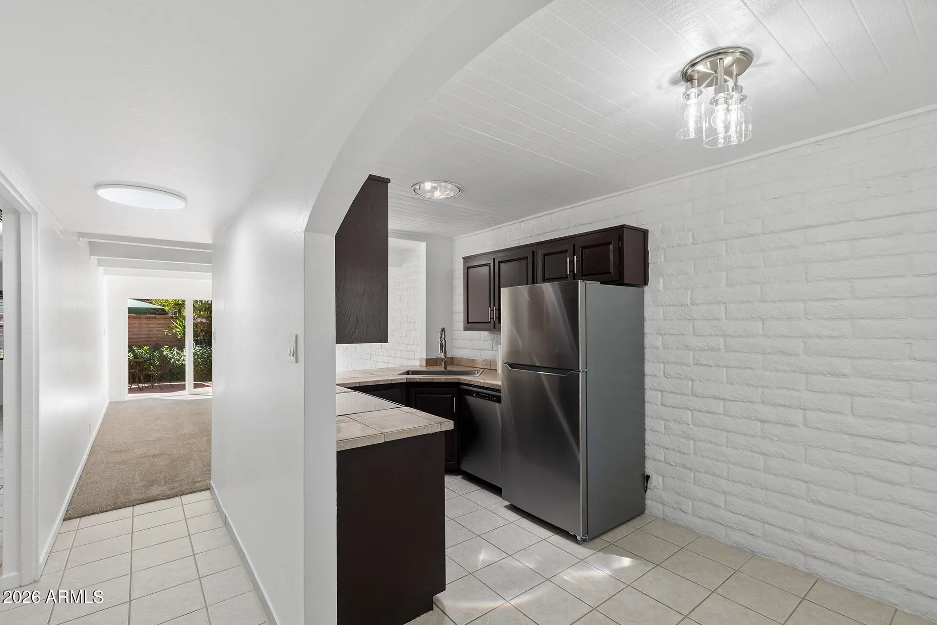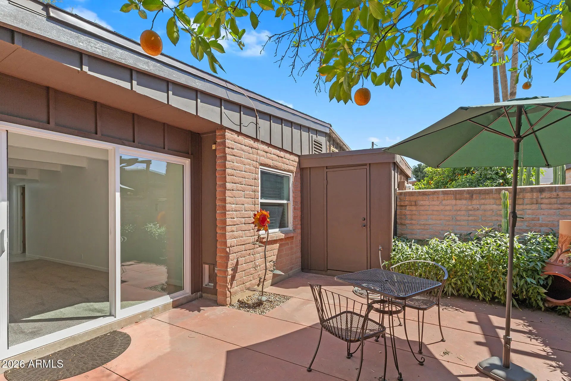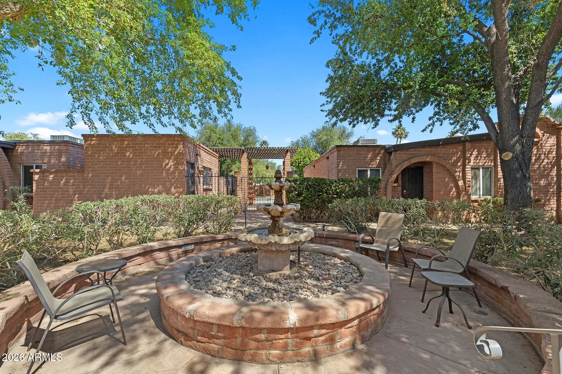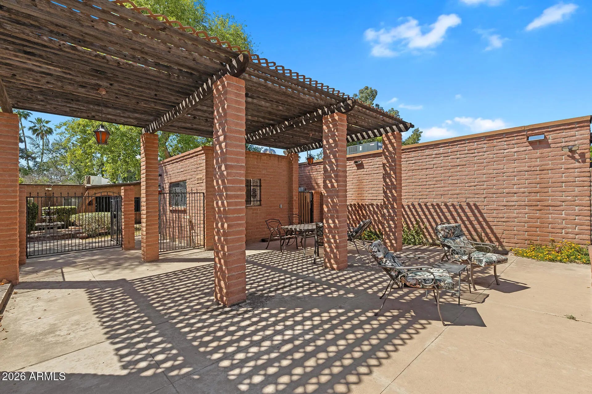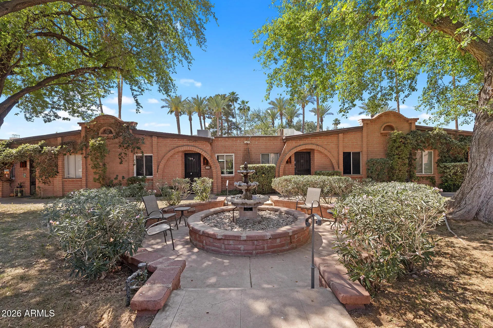 Central Phoenix/Arcadia Lite Charmer! Ground-level patio home in the Spanish Gardens community with major updates including a 2024 roof, 2025 HVAC & water heater, fresh paint throughout, tile flooring, new living room carpeting & stainless-steel appliances. The living room offers custom new large sliding glass doors for natural light and patio access. The kitchen features tile countertops, new stainless appliances, a peek-through window & dining space. Both bedrooms are generously sized with new ceiling fans & share a full bath with a shower/tub combo. Private patio with brick wall, low-maintenance landscaping & additional storage, plus a private covered parking space. Spanish Gardens community offers two pools, courtyards with fountains & lush green spaces; convenient access to SR-51, Loop 202, Biltmore, Downtown Phoenix, Sky Harbor Airport, shopping, dining & more!