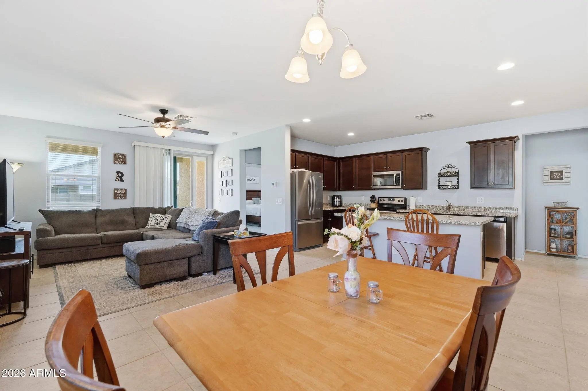 This Beautiful home offers a thoughtfully designed floor plan with open-concept living and an easy, comfortable flow between spaces. The kitchen overlooks the main living area, creating a central gathering space filled with natural light, while the split layout provides privacy between the primary suite and secondary bedrooms. The backyard offers a great starting point for outdoor living, whether you envision a low-maintenance retreat or a more customized space over time. This home presents a solid foundation with the flexibility to personalize at your own pace. Located in a rapidly expanding part of the Northwest Valley, you'll enjoy convenient access to shopping, dining, and everyday amenities, along with continued growth and development nearby.