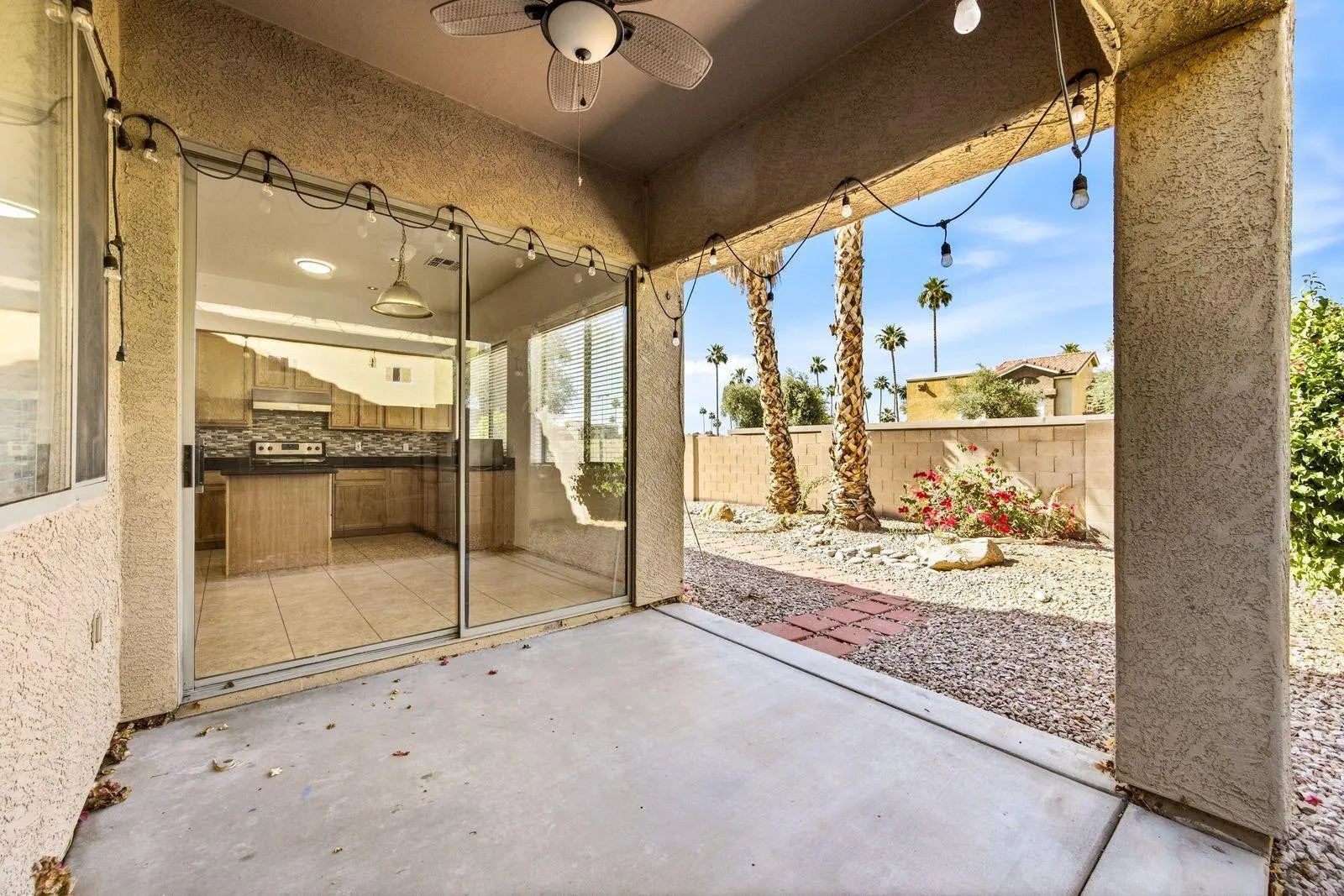 Beautiful single story home in a fantastic gated community Kitchen with quartz countertop, stainless steel appliances, pantry & workspace island opens to family room. 3 bedrooms, 2 full baths, split floor plan, blinds, 9' ceilings, 2 car garage. lovely park. Covered patio and ceilings fans with remotes, private low maintenance yard. Great condition, all tile and carpet in bedrooms and new outdoor paint. Quiet, well maintained community located in the heart of Chandler. Community pool as well!