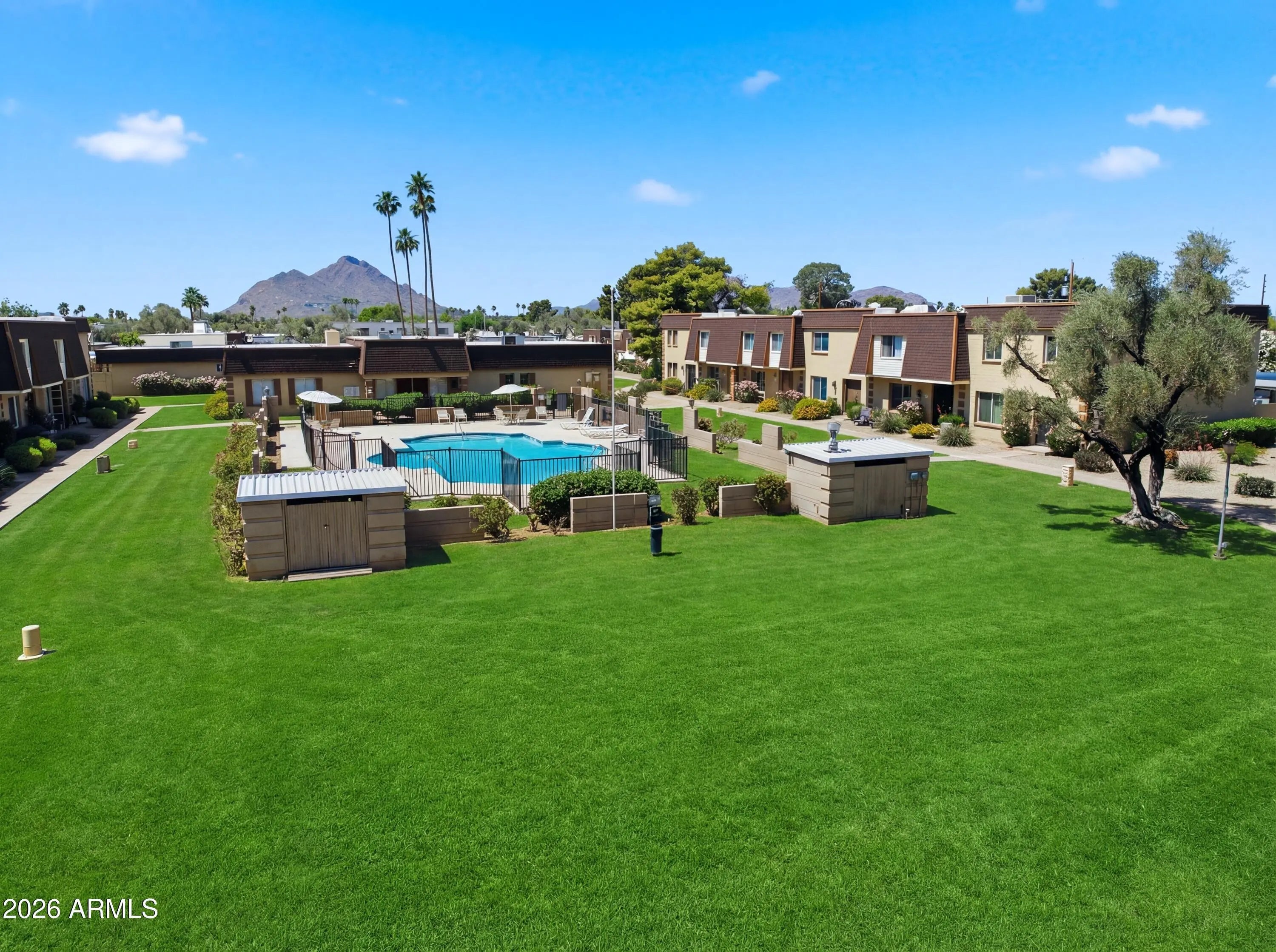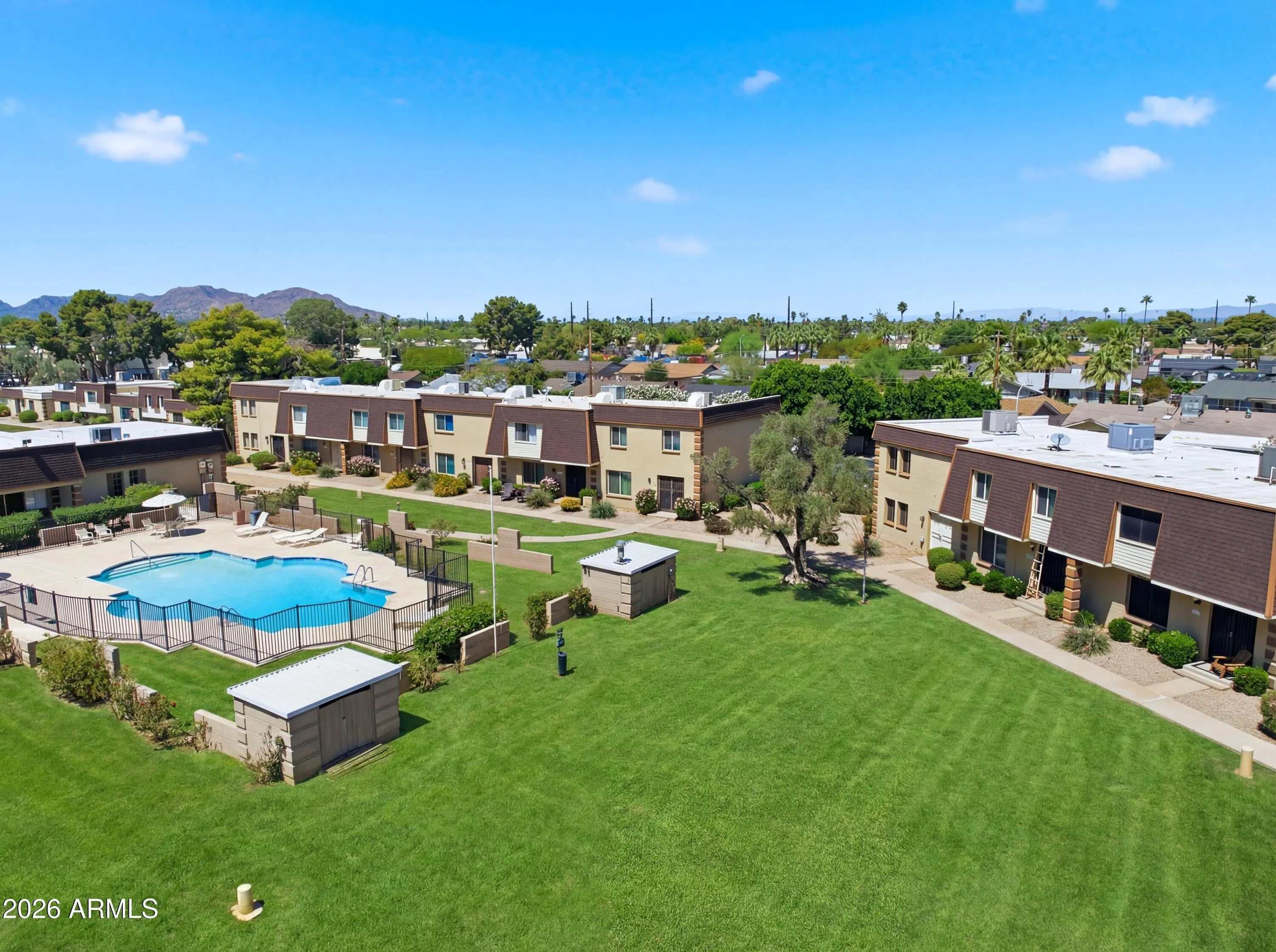 Gorgeous townhome shows like a model! Move-in ready & beautifully updated, in the heart of Scottsdale.Spacious & comfy with great-room floor-plan & lots of upgrades. Large en-suite bedrooms, like having 2 primary suites.Enjoy peace of mind with windows & plumbing updated in 2018 and AC unit in 2023. Light & bright chef's kitchen, features farmhouse sink, quality appliances, lots of storage and beautiful quartz countertops, yand ou'll love the automated shade in the great room! Pavered patio is quiet and private, perfect for relaxing or entertaining. Well-maintained community with clubhouse and pool is just minutes from Old Town Scottsdale, shopping, dining, golf and easy freeway access. You'll absolutely want this home to be your home sweet home!!