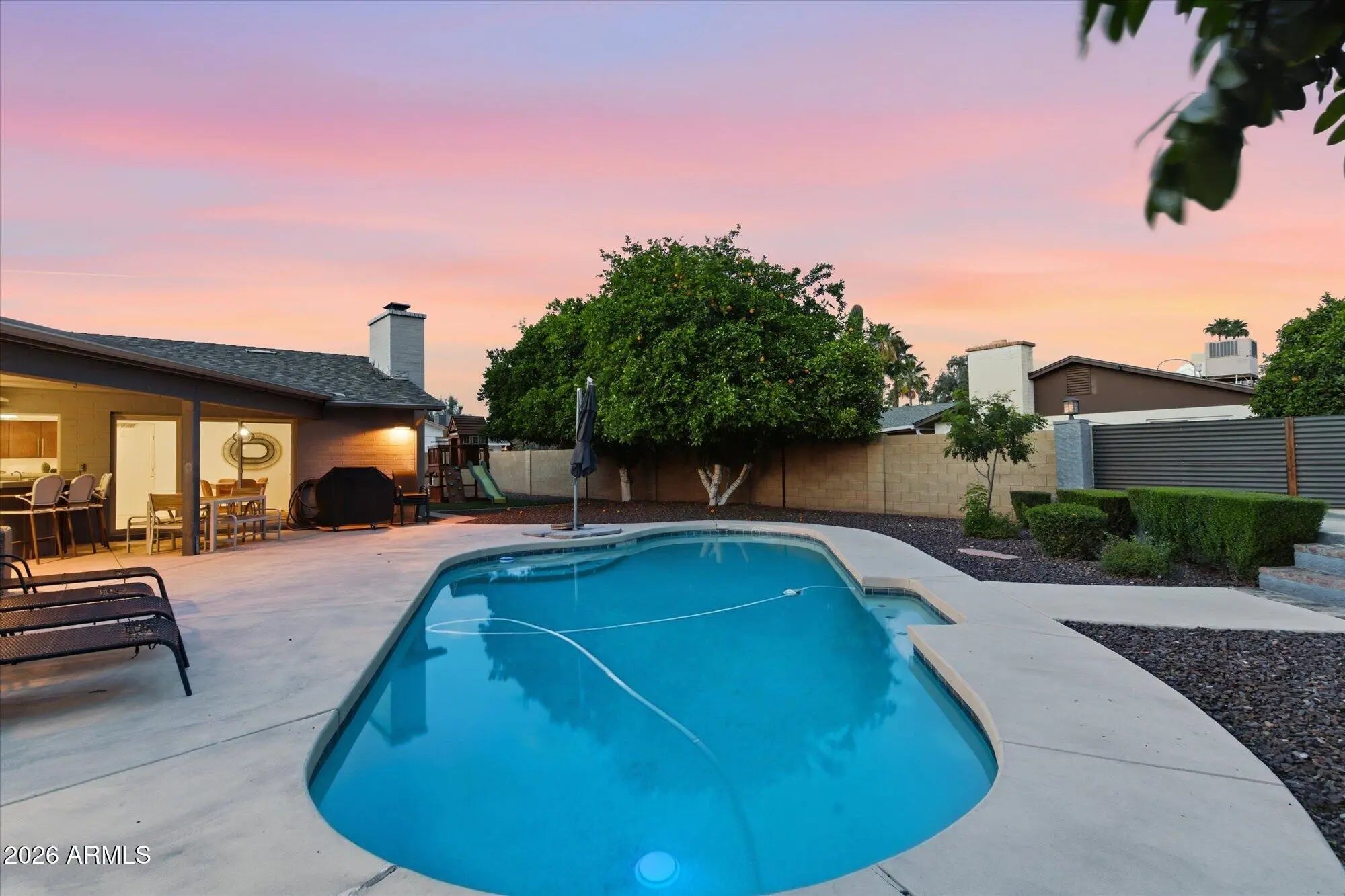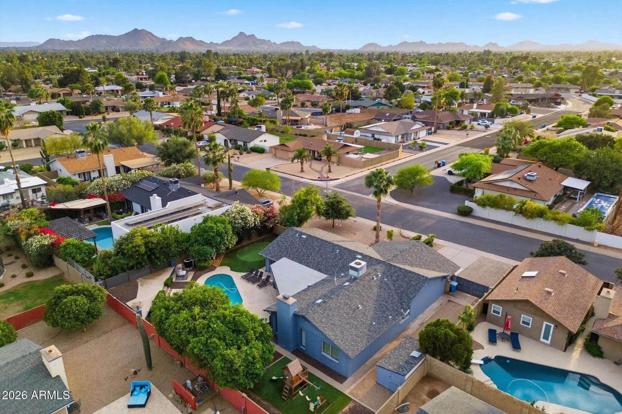A stunning and luxurious beauty located in the heart of Scottsdale's 'magic zip code!' This single level on a huge lot checks all the boxes-FOUR full Bedrooms, 2.5 baths, split floorplan, large central great room, and a chef's dream kitchen which has been updated with modern cabinetry, large island, quartz counters and stainless-steel appliances. Newer roof, dual pane windows, shutters and more! The primary features a spa bath with huge walk-in shower and dual vanities. Go on vacation every day in your backyard oasis boasting a beautiful pool surrounded by mature citrus trees, play space, putting green, ample covered patio and plenty of room for entertaining. Prime Scottsdale location just minutes from PV, highly rated schools, Kierland Commons, and the Scottsdale Quarter.
