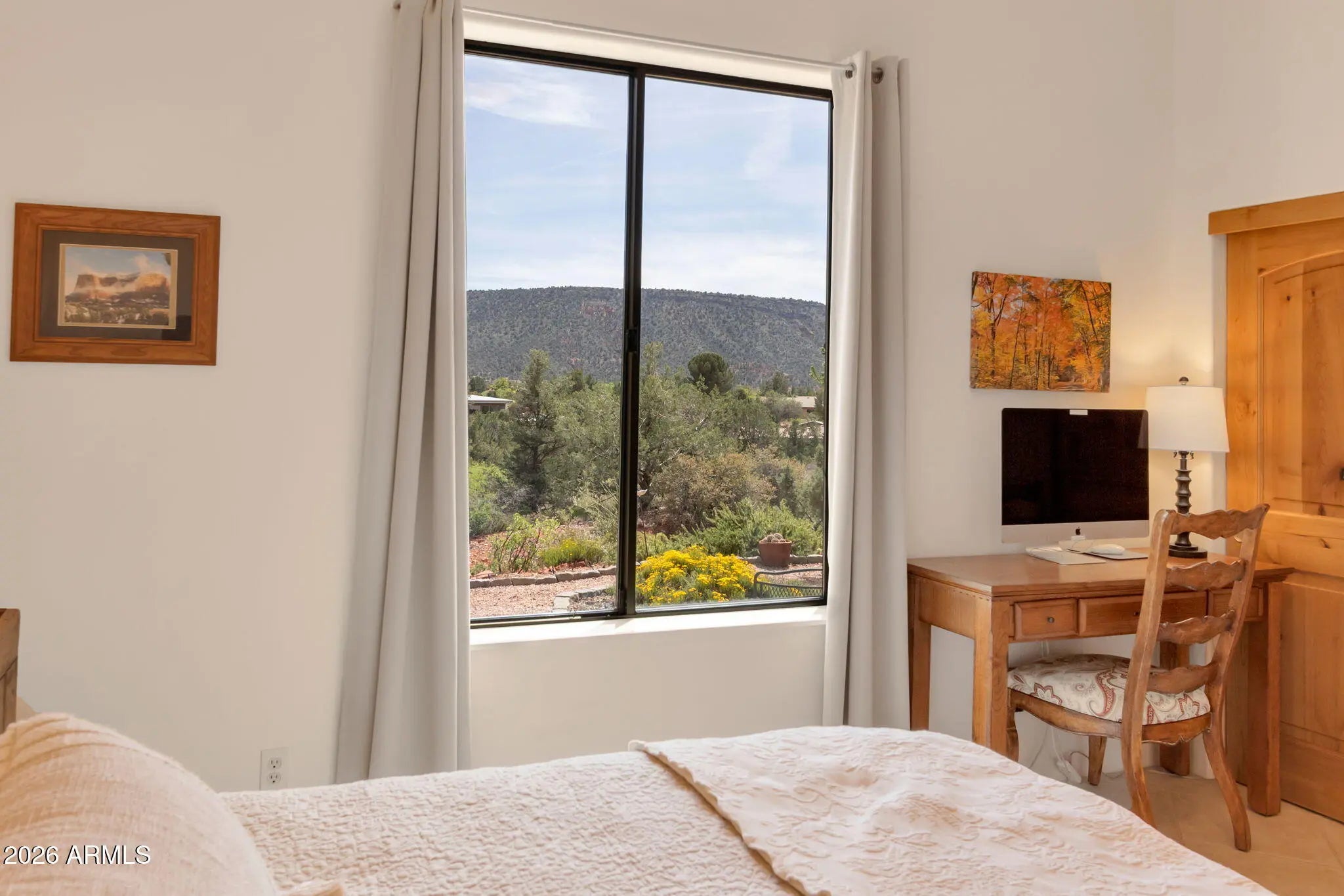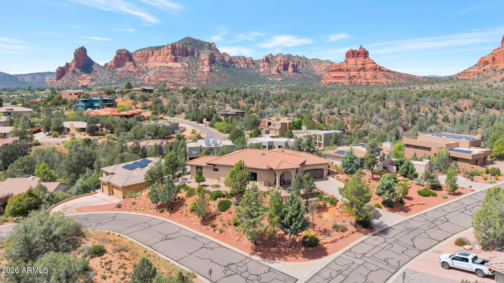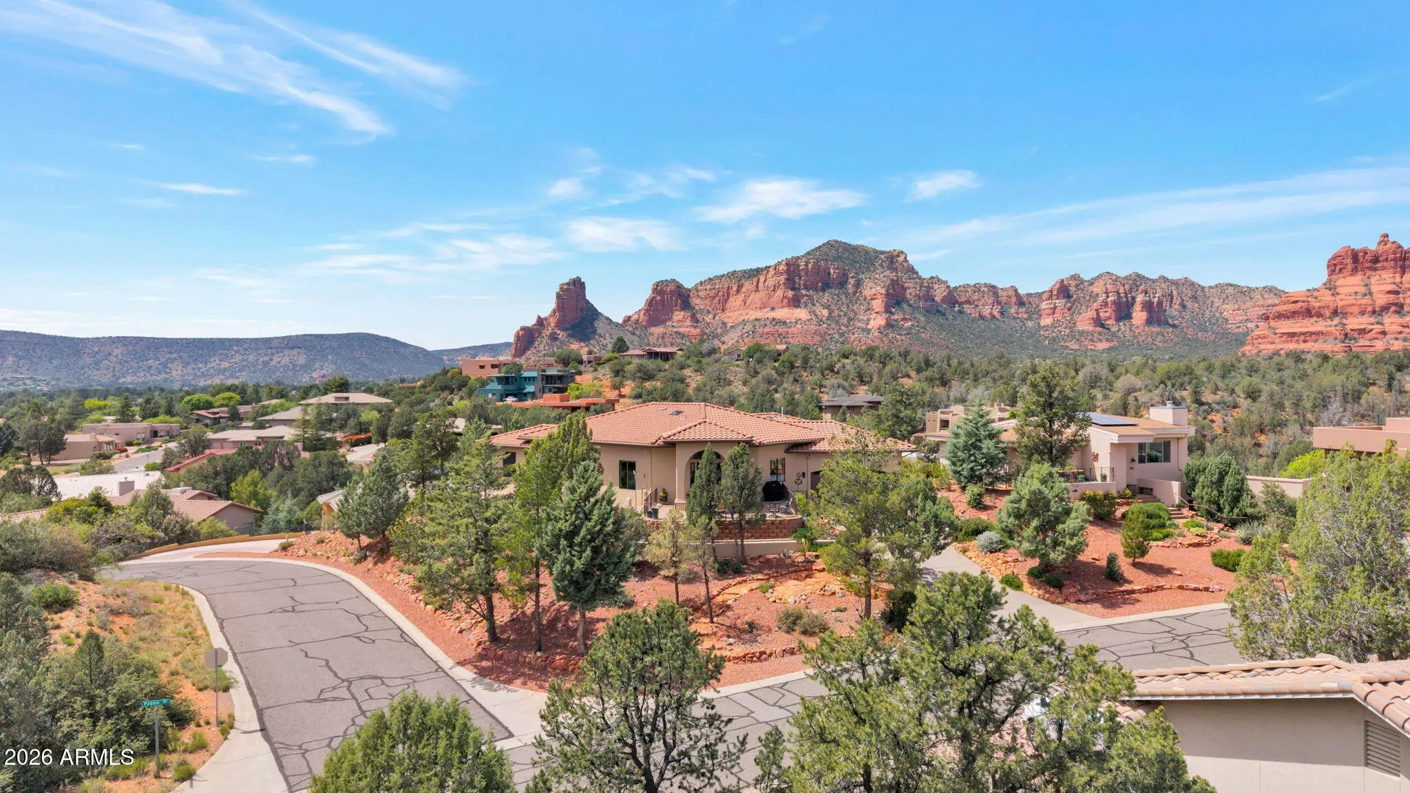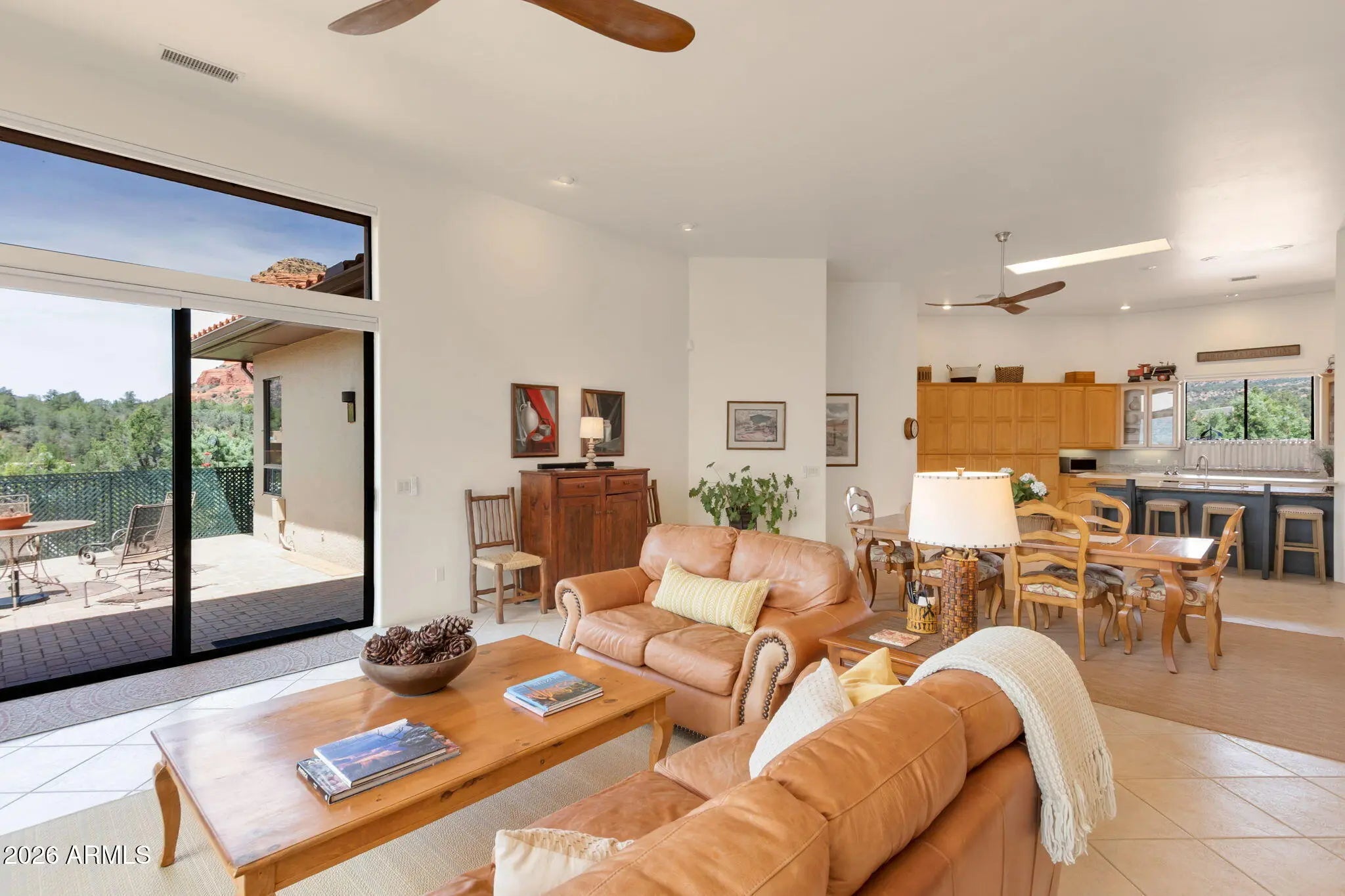 Perched on a premier corner hilltop, this exceptional 3 bedroom + den residence captures breathtaking 360 degree Red Rock views, and remarkable privacy. This home is thoughtfully positioned to frame Sedona's natural beauty from nearly every window. The vaulted ceilings enhance the open Great Room, with dramatic floor-to-ceiling windows, and a gas fireplace with granite hearth. The kitchen showcases full slab granite countertops, abundant prep space, a generous breakfast bar, rich maple cabinetry, and top-of-the-line smart appliances. Custom built with attention to detail, this home offers a rare combination of design, comfort, and awe-inspiring views in every direction. Current owners have made many improvements for the new owner to enjoy... including Exterior paint, Lifetime Platinum roof underlayment, 2 High Efficiency Trane HVAC systems, and Knotty Alder interior doors throughout.