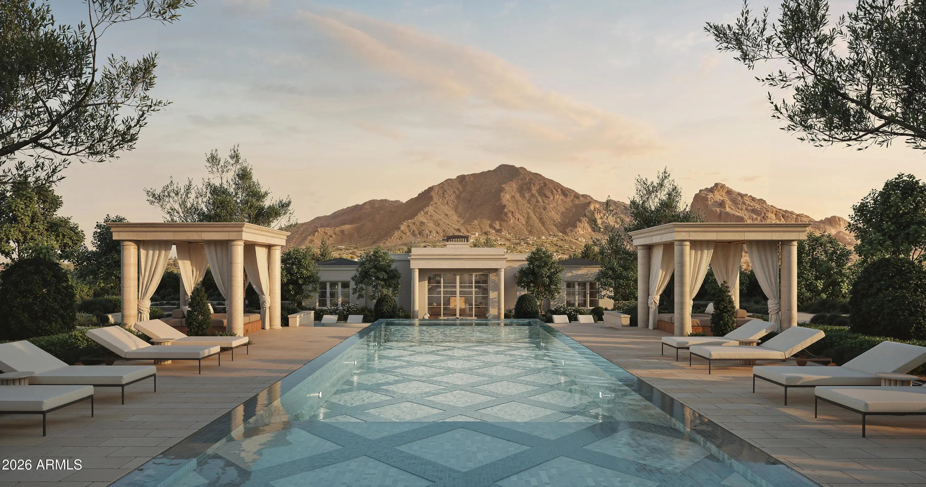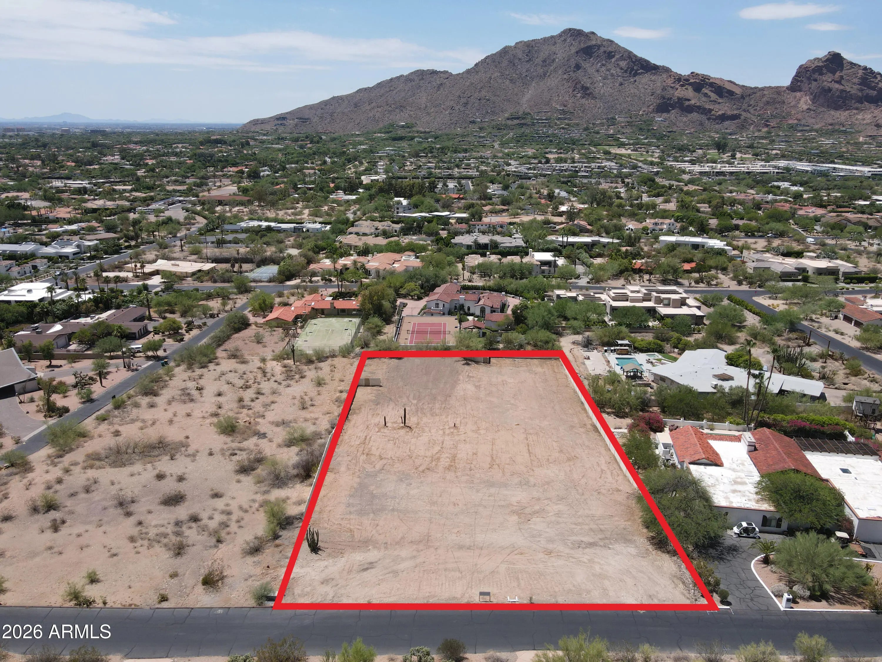 Possibly the finest spec home ever built in Arizona, this one-of-a-kind estate in Paradise Valley is a true generational offering. Renowned architect Matt Thomas, interior designer Lauren Wallace, and Berghoff Design have collaborated to create a masterpiece set on arguably the best lot in Paradise Valley. Perched atop Indian Bend on a rare non-hillside, flat parcel, the property captures unobstructed, head-to-tail views of Camelback Mountain, with surrounding homes positioned so far below that rooftops nearly disappear from sight, delivering unmatched privacy and visual dominance. No expense has been spared in this 9 bedroom estate featuring 10 full bathrooms, 3 half baths, and a 14 car garage. Designed for both grand scale entertaining and everyday luxury living, the home includes every imaginable amenity: a dedicated wellness suite with sauna and cold plunge, a full gym, dual chef's kitchens, an expansive game room and bar, golf simulator, private theater, and ensuite staff quarters. A detached two-bedroom guest house offers additional privacy for visitors. Outdoors, the estate is equally extraordinary, featuring a pickleball court, two full-size pools, and expansive manicured lawns ideal for hosting at any scale. All this on hands down the finest view lot in Paradise Valley. Breaking ground Summer 2026.