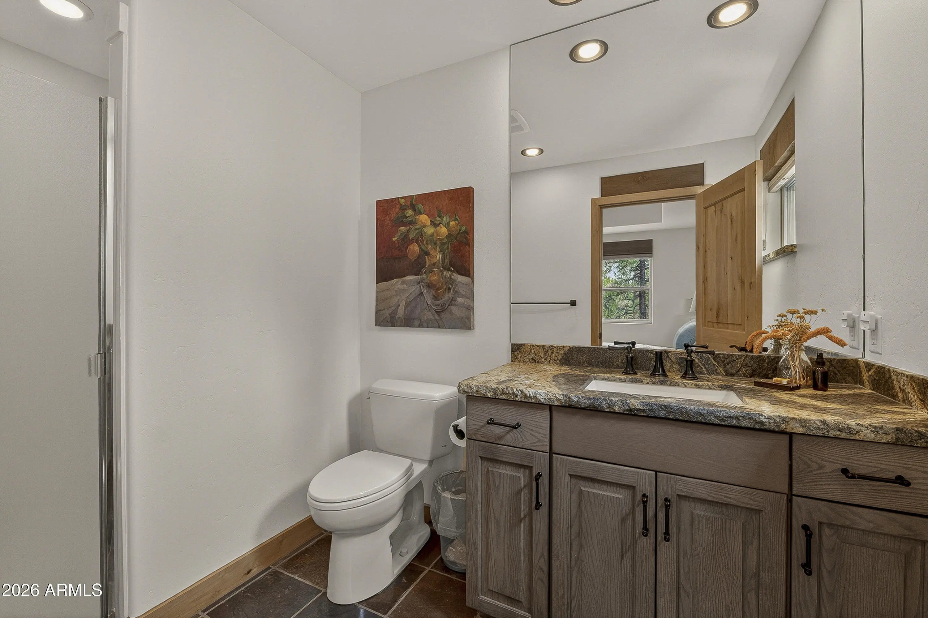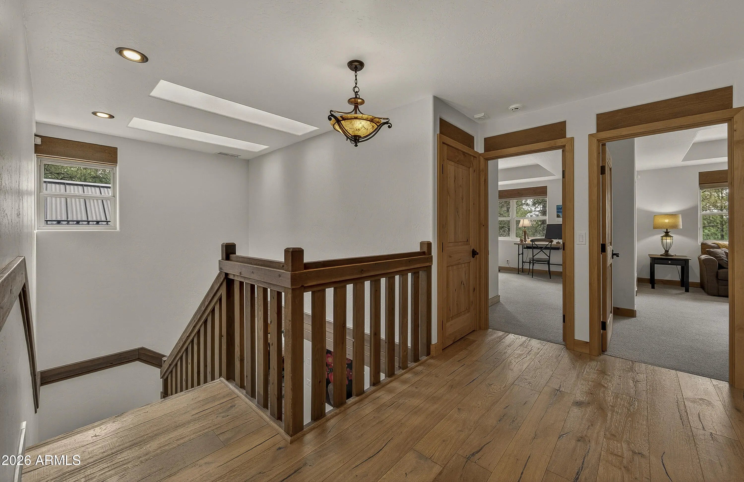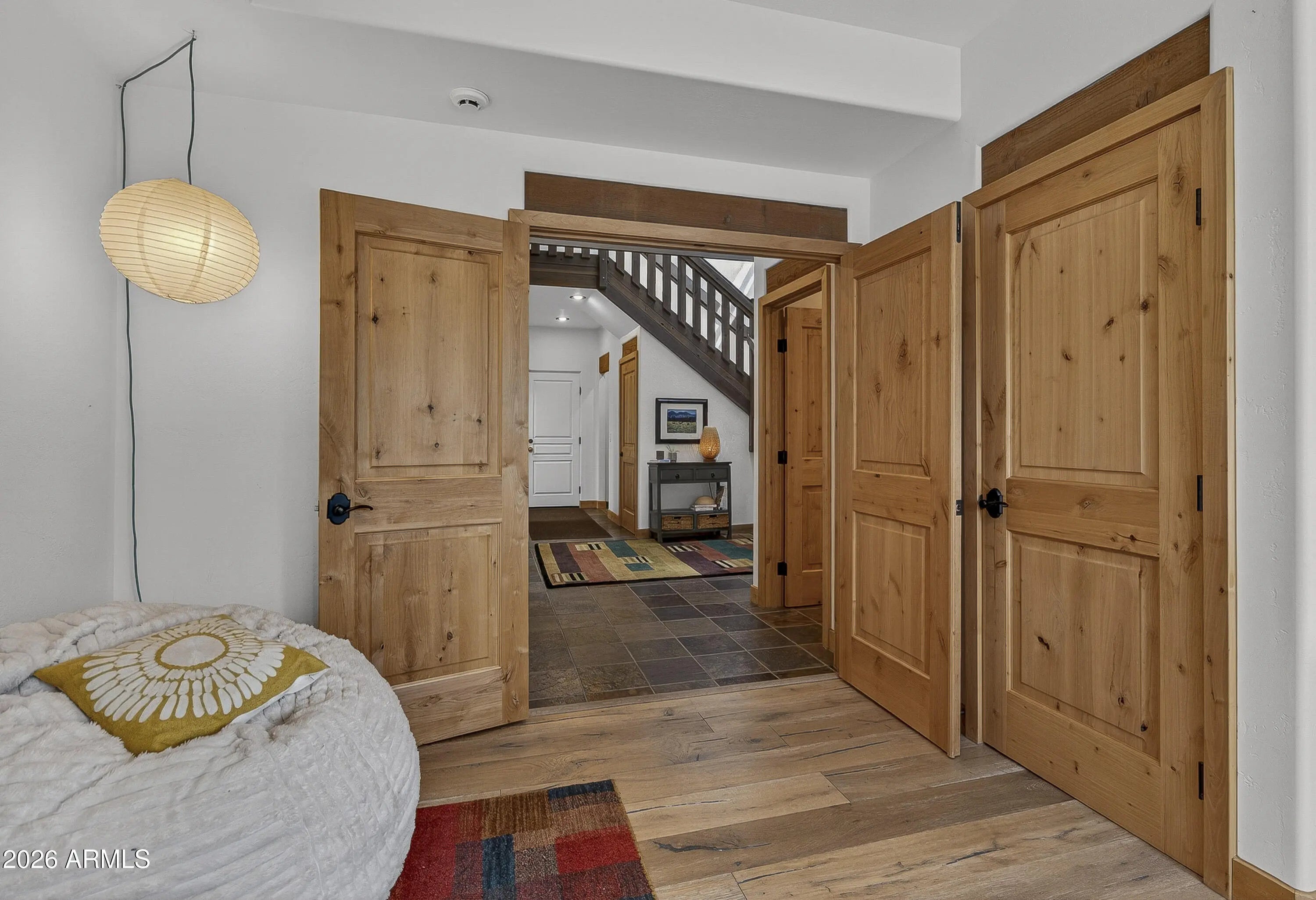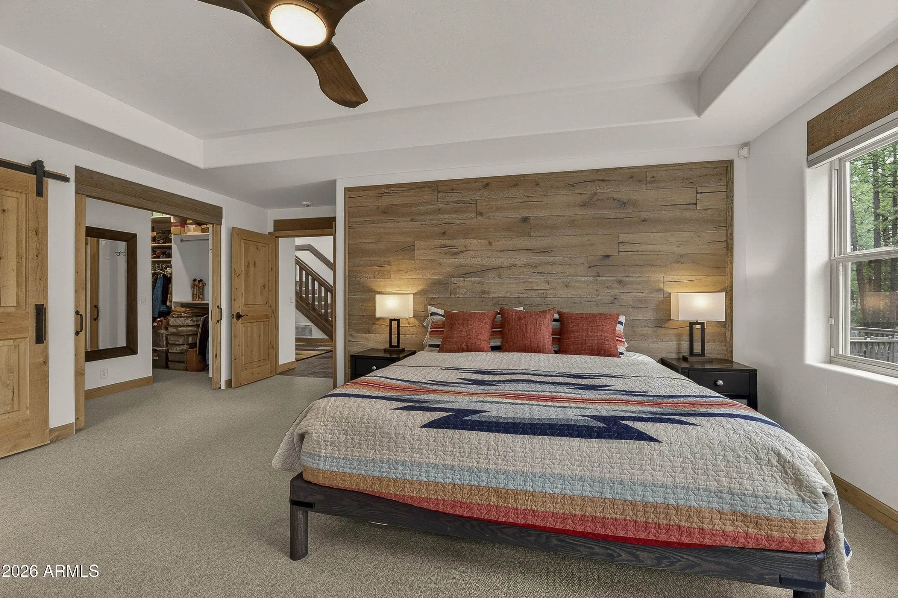 block workstation, double ovens, and a gas cooktop. The main-level primary suite sits near an office or 5th bedroom, with three oversized ensuite bedrooms upstairs, including one with custom triple bunk beds. This home has undergone extensive high-end interior renovations, including Knotty Alder doors and trim, designer lighting, premium wool Berber carpeting, a mix of slate and large plank wood floors, Hunter Douglas window coverings, upgraded stone and granite counters, and a spa-inspired primary bath with a custom slate soaking tub. Recent major investments elevate long-term reliability: owned solar, a premium metal roof, whole-home air sealing by Cozy Home, a high-efficiency heat pump system, and an upgraded 10,000-gallon galvanized cistern. The property has been professionally fire-wise treated, with over 150 additional trees and hazardous limbs removed. A mudroom and laundry area connect to the oversized 3-car garage, and the home includes two heaters, a hot tub, two A/C units, a large shed, a central vacuum, and more. This turnkey mountain retreat blends luxury, durability, privacy, and an unmatched outdoor lifestyle, all on a paved county road in one of Flagstaff's most coveted settings.