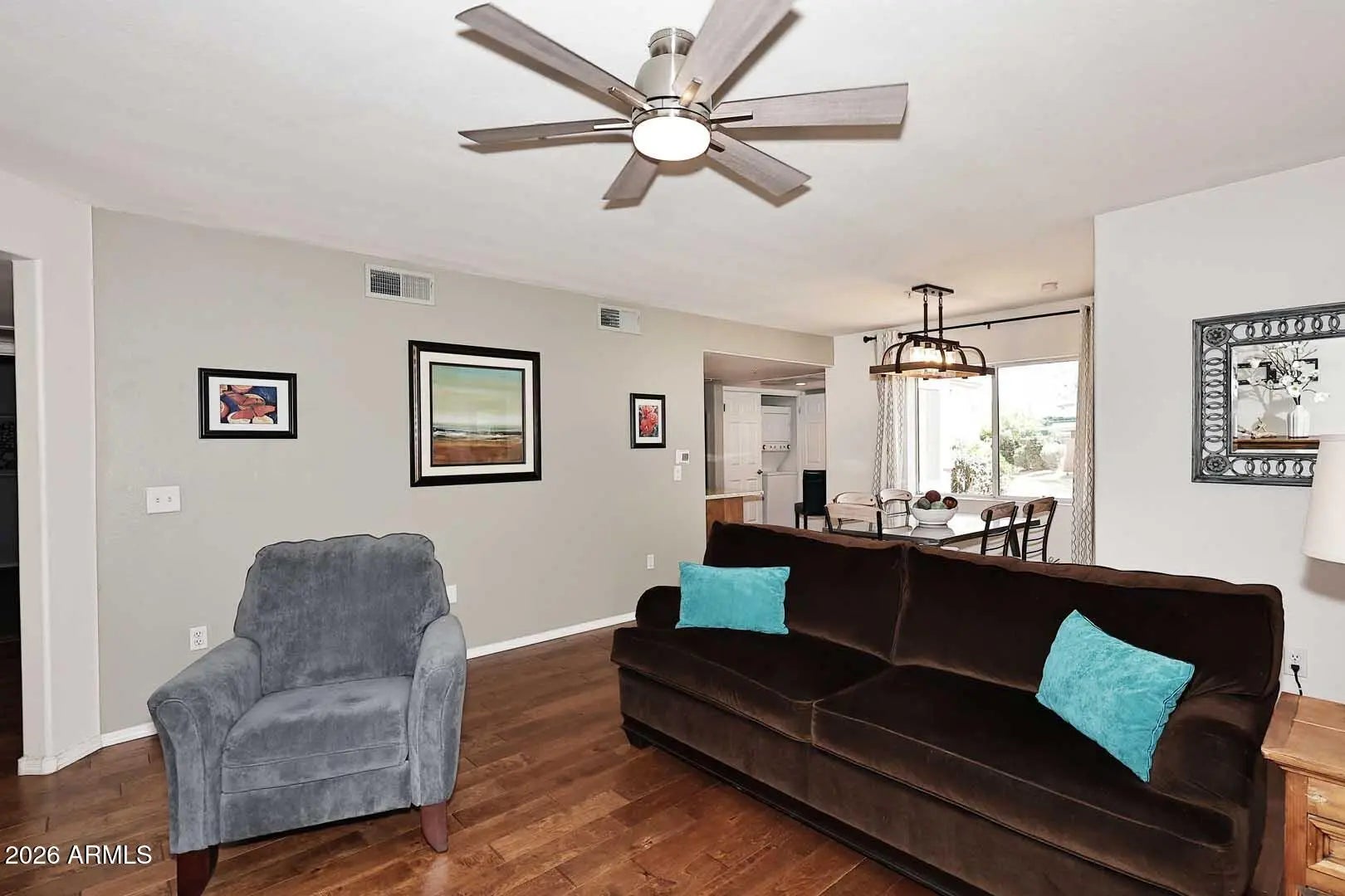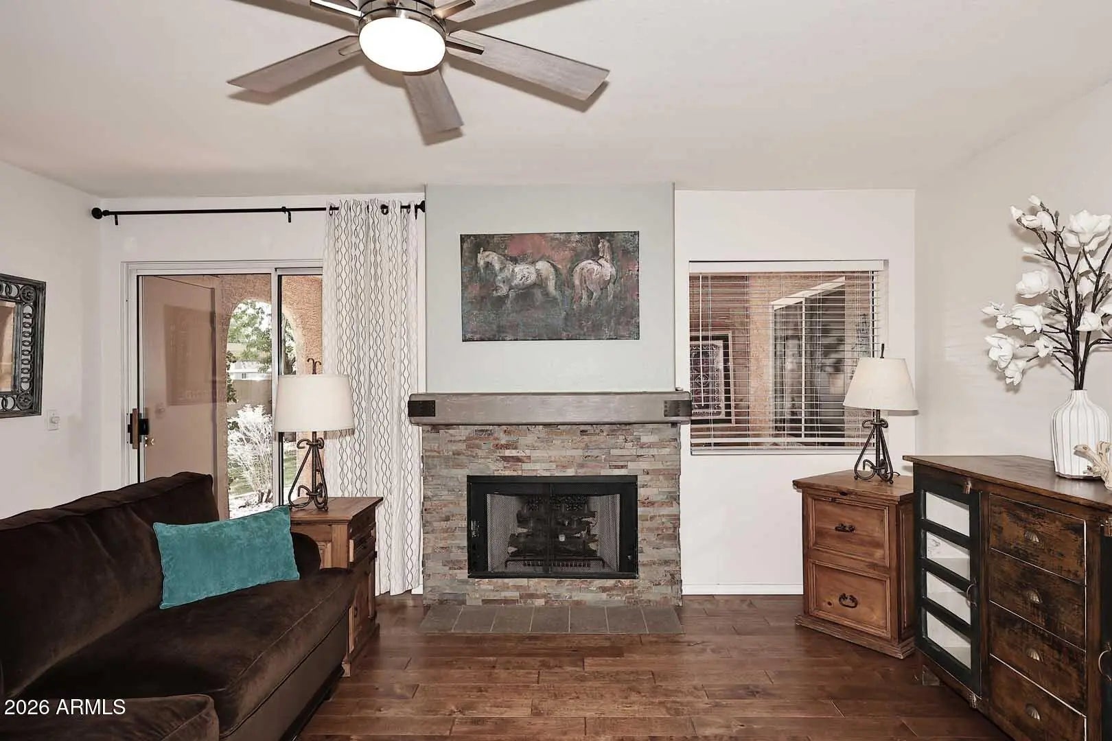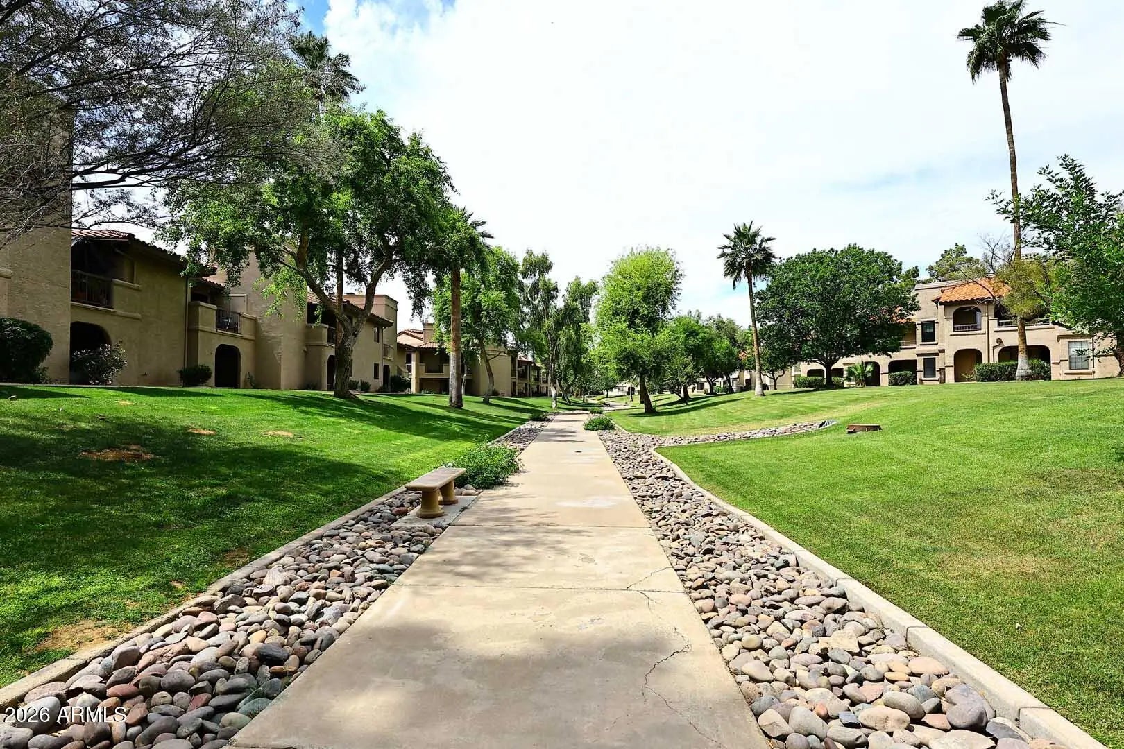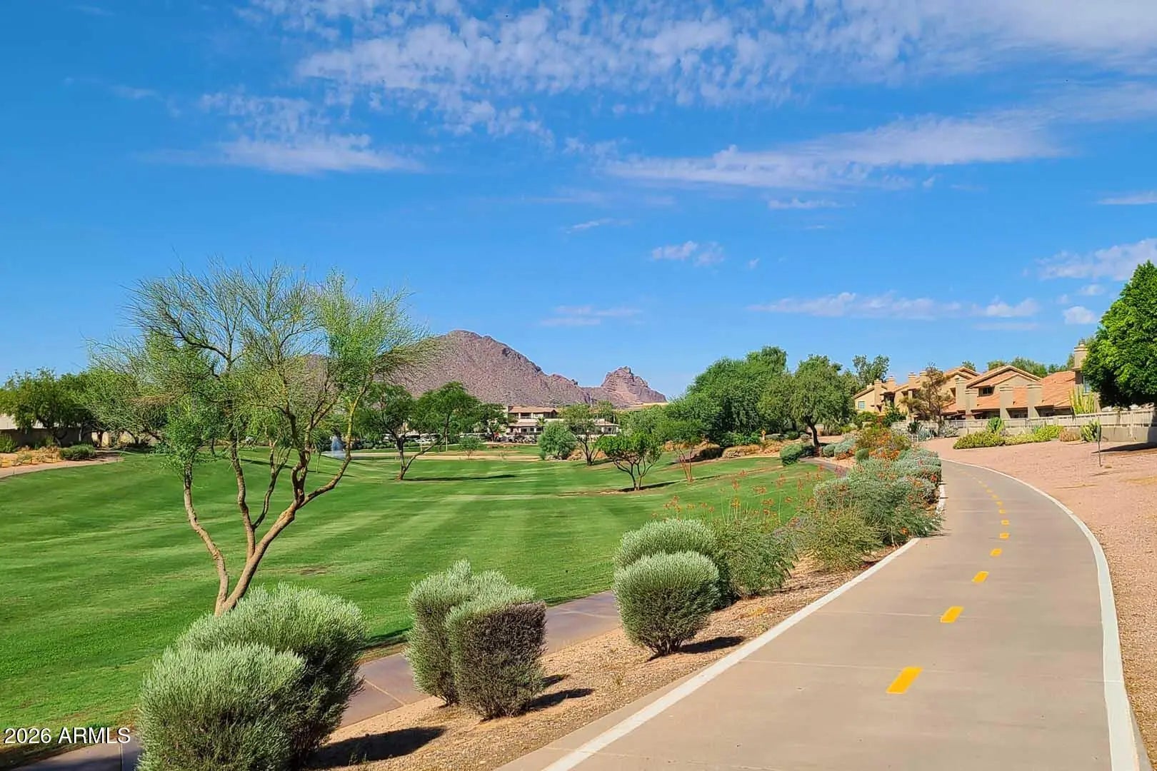 RARE OPPORTUNITY to own a spacious and highly desirable ground-floor end unit in one of Scottsdale's most sought-after communities. This beautifully maintained 2-bedroom, 2-bath condo plus den offers 1,496 sq. ft. of thoughtfully designed living space. Enjoy an open-concept layout that feels both bright and inviting, with seamless flow between the living, dining and kitchen areas. The private patio overlooks a lush grassy area, creating a serene, resort-like setting right outside your door. Enjoy access to eight resort-style pools, tennis courts, pickleball courts, and scenic walking paths, delivering an active and luxurious lifestyle. Whether you're seeking a full-time residence, seasonal retreat, or investment property, this is it!