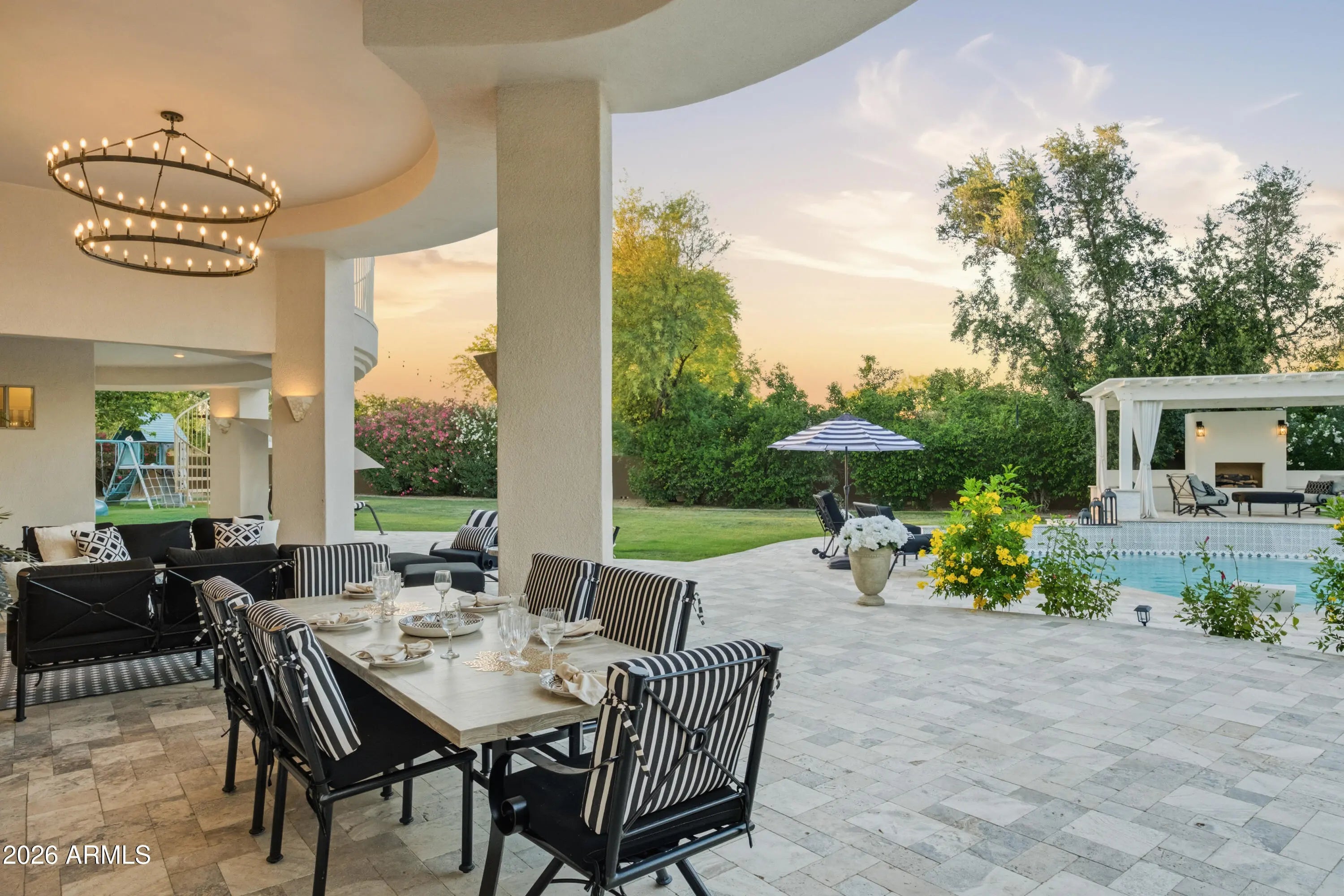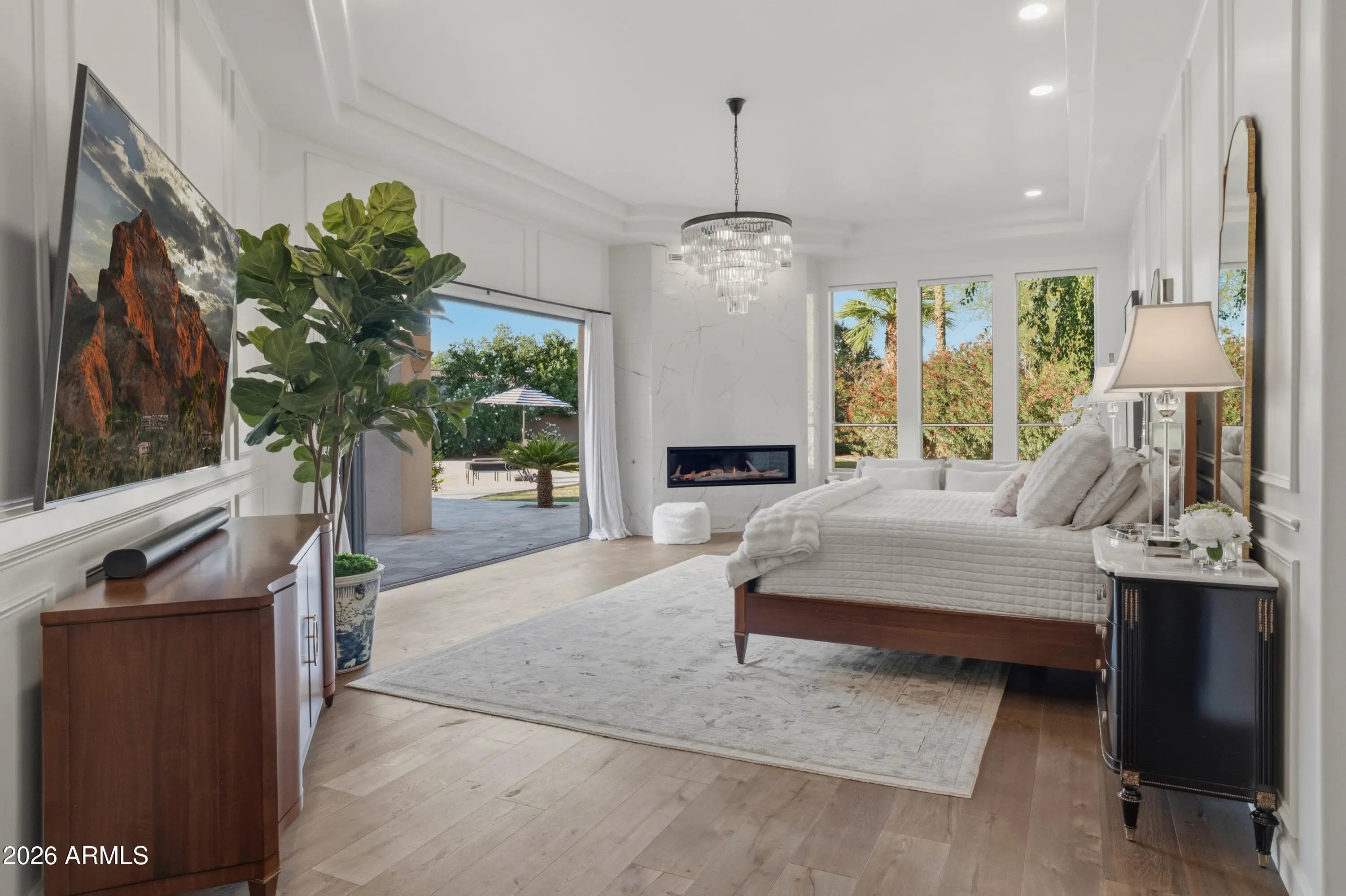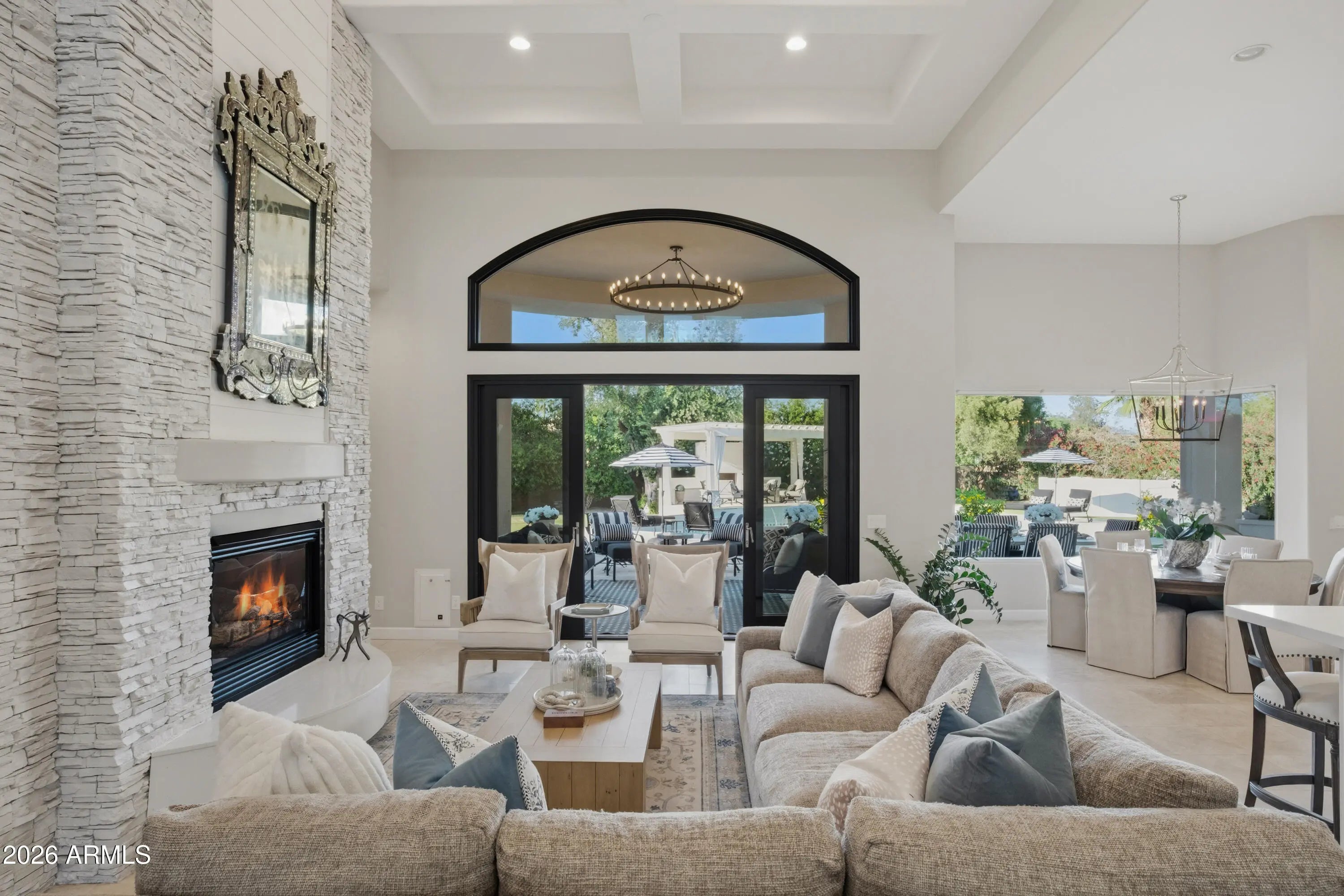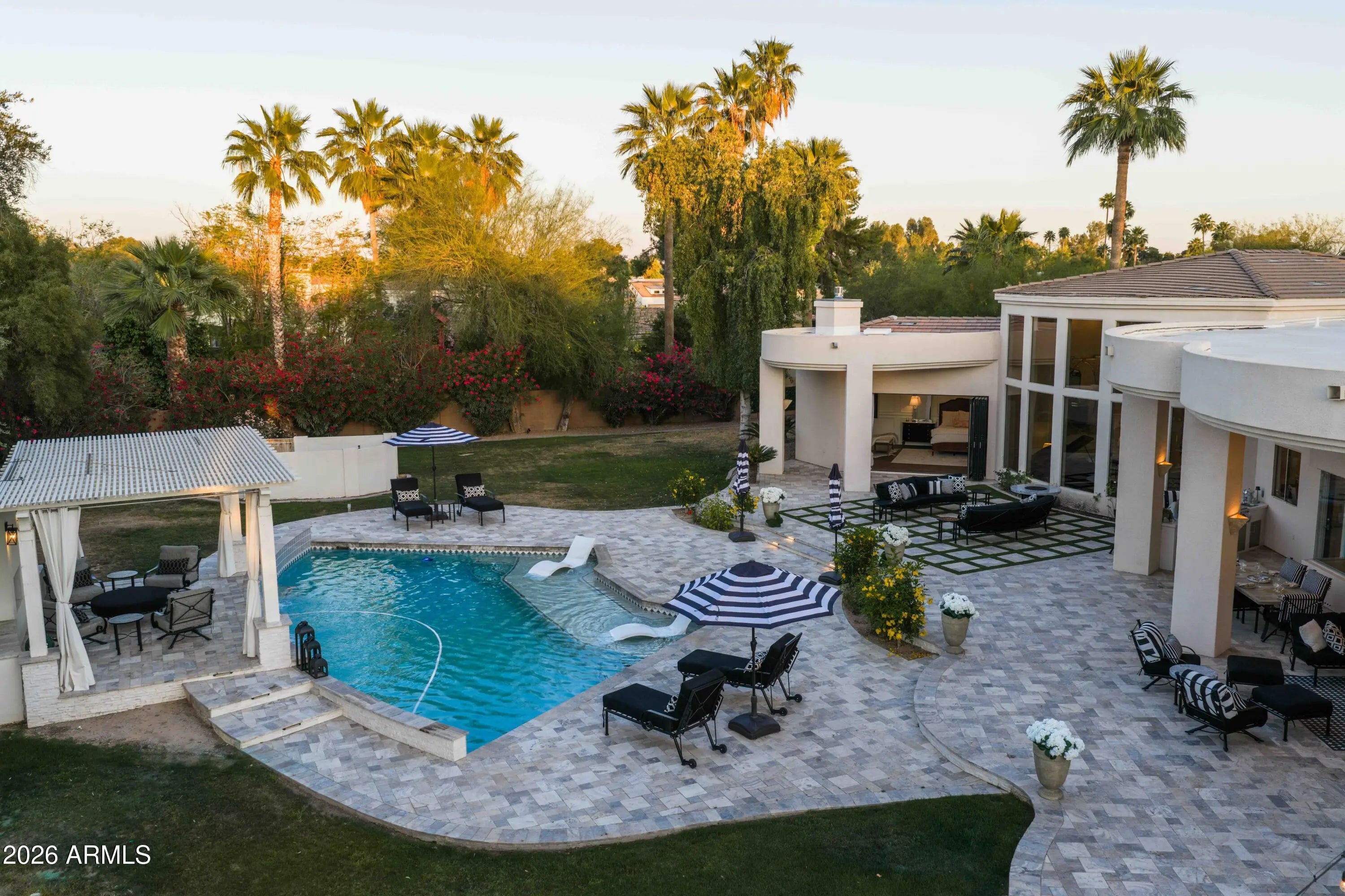 Exceptional opportunity to secure a private retreat within one of Paradise Valley's most prestigious enclaves. Perfectly positioned on a peaceful, tree-lined street, yet moments from Scottsdale's finest shopping and dining, this elegant home in Doubletree Estates offers both seclusion and convenience. A stunning, light-filled living room features soaring ceilings, refined wall detailing and expansive windows framing breathtaking views of the resort style backyard. Inviting and refined, the soft contemporary home continues with an open and bright kitchen, large island and bar, seamlessly connecting to a striking family room, grand fireplace and beautiful glass doors that create indoor/outdoor living. The sophisticated and newly updated primary suite offers a floor-to-ceiling fireplace and panoramic glass doors overlooking the stunning backyard oasis. Enjoy modern luxury in the newly renovated master bath with double walk-in closets. Two additional updated ensuite bedrooms add a touch of modern luxury throughout. The home offers an additional office and flex space ideal for a fitness area or playroom etc. Step outside to experience beautifully paver-ed patios that extend across the entire backyard, creating multiple areas for relaxation and entertaining. The expansive outdoor spaces are perfect for hosting large gatherings- all set against a backdrop of resort-style grounds that feature a generous pool, elegant ramada with fireplace and outdoor kitchen with expansive bar seating. You'll also discover stunning mountain and sunset views from the rooftop deck. If you are seeking an elevated living experience, this residence delivers a timeless style and unparalleled sophistication. Expansion plans available upon request.