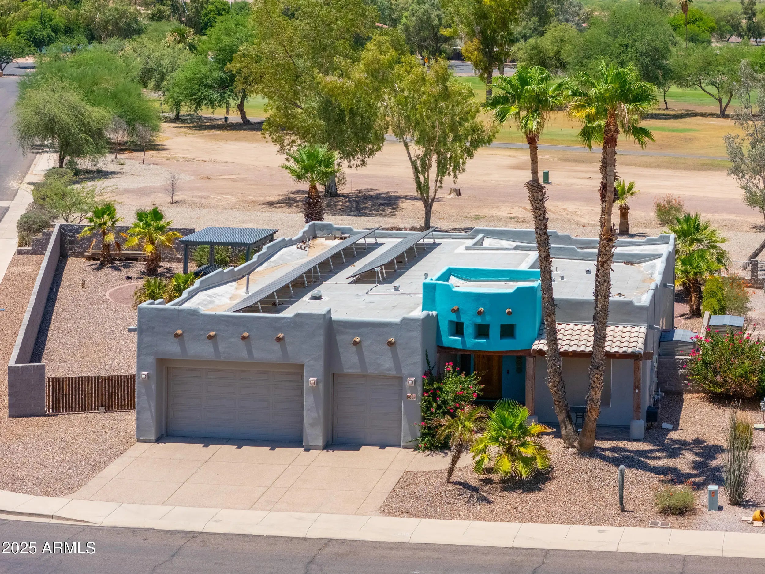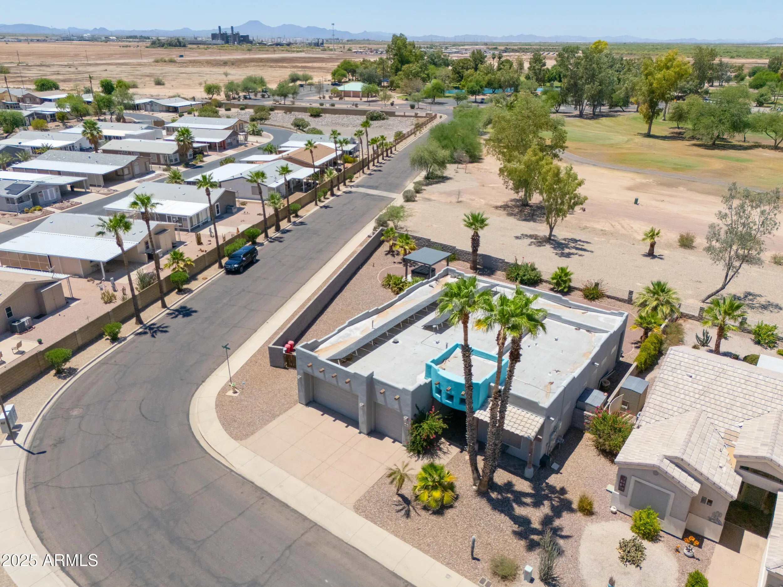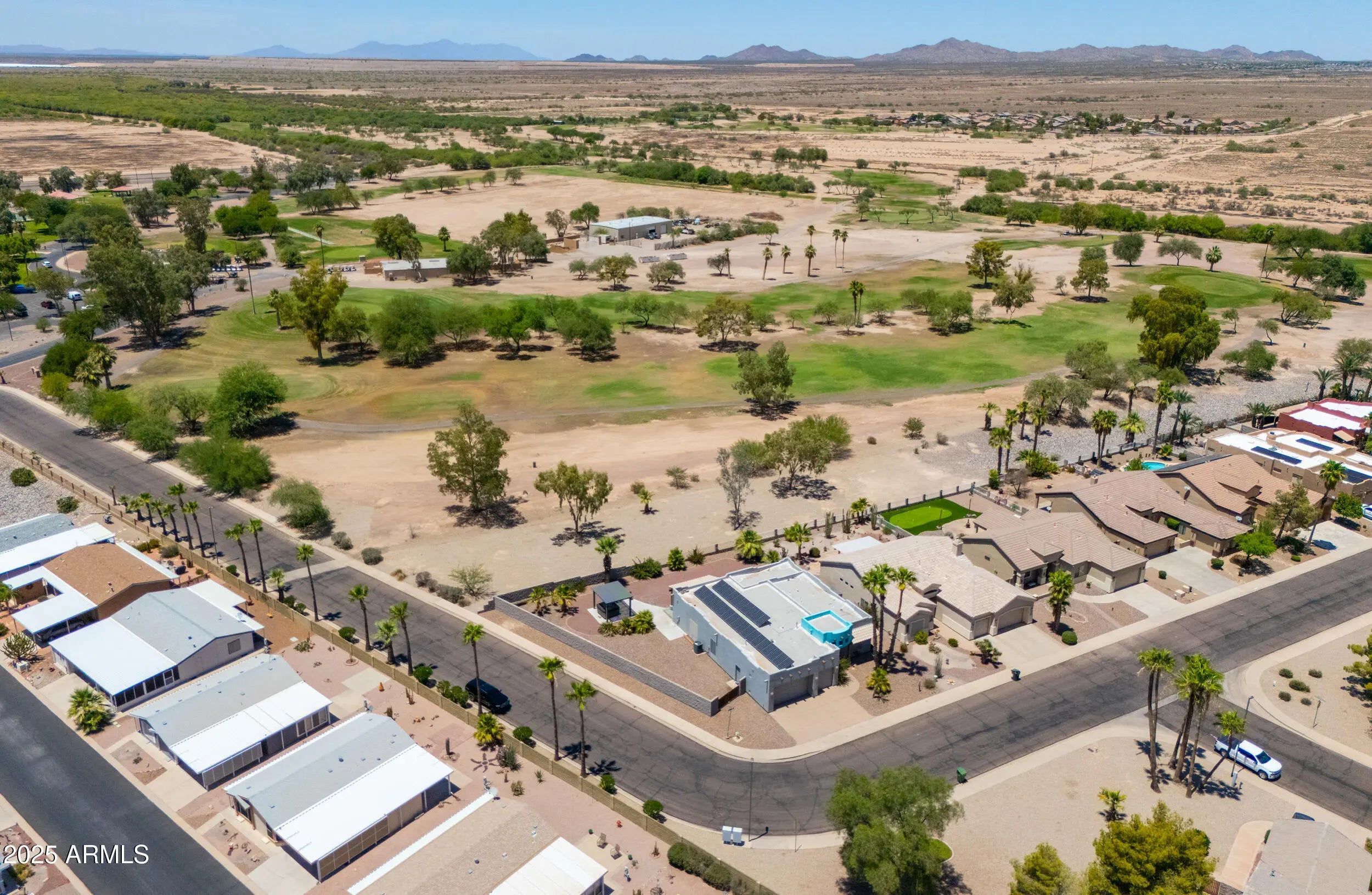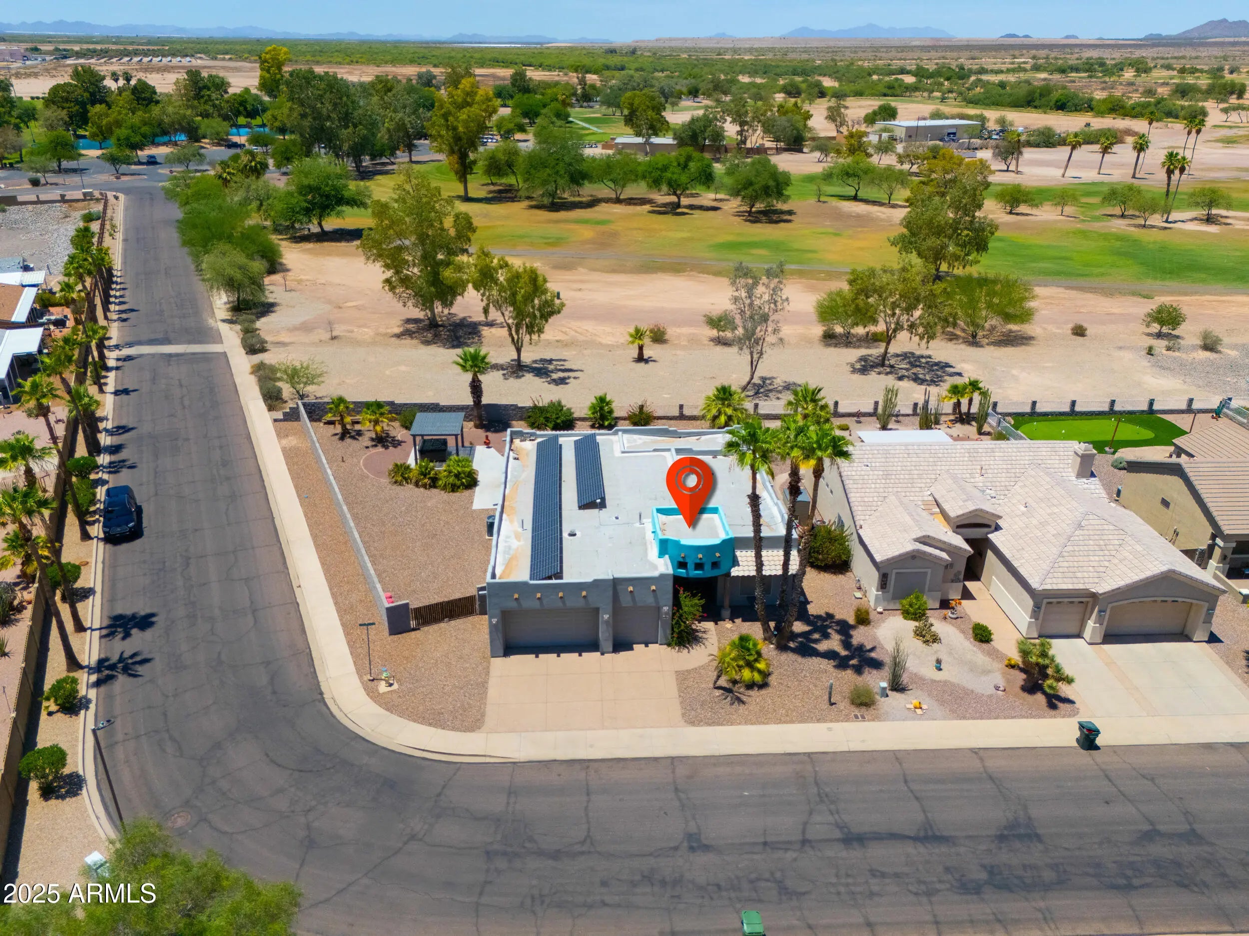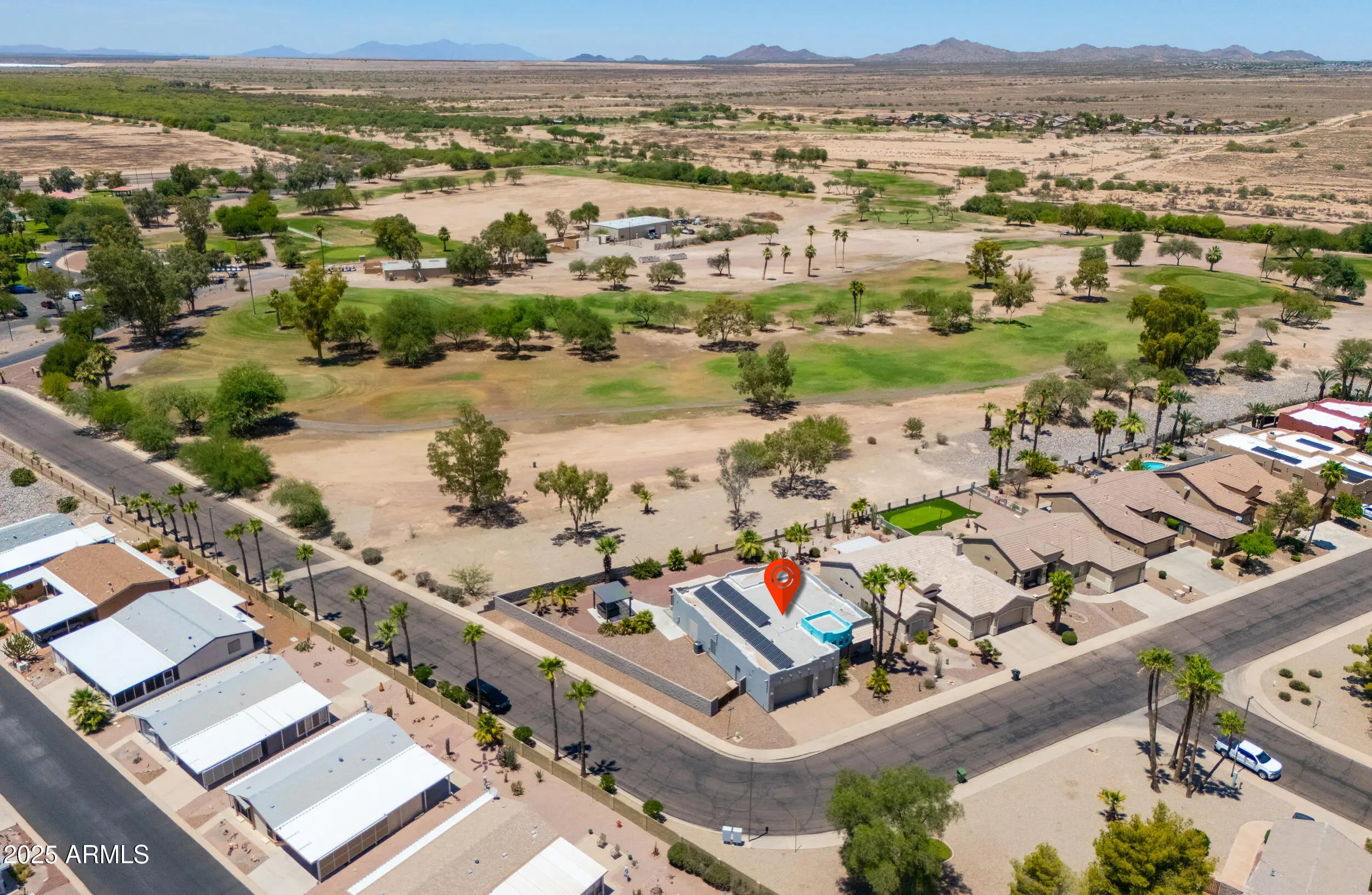 Beautifully maintained custom home on a premium corner lot with views overlooking the #1 tee box at Dave White Golf Course! The home also has OWNED solar panels for low utility bills. This spacious floor plan offers 2 bedrooms, 2 bathrooms + den ideal for a home office or guest room. The large kitchen features ample cabinetry & counter space, perfect for cooking and entertaining. The primary suite includes a bay window for natural light & an ensuite bath with walk-in shower, garden tub & dual sink vanity. Interior highlights include stacked flagstone fireplace with timber mantel, wood doors & frames, recessed lighting throughout & shade screens on all windows. Additional features include wide RV gates & an oversized 3-car garage w/epoxy flooring.