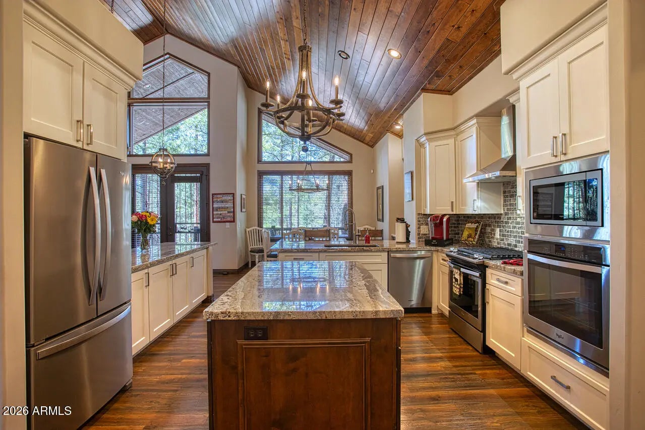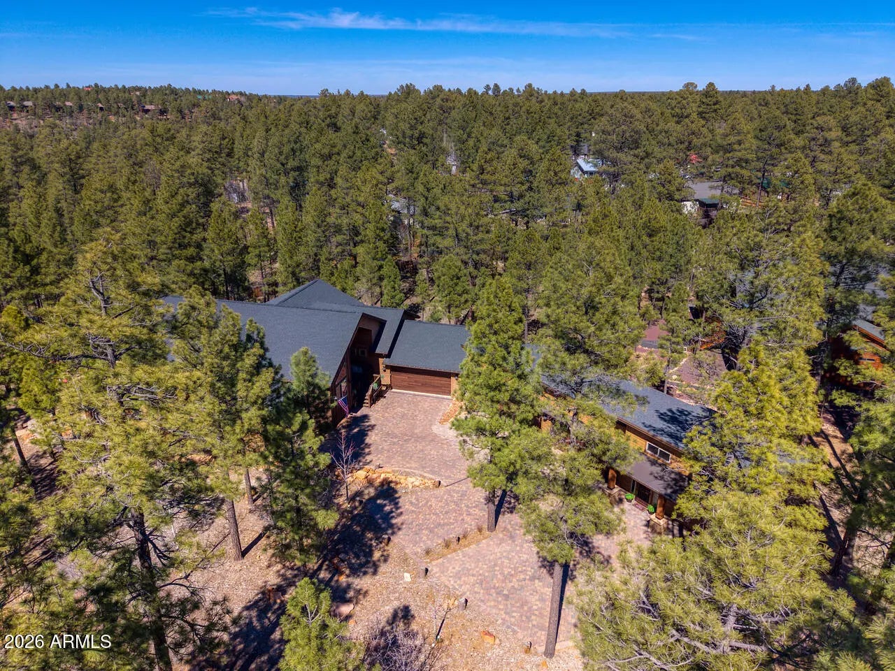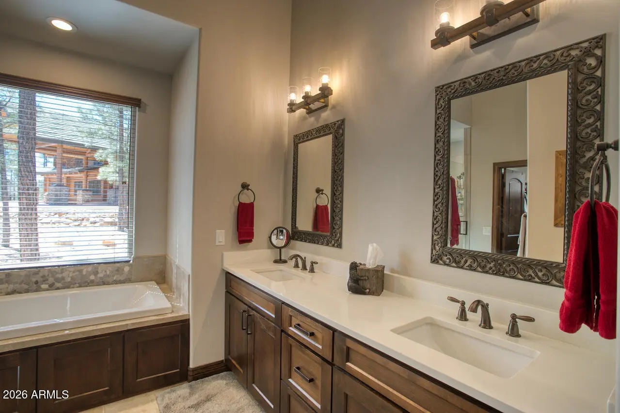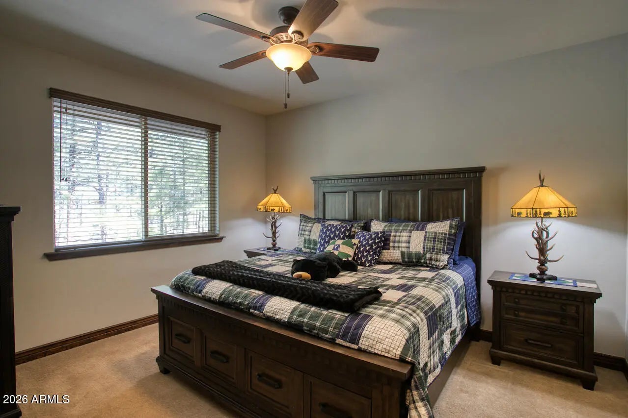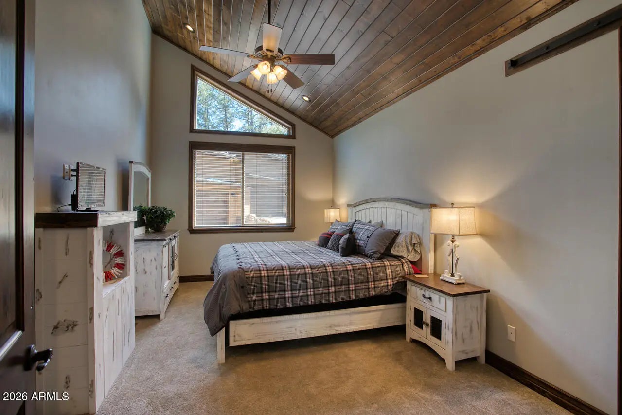 This exceptional luxury home in Arizona's White Mountains is a rare collaboration between premier builders Cambric Construction and Triple R Construction, offering quality craftsmanship and thoughtful design throughout. Located on approximately 0.91 acres in the private, gated Torreon community of Show Low, the property backs to the Sitgreaves National Forest, providing unmatched privacy and scenic surroundings. The main home/casita features approximately 3,467 square feet of living space, with expansive front and back decks ideal for relaxing or entertaining. A six-person heated Jacuzzi spa sits just off the primary suite, creating a private retreat. A fully furnished detached casita includes a full kitchen and bathroom, perfect for guests or extended family. The property also offers flexible garage space for up to six vehicles, or four vehicles plus a fully enclosed workshop. Both the garage and workshop include half bathrooms. Outdoor features include a paver driveway, five parking spaces, and a walkway leading to a spacious 25' x 25' seating area with a raised fire pit, perfect for gathering and enjoying the mountain setting. This home features 6 spacious bedrooms, 5 full bathrooms, and 2 half bathrooms, including those in the garage and workshop. The open-concept layout includes a well-appointed kitchen with stainless steel appliances, double ovens, ample cabinetry, a wine cooler, and a dedicated wine bar. Each room is comfortably furnished with inviting mountain-style décor. Located within the gated Trailhead community, the home sits approximately one mile from the entrance on a quiet cul-de-sac. At its center is a large, wooded island owned by the HOA, ensuring it will remain unbuildable and preserving the home's sense of space and privacy. The property is being sold fully furnished, both inside and out, offering a true turnkey opportunity; just bring your essentials. This home combines comfort, privacy, and warmth in a peaceful mountain setting