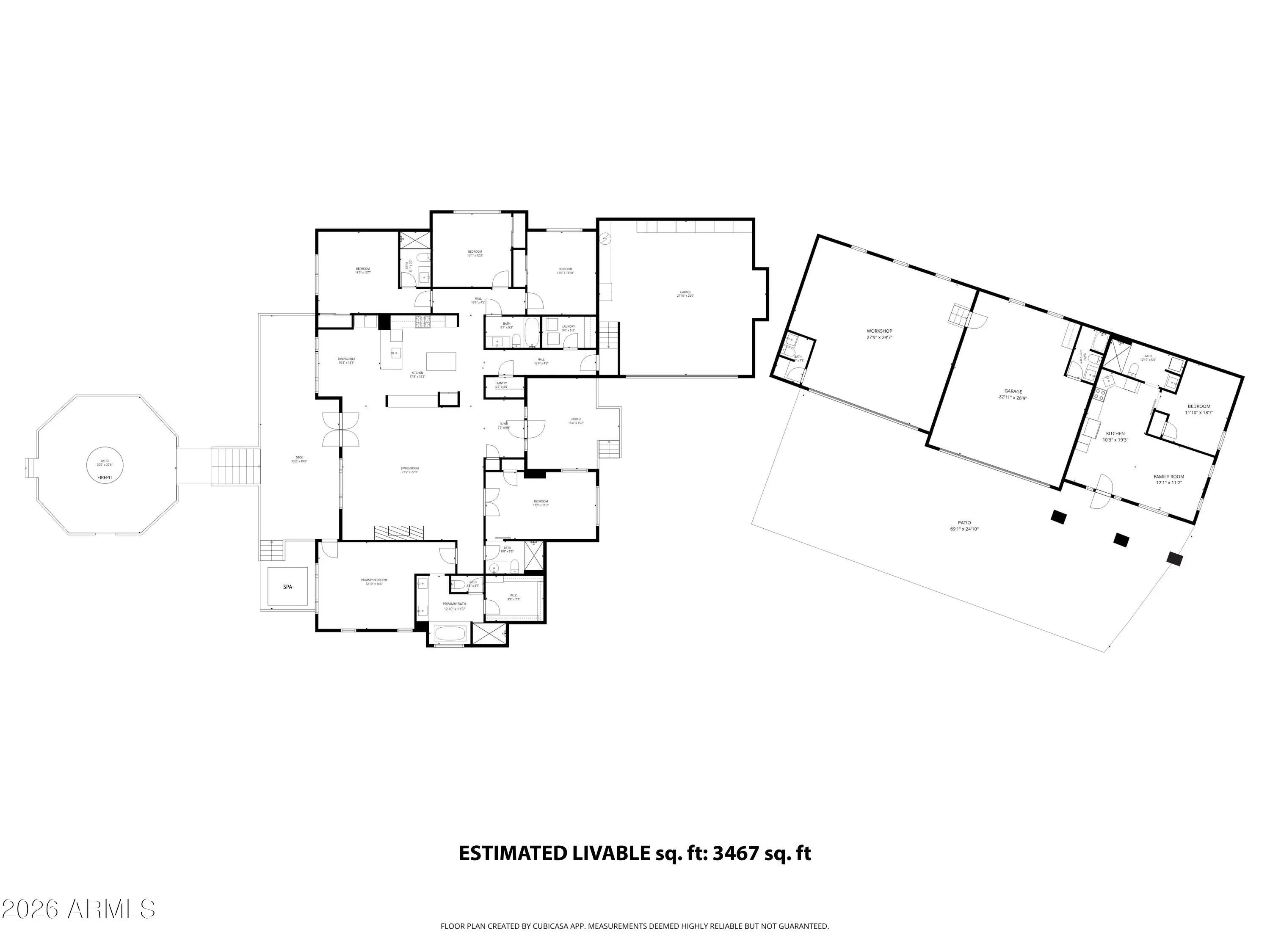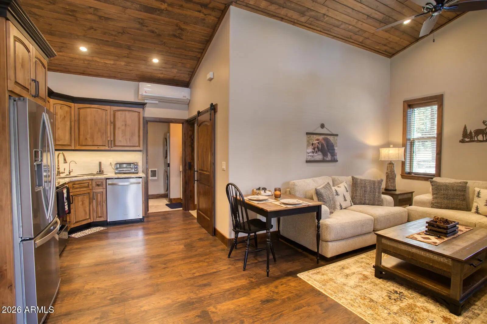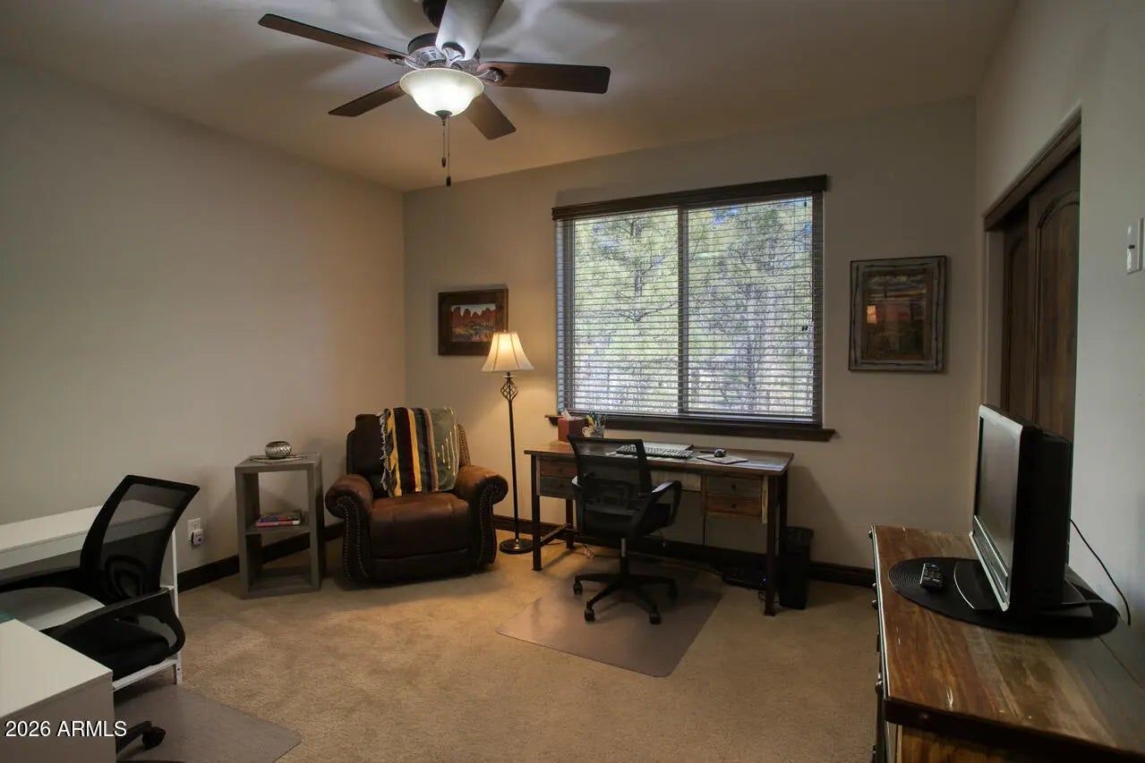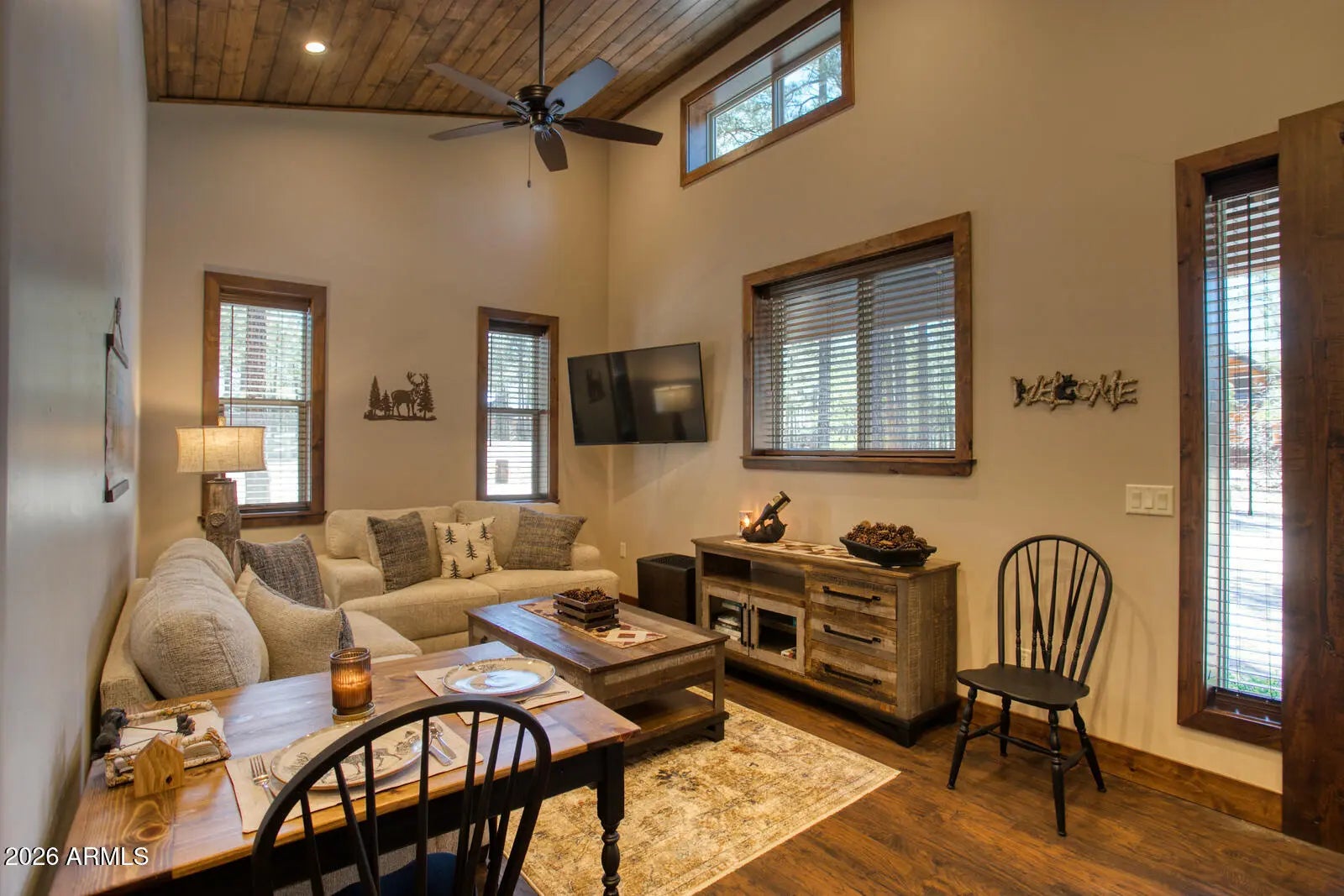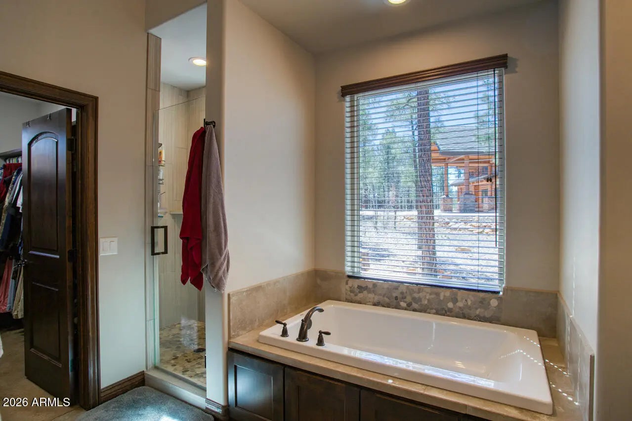 This exceptional luxury home in Arizona's White Mountains is a rare collaboration between premier builders Cambric Construction and Triple R Construction, offering quality craftsmanship and thoughtful design throughout. Located on approximately 0.91 acres in the private, gated Torreon community of Show Low, the property backs to the Sitgreaves National Forest, providing unmatched privacy and scenic surroundings. The main home/casita features approximately 3,467 square feet of living space, with expansive front and back decks ideal for relaxing or entertaining. A six-person heated Jacuzzi spa sits just off the primary suite, creating a private retreat. A fully furnished detached casita includes a full kitchen and bathroom, perfect for guests or extended family. The property also offers flexible garage space for up to six vehicles, or four vehicles plus a fully enclosed workshop. Both the garage and workshop include half bathrooms. Outdoor features include a paver driveway, five parking spaces, and a walkway leading to a spacious 25' x 25' seating area with a raised fire pit, perfect for gathering and enjoying the mountain setting. This home features 6 spacious bedrooms, 5 full bathrooms, and 2 half bathrooms, including those in the garage and workshop. The open-concept layout includes a well-appointed kitchen with stainless steel appliances, double ovens, ample cabinetry, a wine cooler, and a dedicated wine bar. Each room is comfortably furnished with inviting mountain-style décor. Located within the gated Trailhead community, the home sits approximately one mile from the entrance on a quiet cul-de-sac. At its center is a large, wooded island owned by the HOA, ensuring it will remain unbuildable and preserving the home's sense of space and privacy. The property is being sold fully furnished, both inside and out, offering a true turnkey opportunity; just bring your essentials. This home combines comfort, privacy, and warmth in a peaceful mountain setting