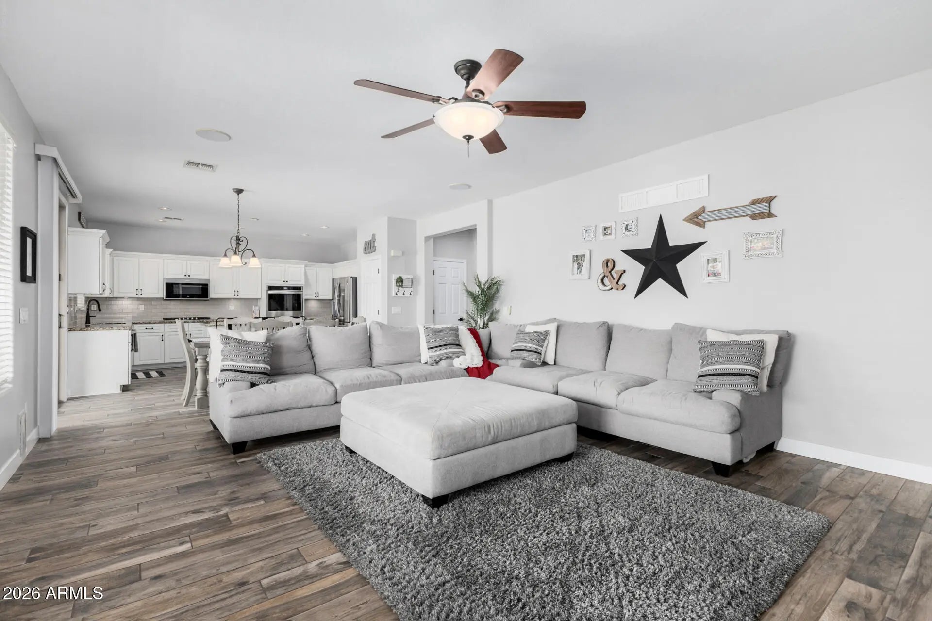 This immaculately maintained & truly pristine 4-bedroom, 2.5-bath home with a loft, 3-car garage, & RV gate is ideally situated in the highly desirable Chandler community of Sun Groves, directly across from a massive greenbelt offering beautiful open space, scenic views, & added privacy. The home also features an energy-efficient solar system, helping to reduce utility costs while enhancing long-term value. From the moment you arrive, the exceptional pride of ownership is undeniable--this home feels as though it has been barely lived in. Inside, you'll find a light, bright, & spotless interior featuring wood-look tile flooring throughout & a highly desirable open-concept layout, with the family room seamlessly flowing into the kitchen--perfect for everyday living & entertaining. The kitchen is both functional & stylish, showcasing white cabinets, a gas range, double ovens, a spacious pantry, & a large island with seating. Upstairs, the versatile loft provides the perfect flex space for a second living area, office, or playroom, while the spacious bedrooms and well-appointed bathrooms offer comfort and abundant natural light. The oversized primary suite is a true retreat, complete with a walk-in closet and a charming barn door leading to the spa-like bathroom featuring dual sinks, a separate soaking tub, and a walk-in shower. Step outside to your own backyard oasis, truly a private paradise with a paver patio, sparkling pool & spa, & a large grass area--ideal for entertaining, relaxing, & enjoying Arizona living year-round. With a rare 3-car garage, RV gate, & a premium location near parks, walking paths, top-rated schools, shopping, & dining, this home offers the perfect combination of cleanliness, functionality, & move-in-ready perfection--homes like this are truly rare.