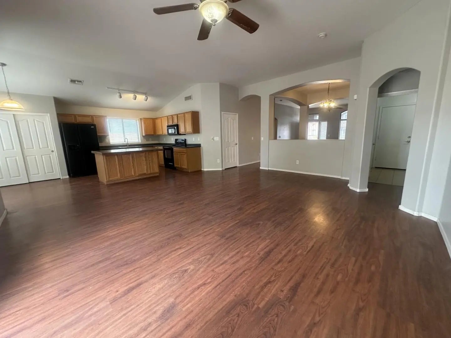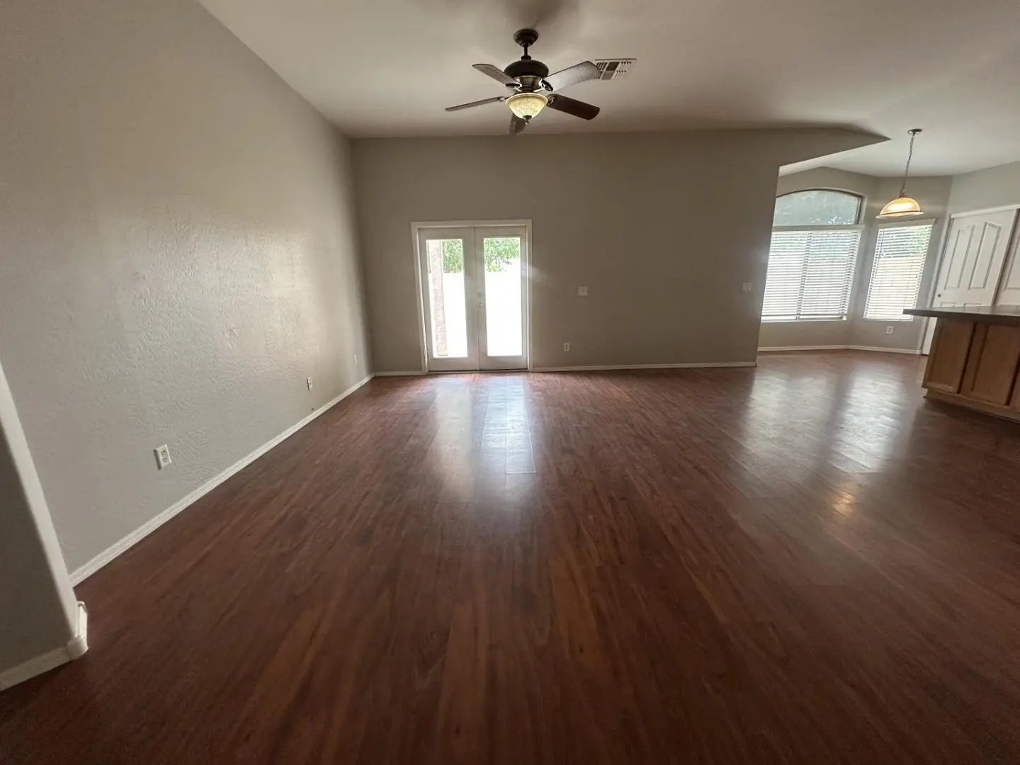 Single-level 3-bedroom home in a desirable Chandler location featuring a 2-car garage and tile roof and wood plank flooring throughout with no carpet. This well-designed split floor plan offers separate family and living areas, along with formal dining and an eat-in kitchenperfect for both everyday living and entertaining. Interior highlights include vaulted ceilings, laminate flooring, neutral paint. The kitchen offers ample cabinet and counter space, track lighting, and an island with a breakfast bar. The spacious primary suite features a dual sink vanity, separate tub and shower, and a walk-in closet. Conveniently located near shopping, dining, and major freeways.