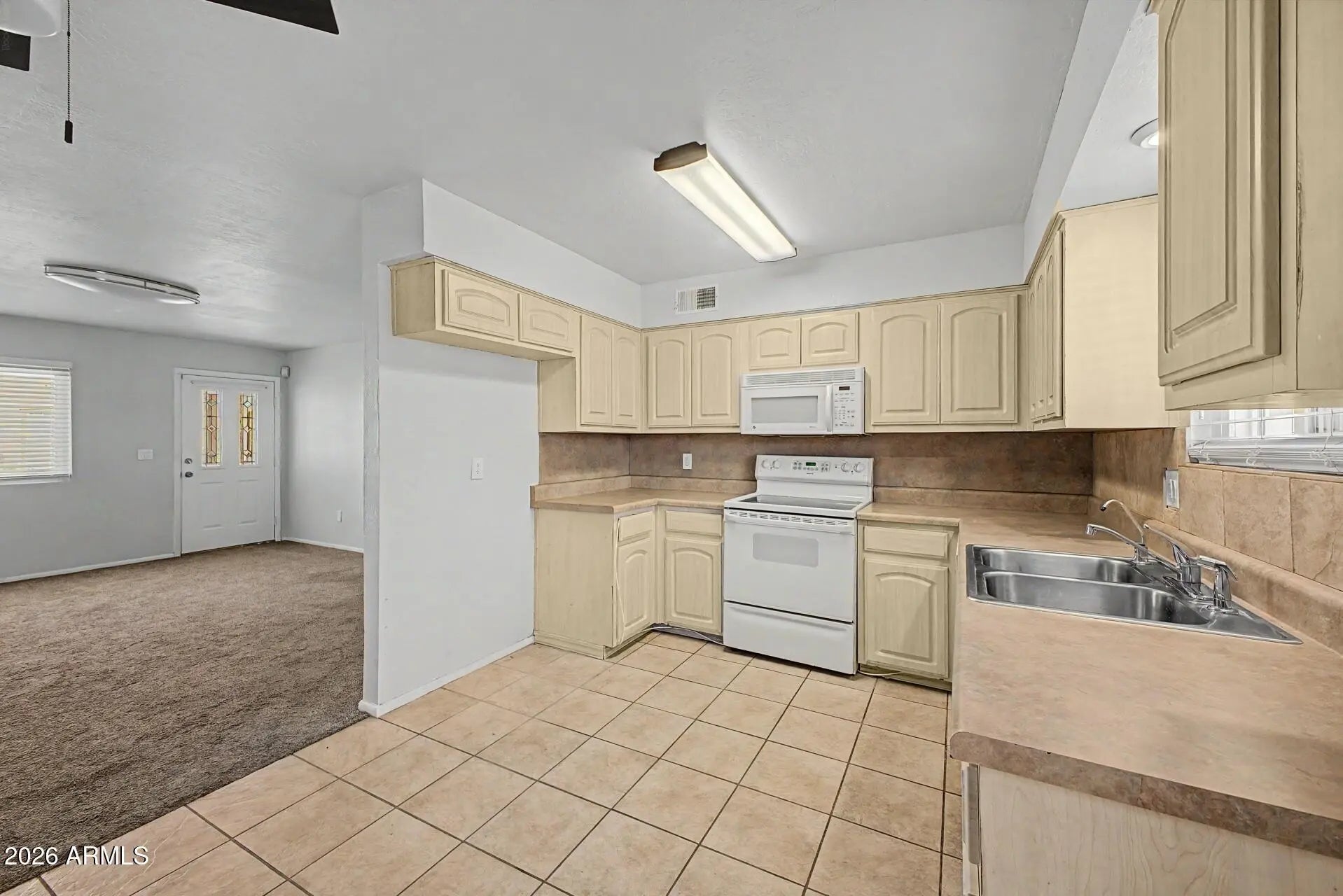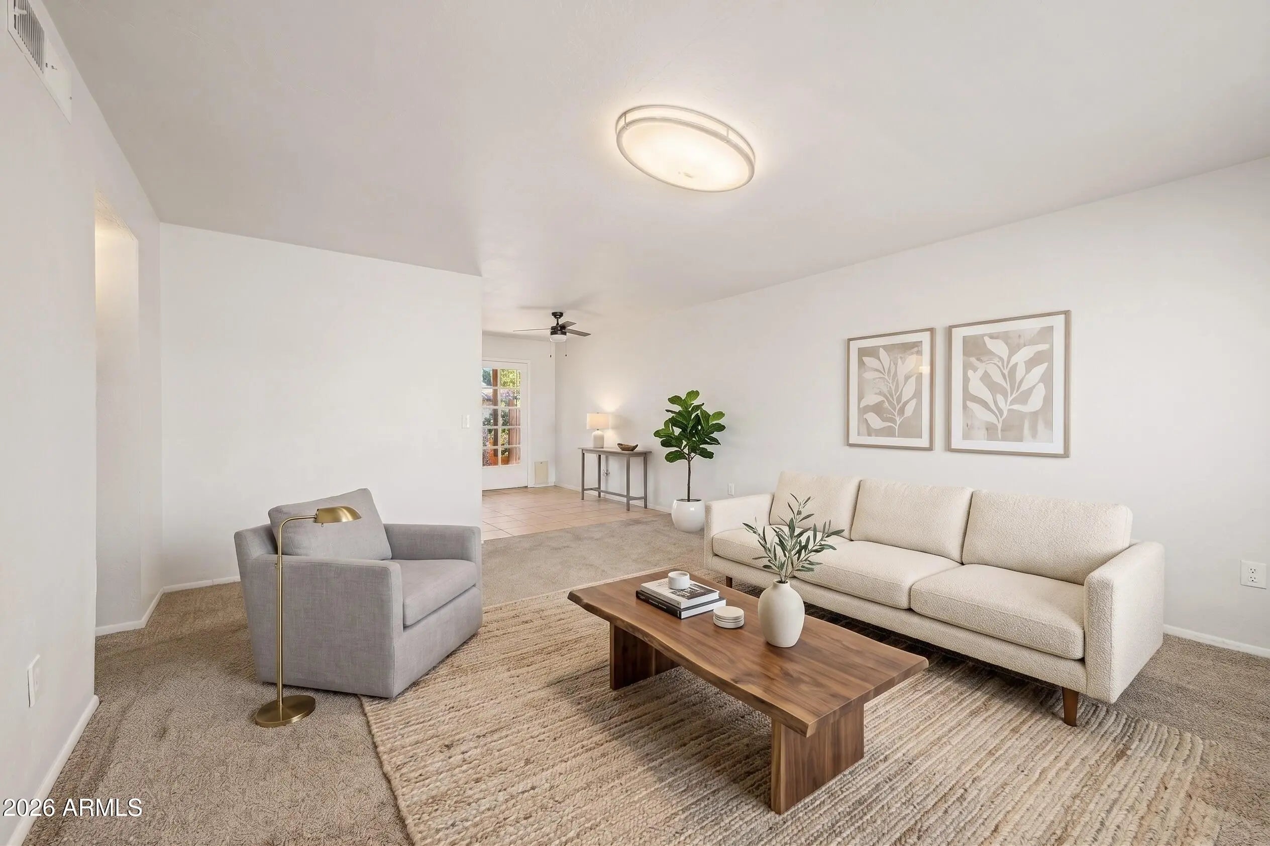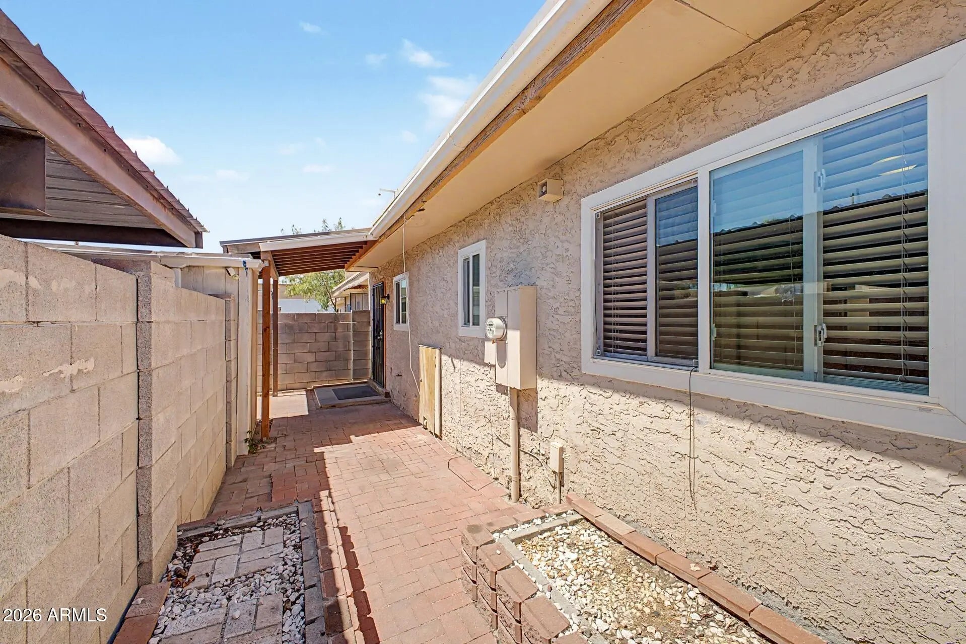 Welcome home to a space designed for peace and comfort. From the moment you step onto the elegant tile floors of the sun-drenched living room, you'll feel right at home. The heart of the house is the charming eat-in kitchen, where breakfast is served against a backdrop of beautiful wood cabinets and a stylish tile backsplash. New flooring. Retreat to a primary bedroom that prioritizes your comfort with soft carpeting and a spacious walk-in closet. Outside, your morning routine gets an upgrade on the serene, paver-lined patio. With a dedicated carport and plenty of storage, this home offers the low-maintenance lifestyle you've been dreaming of. A shopper's paradise! You're just minutes away from Costco Business Center, Fry's, Walmart, and the specialty finds at Lam's Seafood Market.