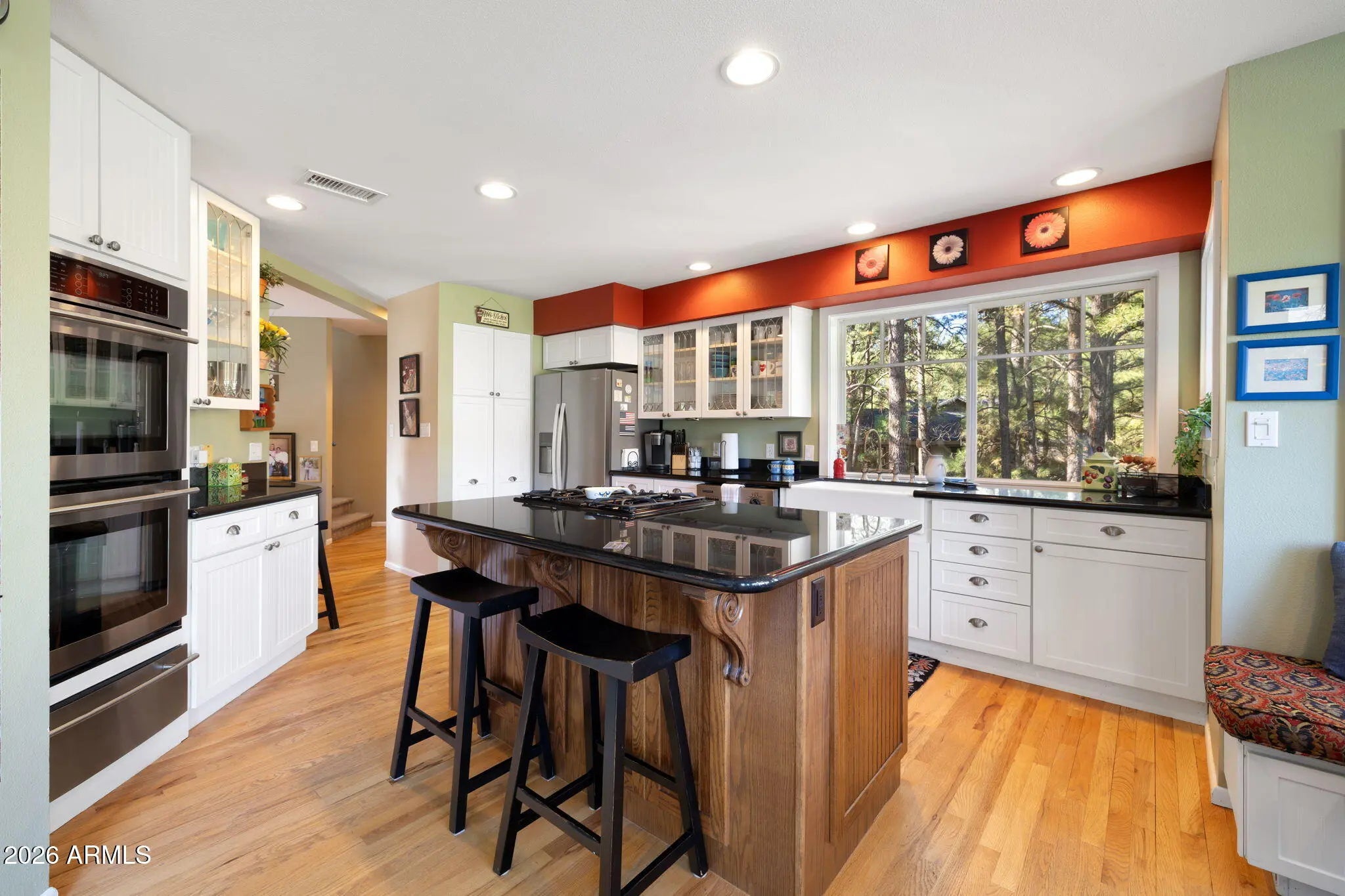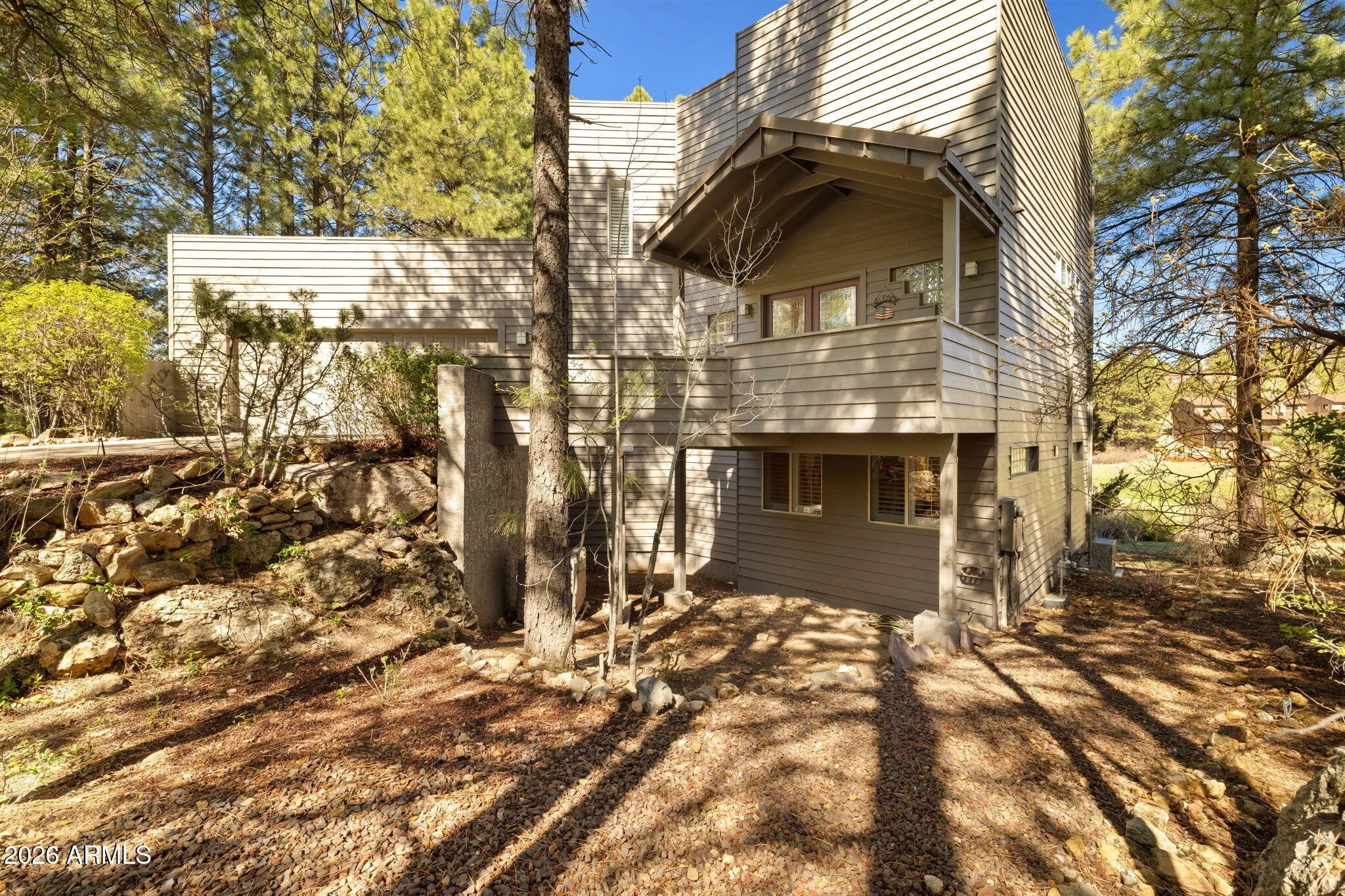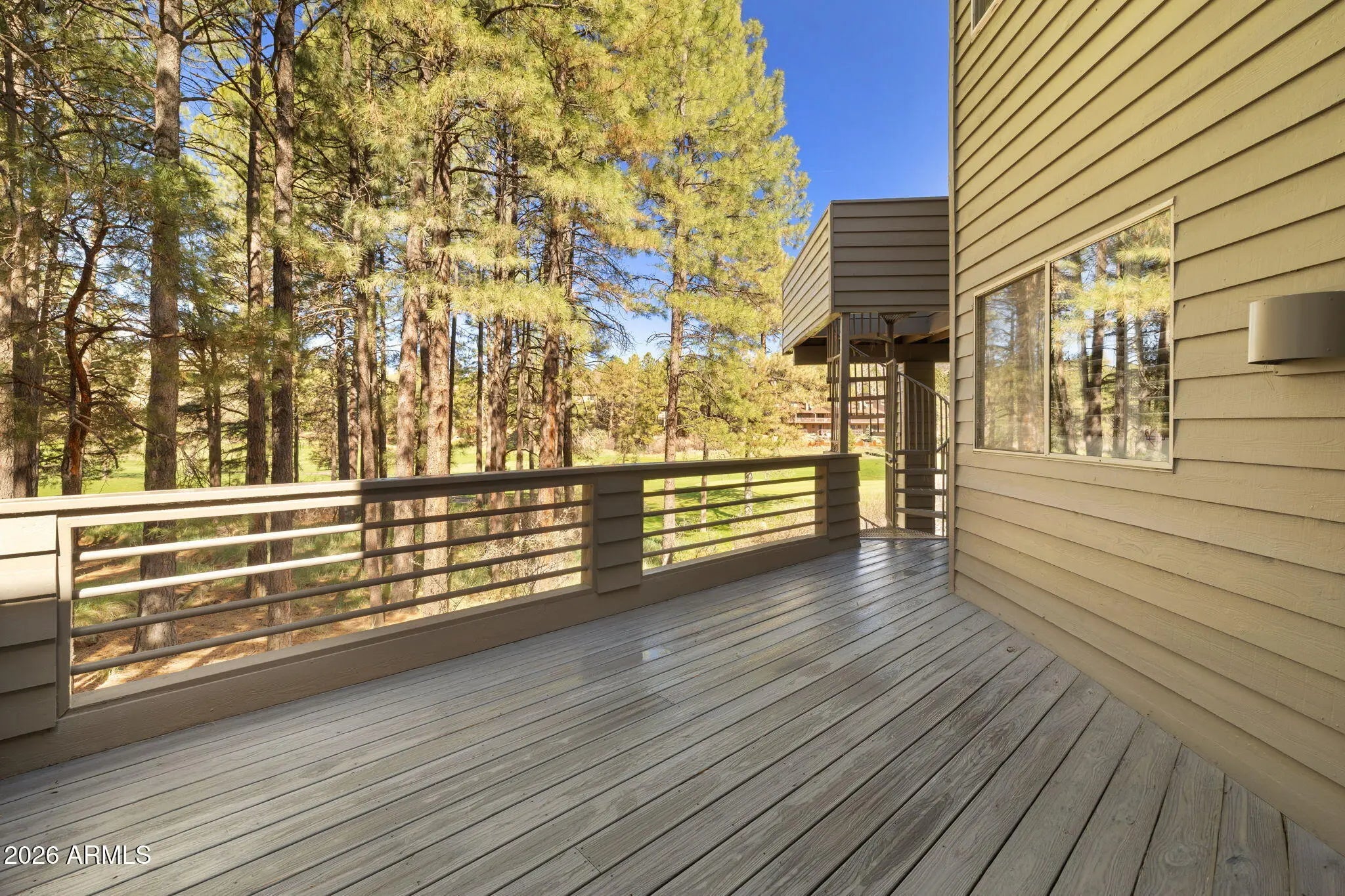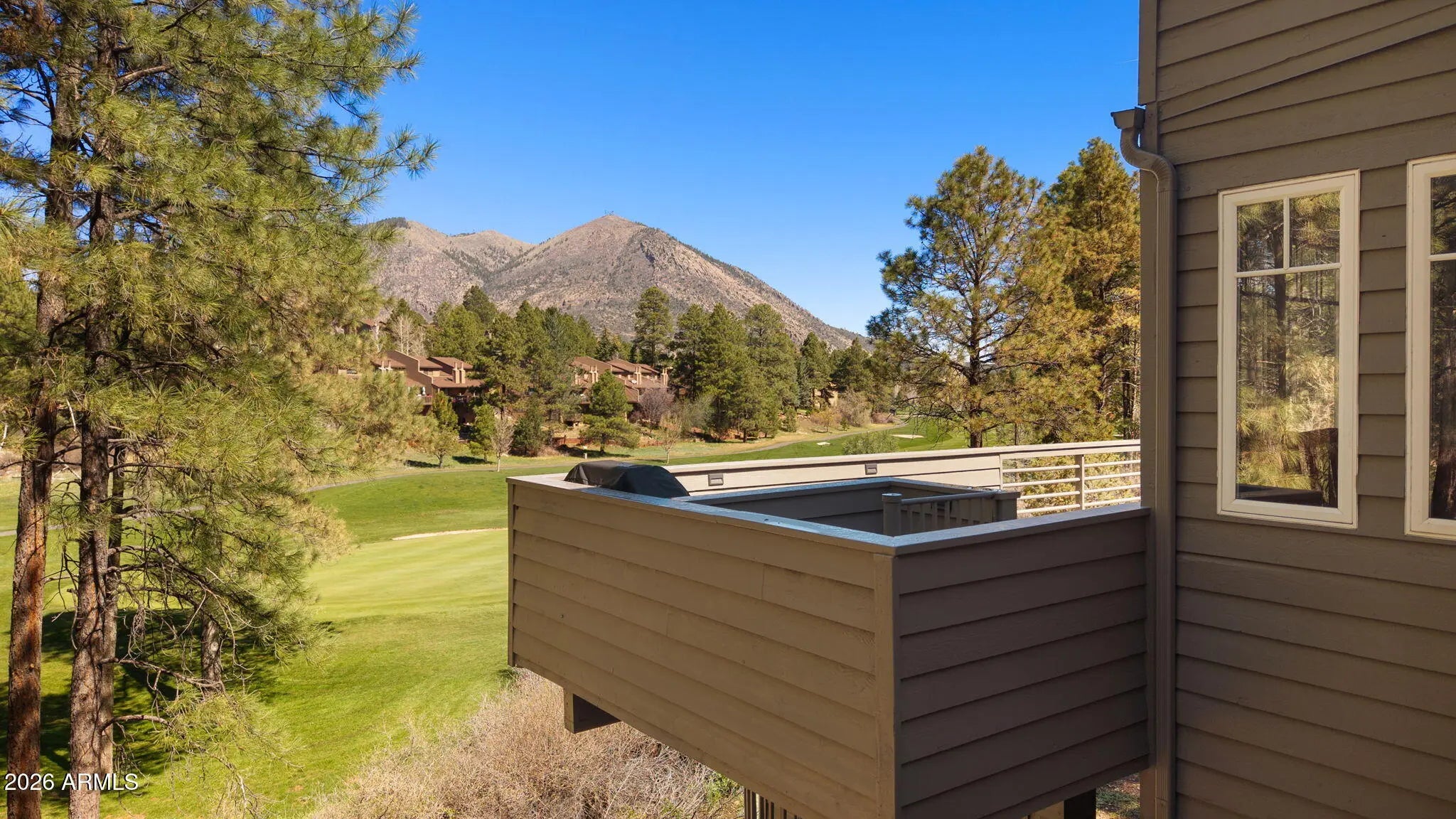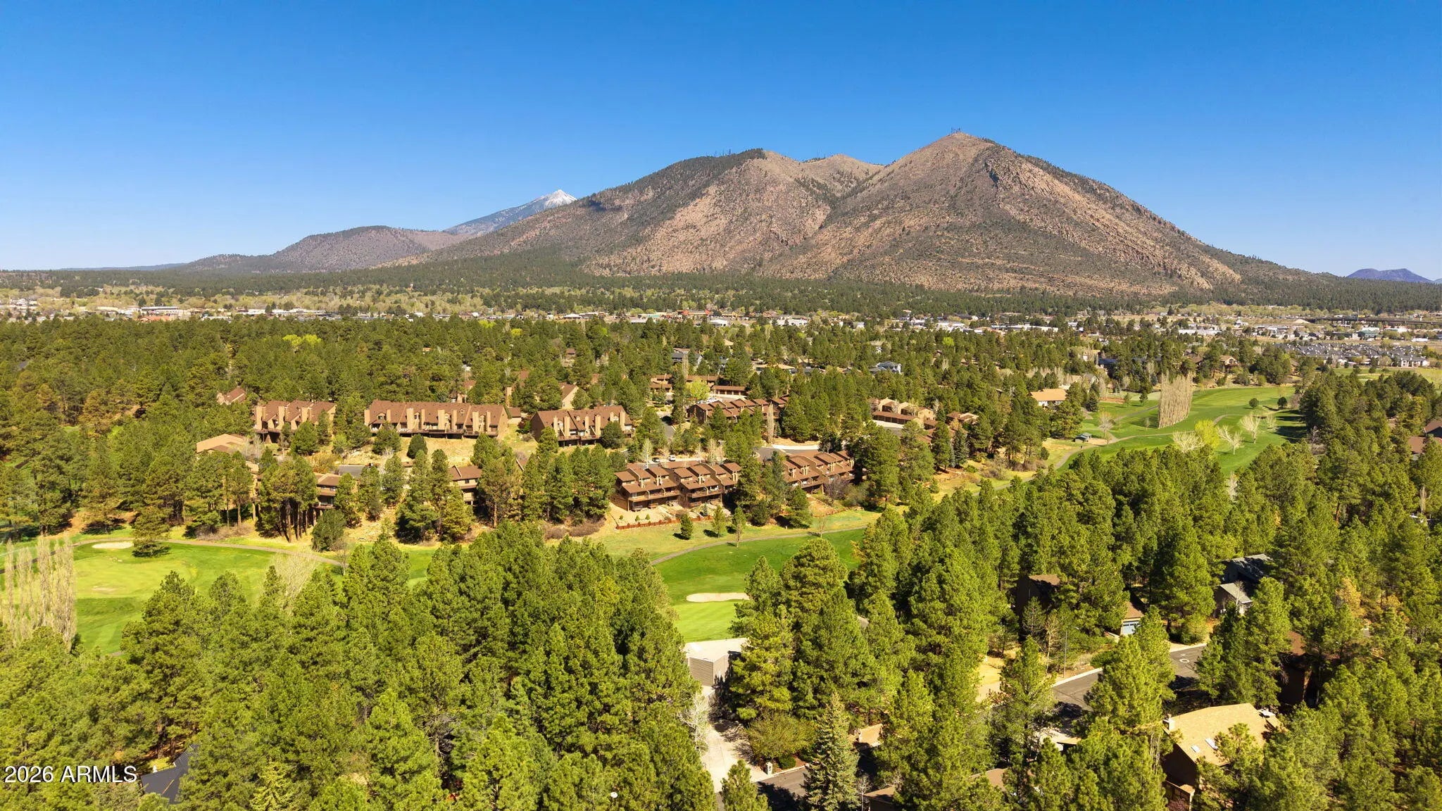 Continental Country Club Golf Course home with a contemporary flair. Located on the 17th hole of Aspen Valley this home has 4 bedrooms and 3.5 baths and spectaular views of Mt Elden and the Peaks. The primary bedroom on top floor with full bath offers the ultimate in privacy and views. The main floor features a gourmet kitchen with a center island that has a gas cooktop, ovens and pantry. The spacious living room has vaulted ceilings, access to main trex deck and large windows to enjoy the views. Large main deck overlooks golf course and is perfect for outdoor entertaining. The downstairs features 3 bedrooms, family room with fireplace and 2 bathrooms. There is also additional downstairs trex deck off family room. AC on top 2 floors plus a mini split. This home has everything you need!