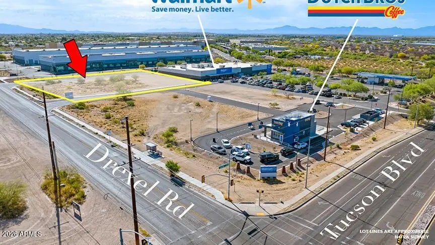 Prime ±1.78-acre commercial pad available in a high-traffic, Walmart Neighborhood Market-anchored shopping center in the heart of Tucson. Strategically located at the southeast corner of Tucson Blvd and Drexel Rd, this site offers exceptional visibility, access, and positioning within a rapidly growing trade area. Zoned PI (Park Industrial), the property allows for a wide range of commercial uses, making it an ideal location for a car wash, multiple quick-service restaurants, or a retail strip center. Surrounded by established national retailers, including Walmart and Dutch Bros, the site benefits from consistent consumer traffic and strong brand synergy. This prime location is situated within the Tucson International Airport corridor, which sees approximately 3.6 million travelers Prime ±1.78-acre commercial pad available in a high-traffic, Walmart Neighborhood Market-anchored shopping center in the heart of Tucson. Strategically located at the southeast corner of Tucson Blvd and Drexel Rd, this site offers exceptional visibility, access, and positioning within a rapidly growing trade area. Zoned PI (Park Industrial), the property allows for a wide range of commercial uses, making it an ideal location for a car wash, multiple quick-service restaurants, or a retail strip center. Surrounded by established national retailers, including Walmart and Dutch Bros, the site benefits from consistent consumer traffic and strong brand synergy. This prime location is situated within the Tucson International Airport corridor, which sees approximately 3.6 million travelers annually, and is supported by a robust daytime population driven by nearby office and industrial employment hubs. Additional highlights include: " Immediate proximity to dense residential neighborhoods and ongoing growth, including 156 new homes currently under construction " Near Sunnyside High School with approximately 2,400 students and 120 staff " ±1,800 workers within one block " Over 16,000 employees within a one-mile radius " Approximately 18,000 residents within one mile All utilities are available, offering a true shovel-ready opportunity in one of Tucson's most active commercial corridors. Ask Broker for a detailed marketing package.