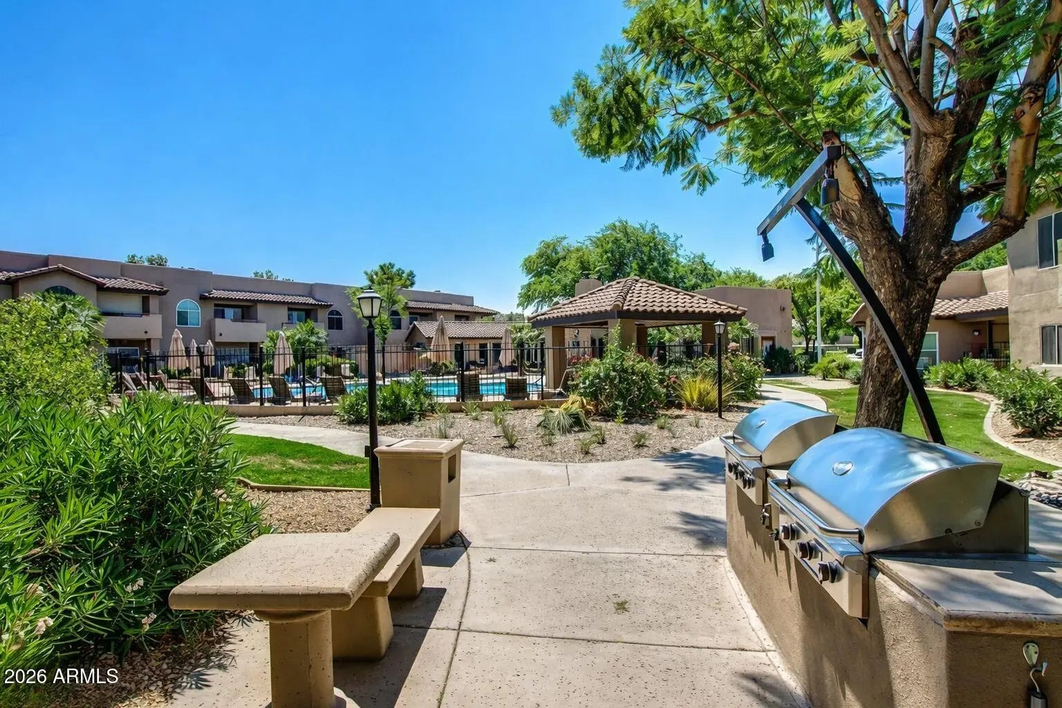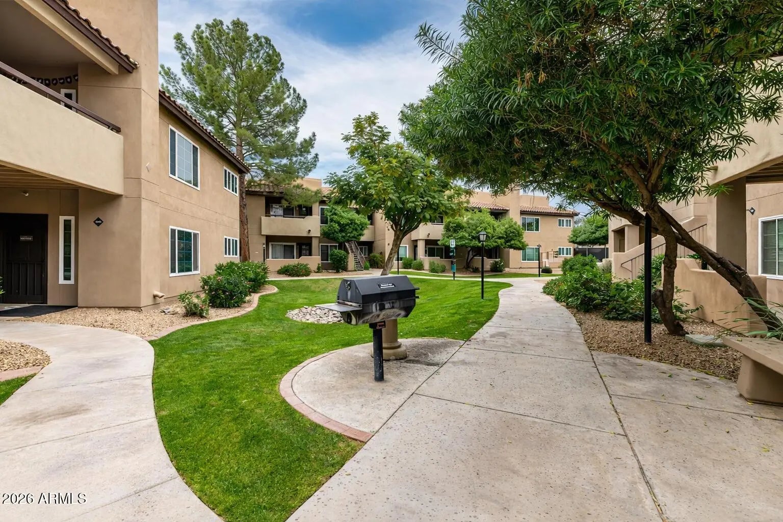 Enjoy privacy and comfort in this well-located Scottsdale condo with open living and dining areas, natural light, and a functional layout for everyday living or entertaining. The kitchen offers ample cabinetry and efficient flow, while the primary bedroom provides a quiet retreat. A private patio extends the living space outdoors. This premium unit is one of only eight in the community with no neighbors above, offering added privacy and reduced noise. Community amenities include a pool, spa, outdoor gathering areas, and maintained grounds, conveniently located near shopping, dining, golf, and local Scottsdale amenities.