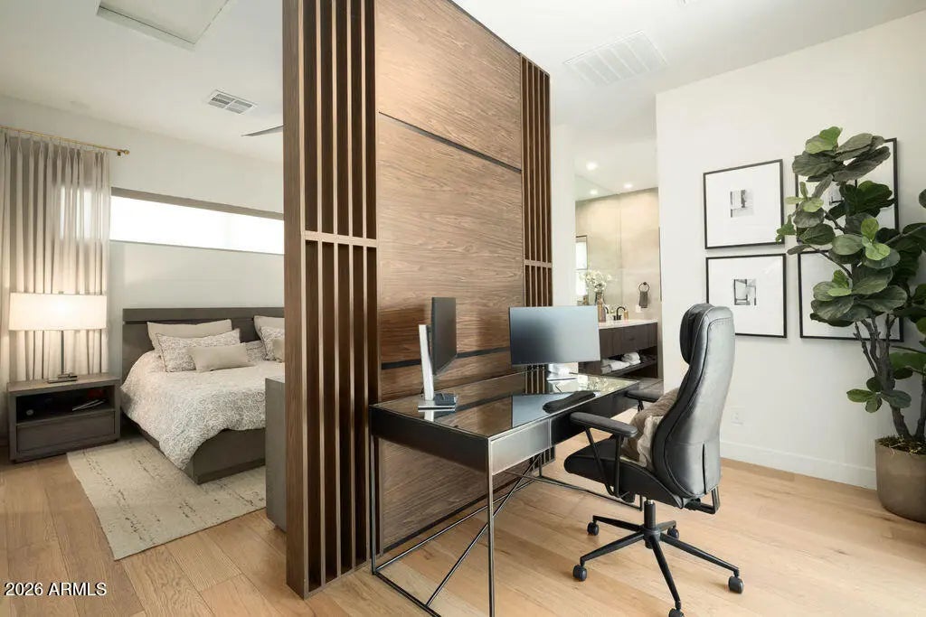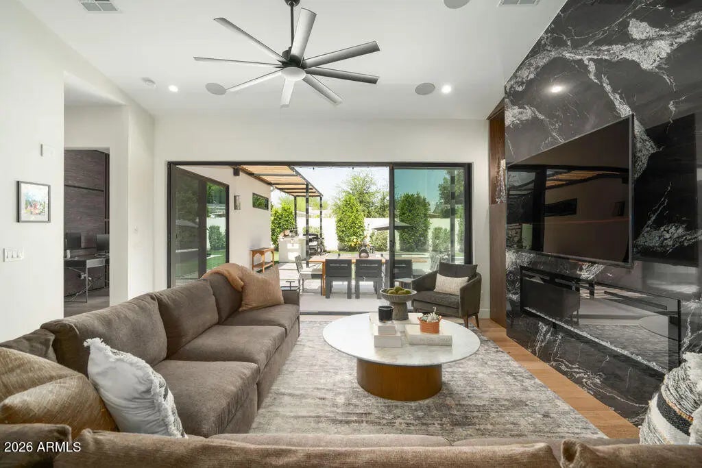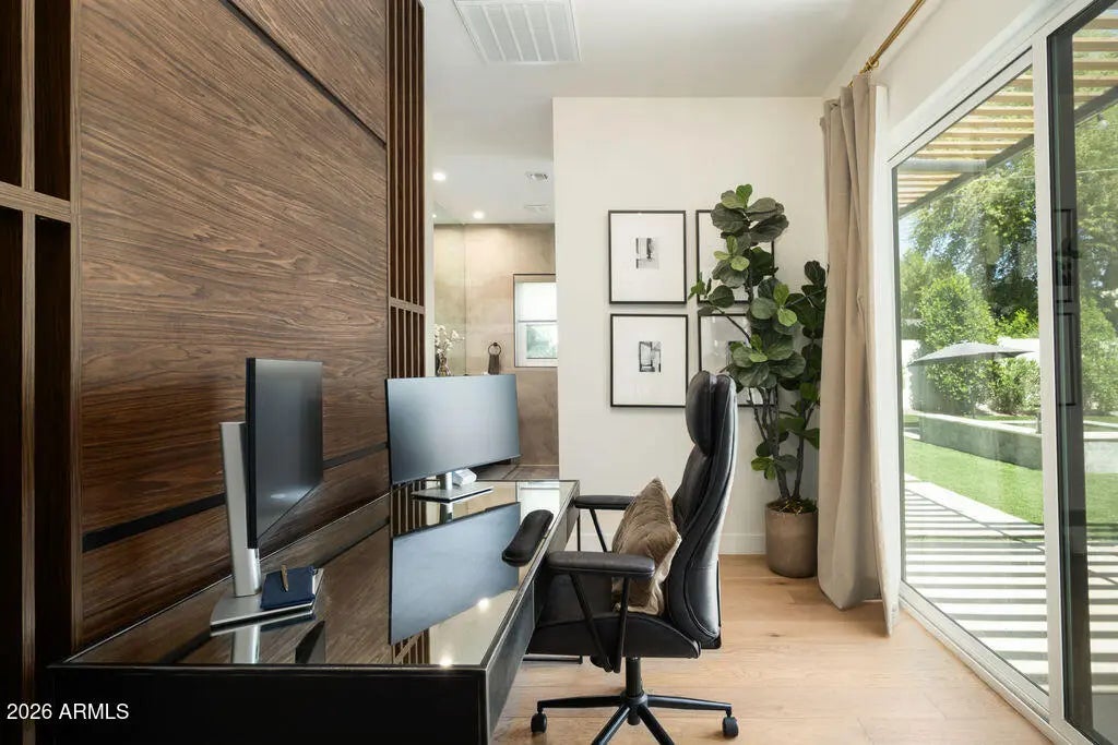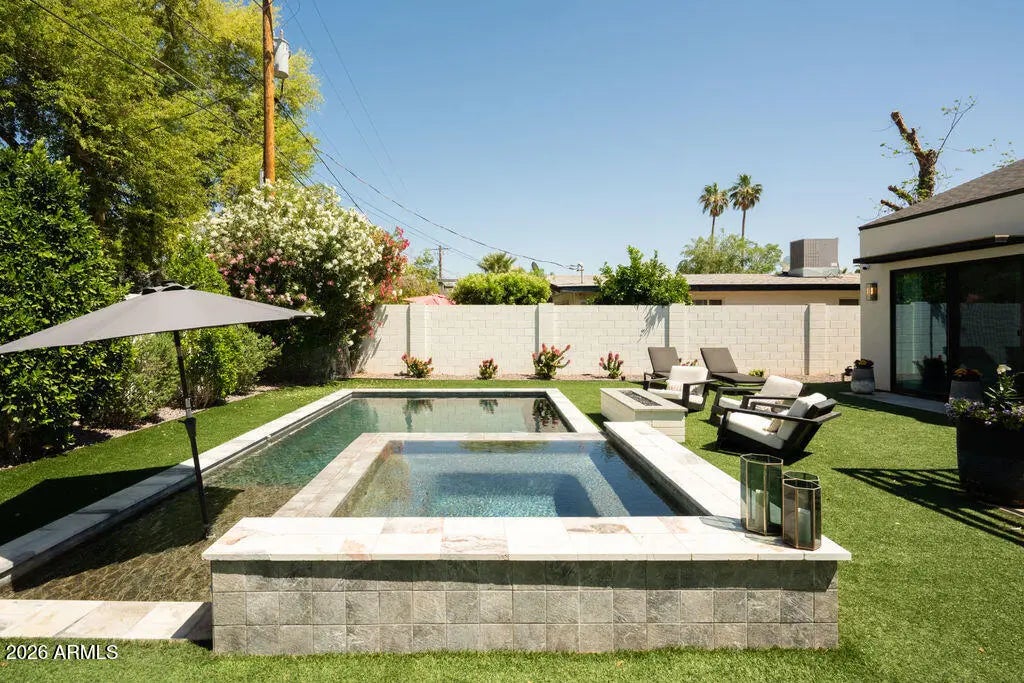 This property is beautifully designed 2022 build home offering modern luxury in an unbeatable location. Featuring 4 bedrooms, 4 bathrooms and dedicated office with an optional second office space/sitting room in the primary suite. This home blends style, comfort and functionality. Inside you will find hardwood floors throughout, high-end finishes, and a bright open-concept layout ideal for everyday living and entertaining. The backyard is a true retreat, complete with sparking pool, hot tub, and fireplace-perfect for enjoying Arizona living year round. Ideally situated in the heart of Arcadia Lite, it is walking distance to La Grande Orange, North Italia, Chelseas Kitchen, Kachina park and much more. This home offers the best of convenience, dining and lifestyle!