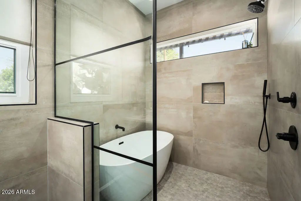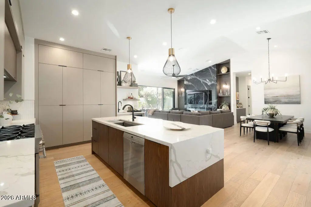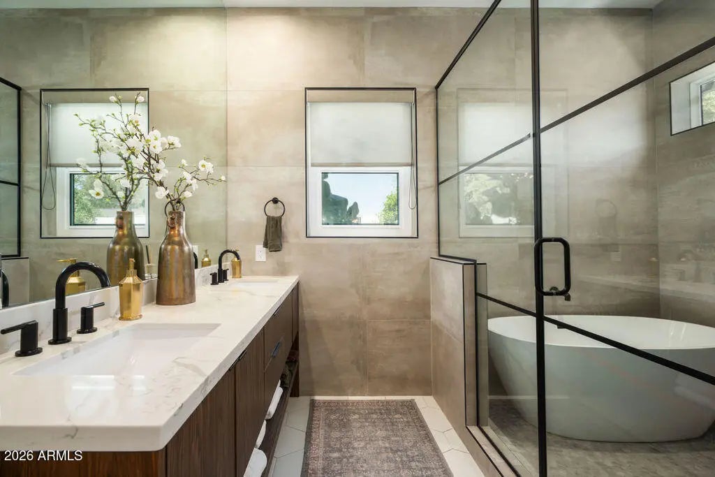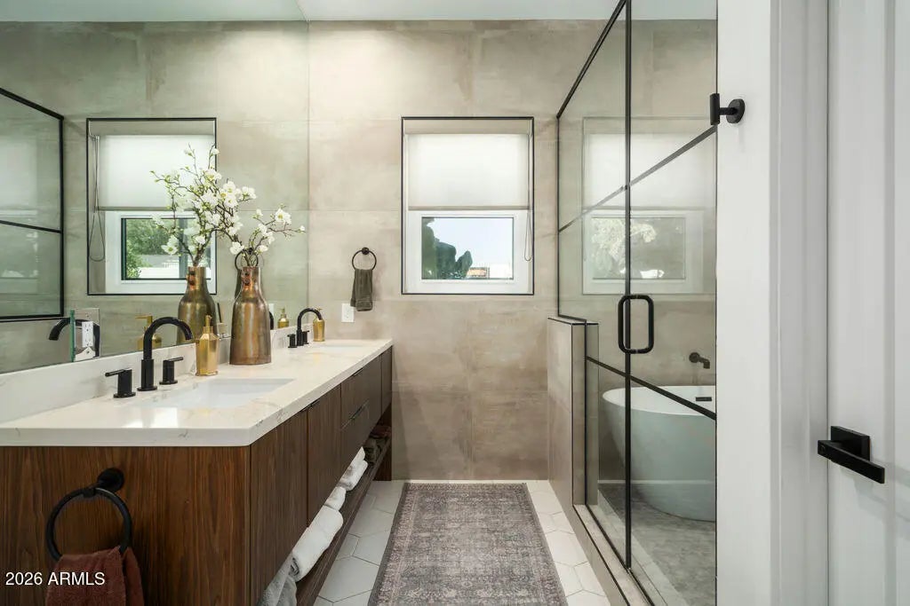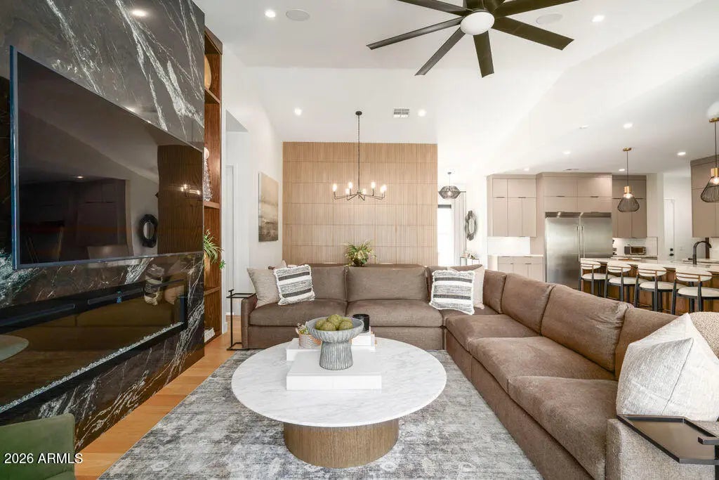 This property is beautifully designed 2022 build home offering modern luxury in an unbeatable location. Featuring 4 bedrooms, 4 bathrooms and dedicated office with an optional second office space/sitting room in the primary suite. This home blends style, comfort and functionality. Inside you will find hardwood floors throughout, high-end finishes, and a bright open-concept layout ideal for everyday living and entertaining. The backyard is a true retreat, complete with sparking pool, hot tub, and fireplace-perfect for enjoying Arizona living year round. Ideally situated in the heart of Arcadia Lite, it is walking distance to La Grande Orange, North Italia, Chelseas Kitchen, Kachina park and much more. This home offers the best of convenience, dining and lifestyle!