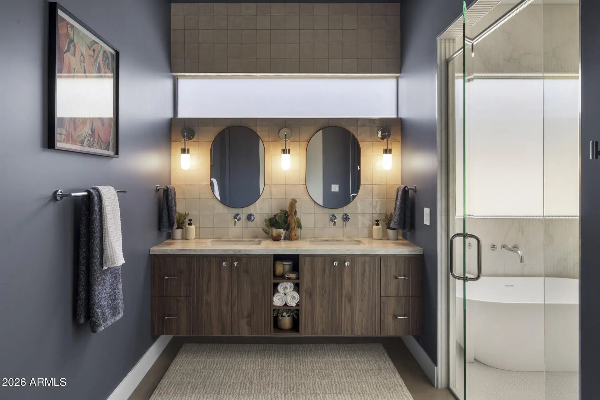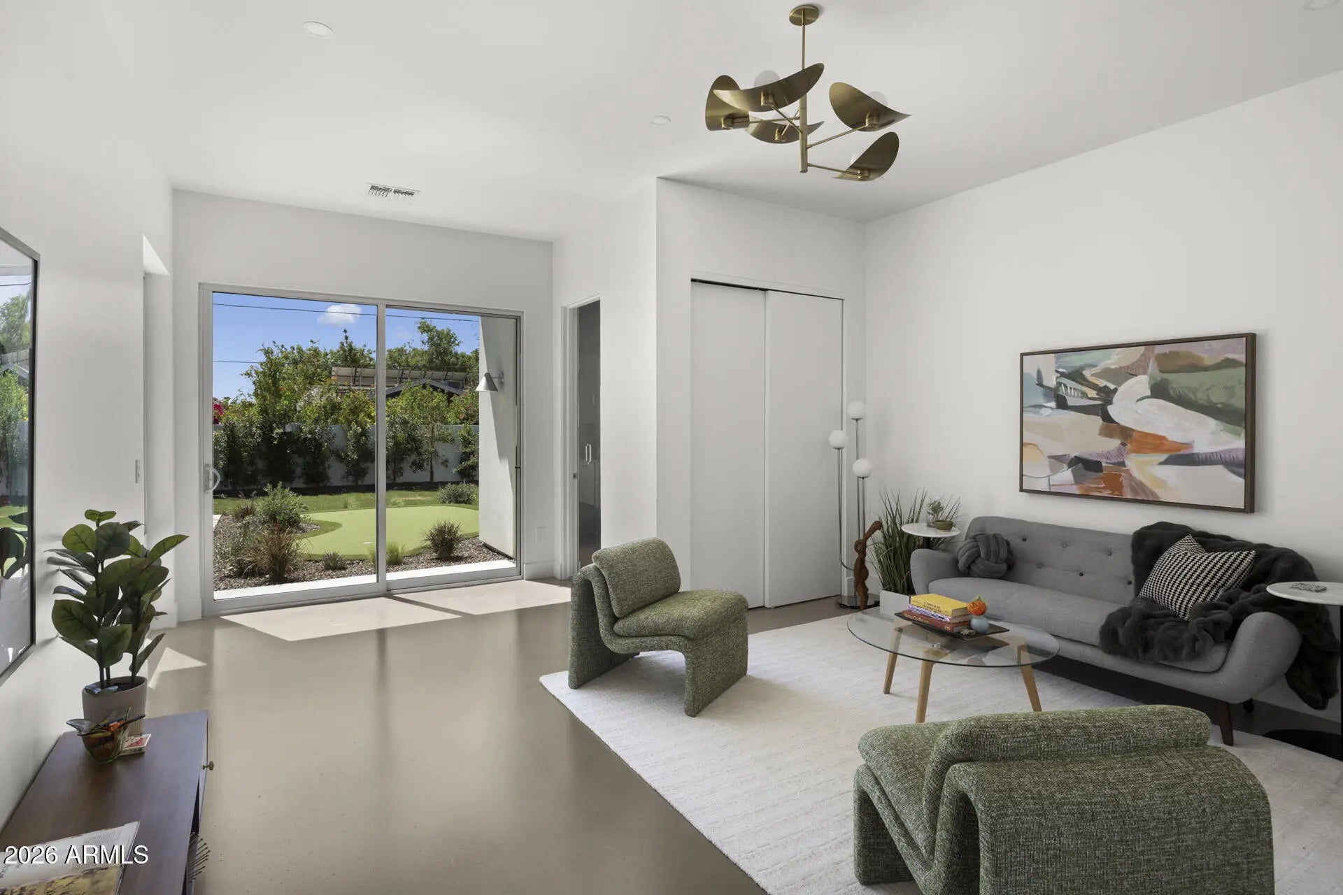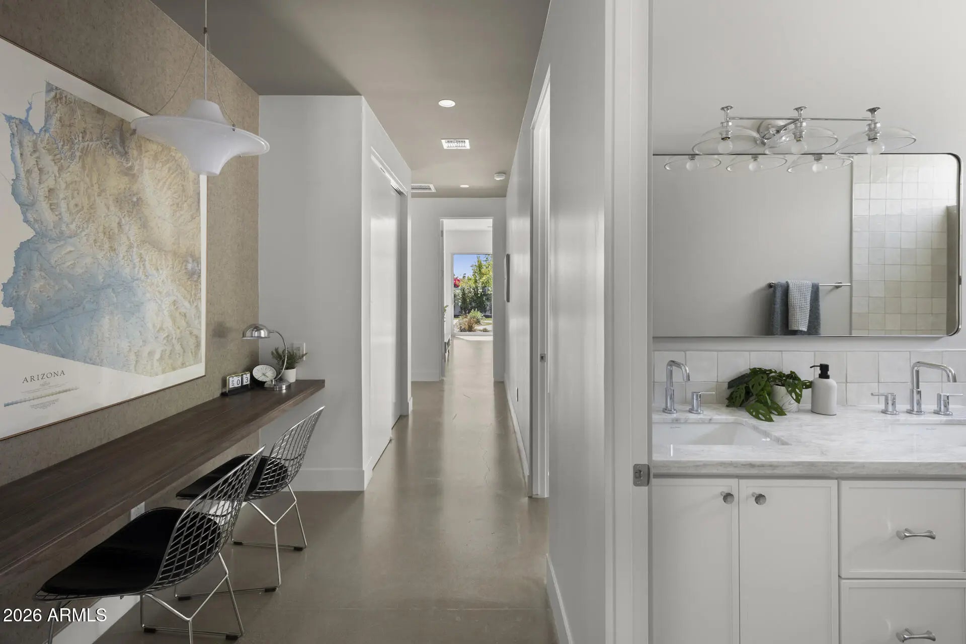 Experience this 5-bedroom, 4.5-bath mid-century inspired new construction by Canal Homes, where thoughtful design meets an exceptional North Central location. With direct access to the historic Murphy Bridle Path and the Canal, and ideally positioned between the 7's within Sunnyslope High School boundaries, the setting is as compelling as the home itself. Set along a private enclave of six newly built residences, the property captures views of Piestewa Peak. Enter this curated palette of polished concrete floors, steel, walnut, breezeblock, limewash, and Taj Mahal quartzite creating a refined yet tactile living experience. With each material intentionally selected for both beauty and permanence this home meets form & function! A dramatic glass-enclosed 3-car tandem garage, expansive window package, and a handcrafted statement fireplace anchor the home's architectural identity, while spray foam insulation, TRANE HVAC, N/S exposure with expansive patios and lush landscaping enhance both comfort and efficiency. This is a rare opportunity to enjoy elevated design and modern livability in one of North Central's most coveted settings.