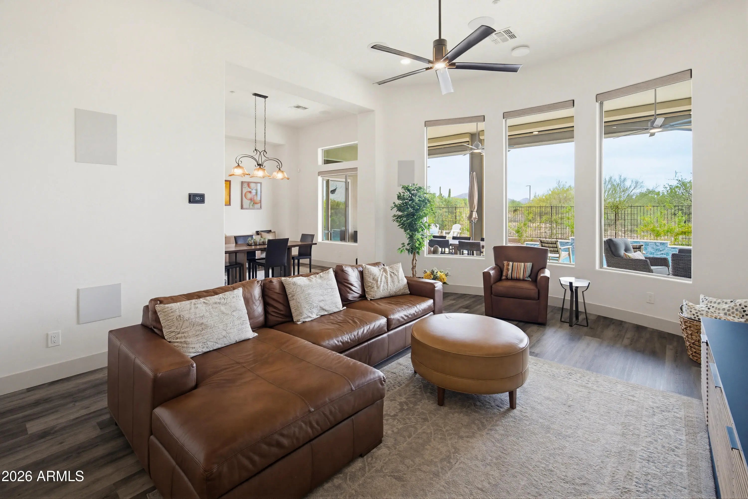 Fully remodeled Anthem Country Club home! NEW roof, owned solar, NEW A/Cs, NEW pool, fully insulated 4-car garage & chef's kitchen which includes Wolf appliances, Sub-Zero refrigerator, 6-burner gas range, convection/steam oven, beverage center, touchless faucets, Cove dishwasher, new cabinetry, granite countertops & custom lighting. Smart home features Control4 automation, Lutron lighting, WiFi thermostats, whole-home audio/video, security system & surround sound theater. Owned Tesla solar (19.2kW) w/ 2 Powerwalls and EV charging. Backyard offers a new Pebble Sheen pool with Baja shelf, fountain, lighting, BBQ & artificial turf. Tankless water heater, smart irrigation, spa-style primary bath, wash lot & more. Rare opportunity to own a truly turnkey, extensively upgraded home in Anthem CC Experience a fully remodeled home in the guard-gated Anthem Country Club where nearly every surface, system, and finish has been thoughtfully upgraded. At the heart of the home, the gourmet kitchen has been completely redesigned with new cabinetry and top-tier appliances including a Wolf 6-burner gas range, convection and steam ovens, Sub-Zero refrigerator, Cove dishwasher, beverage center, and dual sinks including a prep sink. Touchless faucets, under and over cabinet lighting, reverse osmosis system, and refined finishes complete a space that is both functional and striking. The home is equipped with a full Control4 smart home system, offering seamless automation of lighting, audio, video, and more. Enjoy whole-home audio, a dedicated theater with Dolby Atmos 11-speaker surround sound, Lutron smart lighting with touch-dim controls, and a professionally installed security system with cameras. A robust wireless network with multiple access points ensures strong connectivity throughout. Energy efficiency and infrastructure have been prioritized with owned Tesla solar (19.2kW) and two Powerwalls, providing significant energy savings and backup capability. Major system updates include two Trane A/C units (2022), a new tankless water heater (2025), water softener system, and a new roof (2024), offering peace of mind for years to come. The interior showcases new luxury vinyl flooring throughout, fresh interior and exterior paint (2022), and extensive lighting enhancements including over 36 added recessed lights. New cabinetry has been added in the kitchen, primary bathroom, and laundry room, along with upgraded window coverings including Hunter Douglas remote-controlled blinds in key living spaces. The primary suite offers a true retreat with a spa-inspired bathroom featuring a fully redesigned wet room with dual shower heads, soaking tub, and high-end finishes throughout. Guest bathrooms have also been completely remodeled with updated fixtures and modern design elements. Step outside to a resort-style backyard designed for Arizona living. The newly constructed Pebble Sheen pool features a Baja shelf, water feature, and multi-color lighting, all controlled remotely. A ramada with built-in BBQ and outdoor kitchen creates the perfect space for entertaining, while artificial turf, landscape lighting, outdoor fans, and WiFi-enabled irrigation complete a low-maintenance yet high-impact outdoor environment. The pool is also plumbed and permitted for a future gas heater. The 4-car garage is equally impressive, fully insulated with epoxy floors, extensive cabinetry, and two mini-split A/C systems for climate control. Additional upgrades include multiple 240V outlets, EV charging, and a jackshaft garage door opener maximizing ceiling storage space. Located within Anthem Country Club, residents enjoy private clubhouses with dining and social events, fitness centers, resort-style pools, tennis, pickleball, and miles of scenic trails--all within a 24/7 guard-gated community. In addition, homeowners have access to Anthem's master-planned amenities including a 63-acre park, aquatic center, community center, sports courts, and year-round events and have the option to membership where you'll enjoy two championship golf courses. This is a rare opportunity to own a truly turnkey, extensively upgraded home in one of North Phoenix's most sought-after communities, the Anthem Country Club.