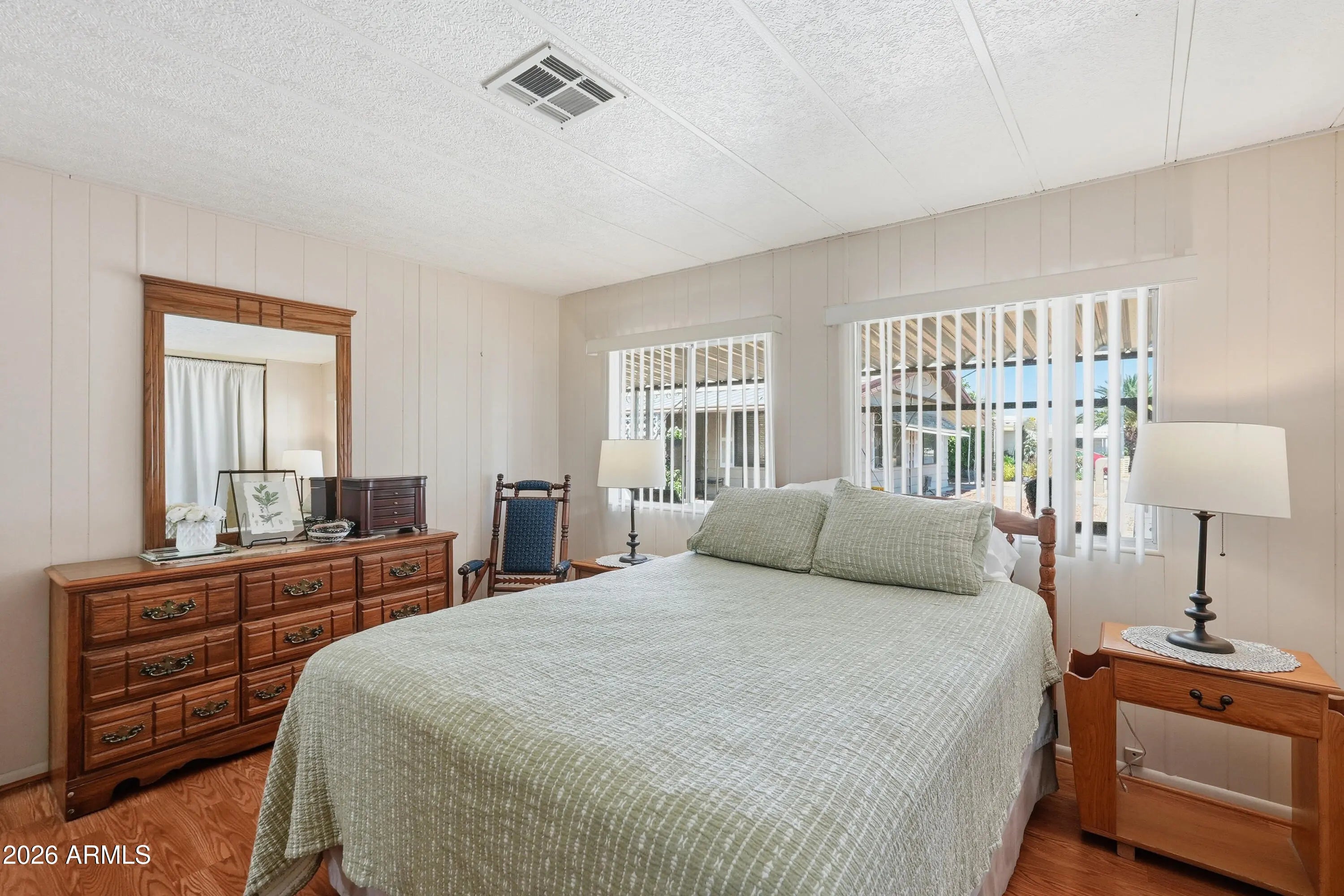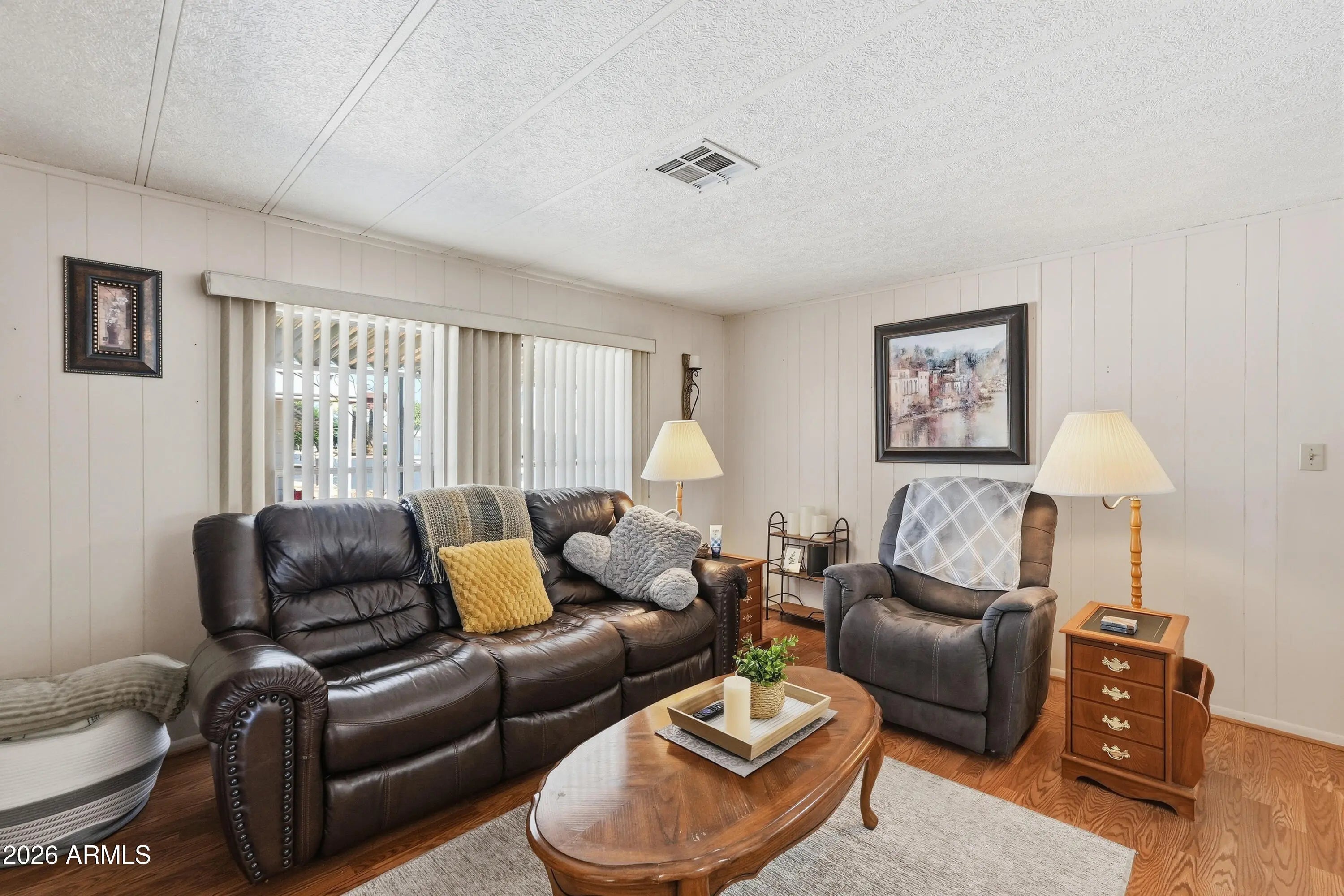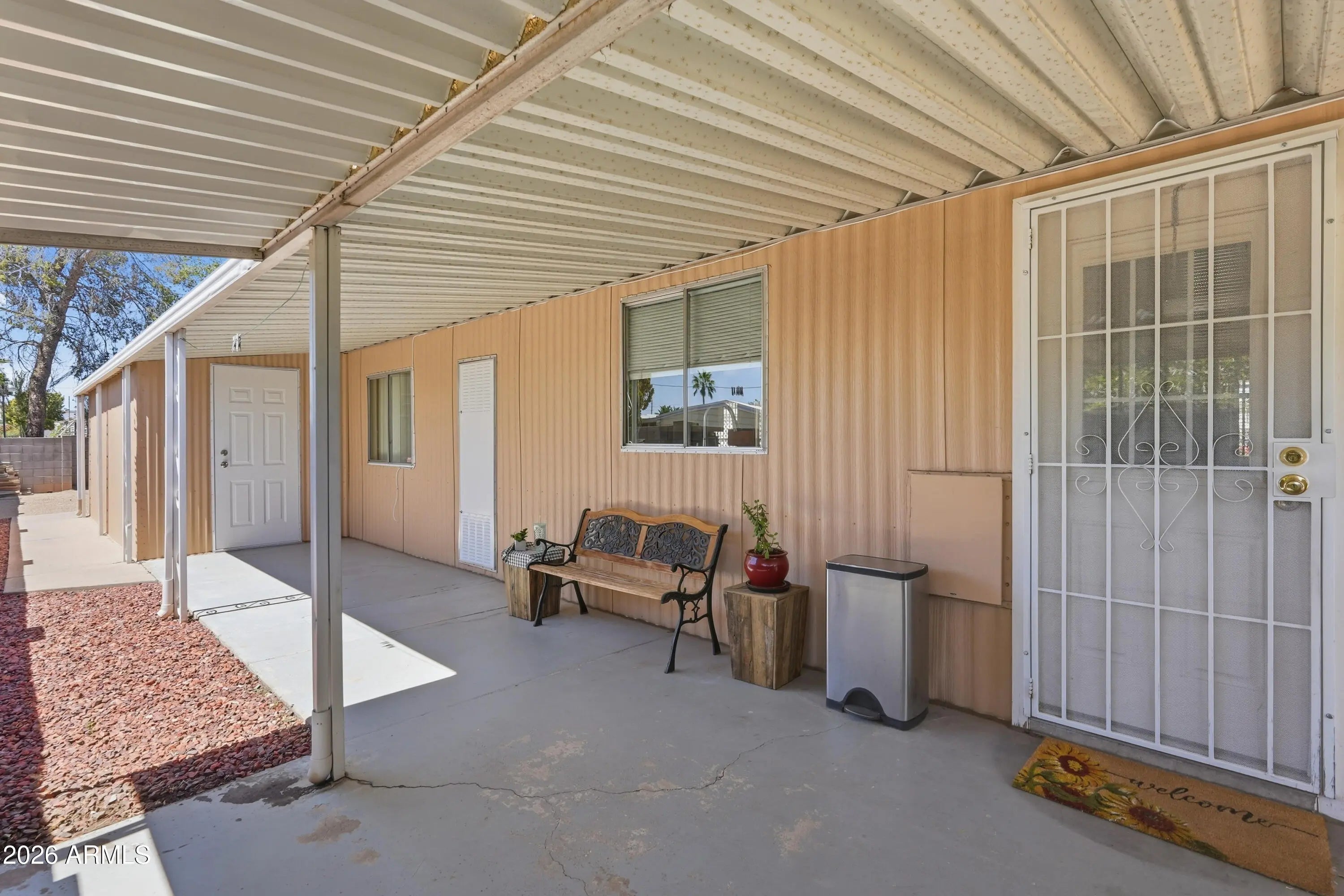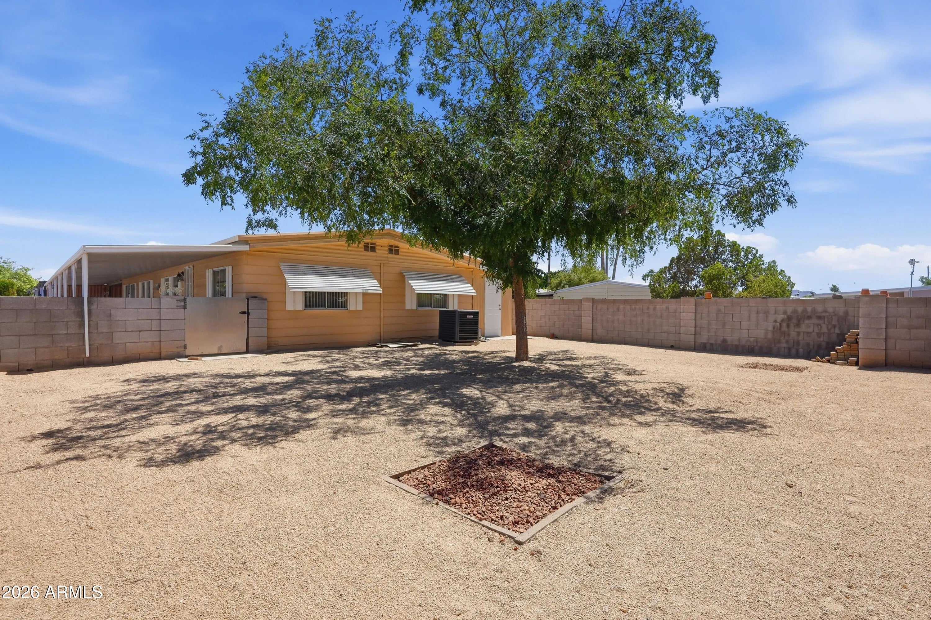 Welcome to this warm and inviting 3-bedroom, 2-bathroom home offering 1,440 sq ft of comfortable living in the desirable Palm Lakes Village community! Step inside to a bright, open living area featuring beautiful wood-look flooring, neutral tones, and plenty of natural light--perfect for relaxing or entertaining. The spacious kitchen offers ample cabinetry, a convenient breakfast bar, and a cozy dining nook overlooking the yard. Built in 1980 and situated on a large, fully fenced owned lot, this home provides both privacy and flexibility. Enjoy the rare 3-car carport and stay comfortable year-round with a brand-new air conditioning system installed in 2025. Ideally located near shopping, dining, and with easy freeway access and only 20 minutes from the airport, this home combines charm, comfort, and convenience!