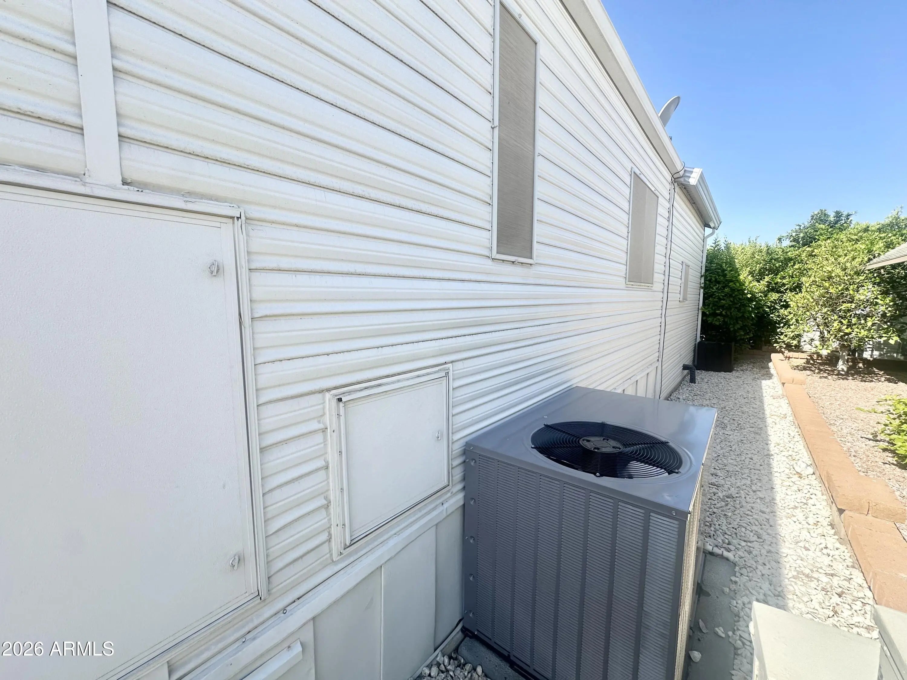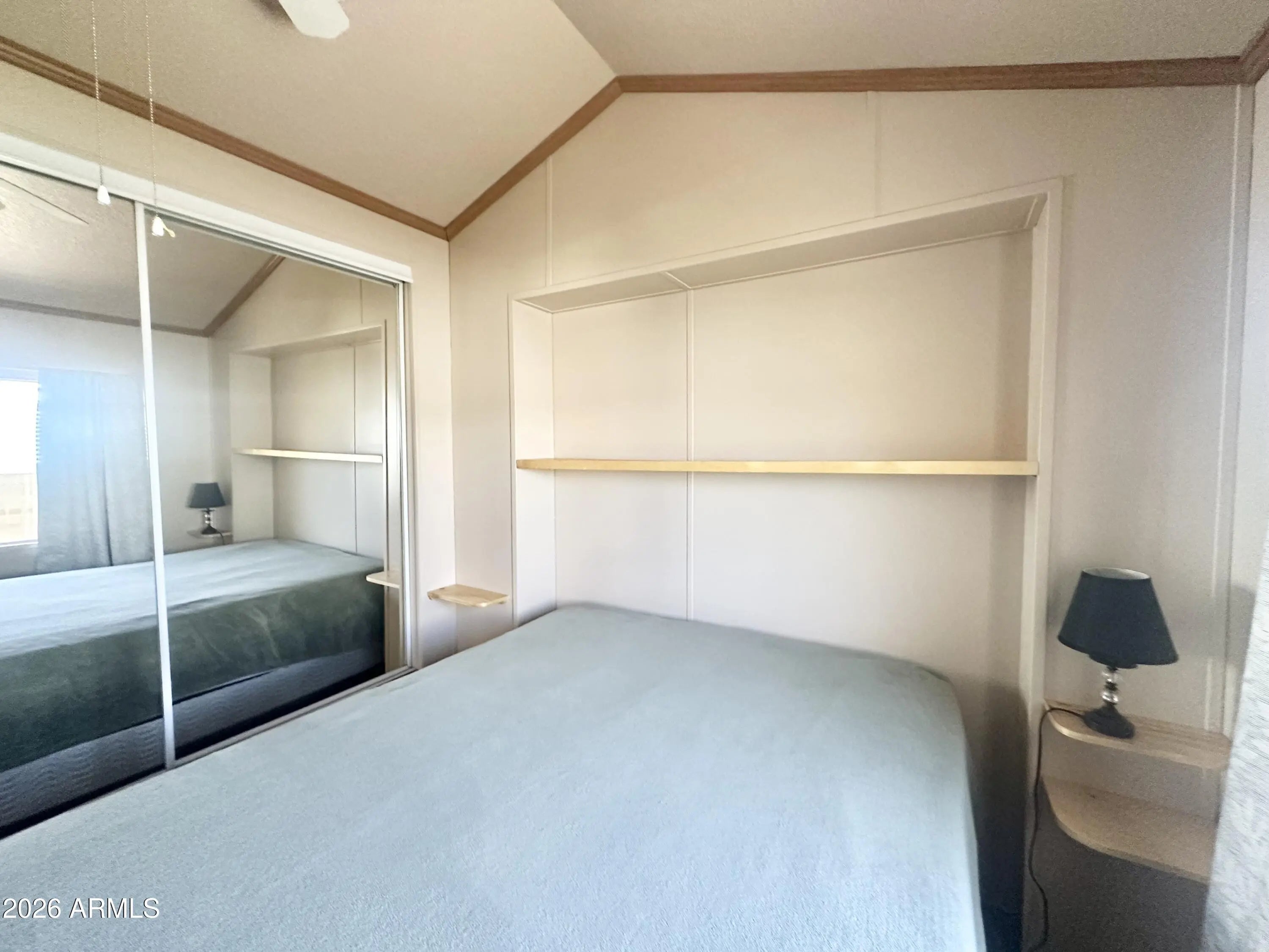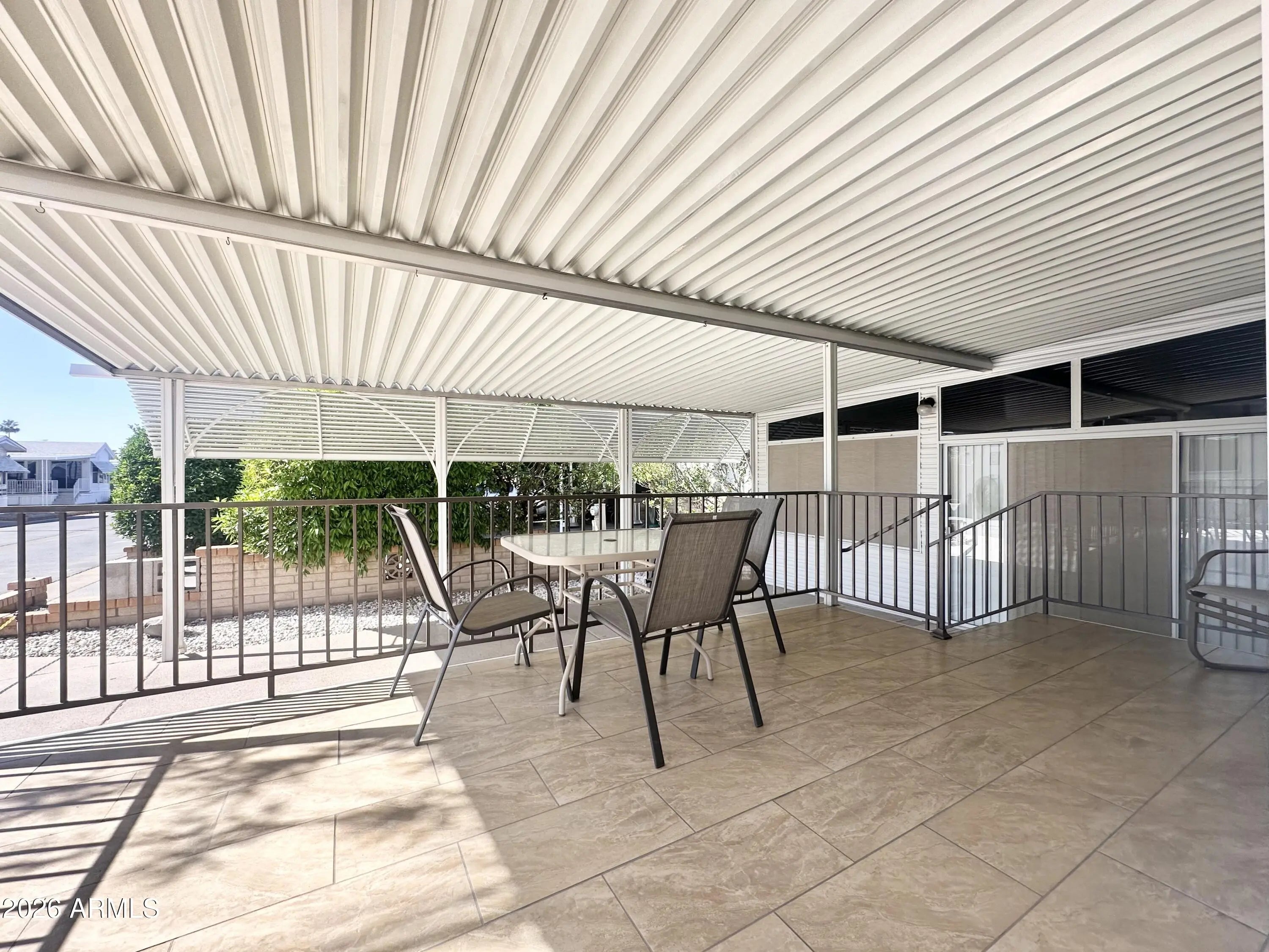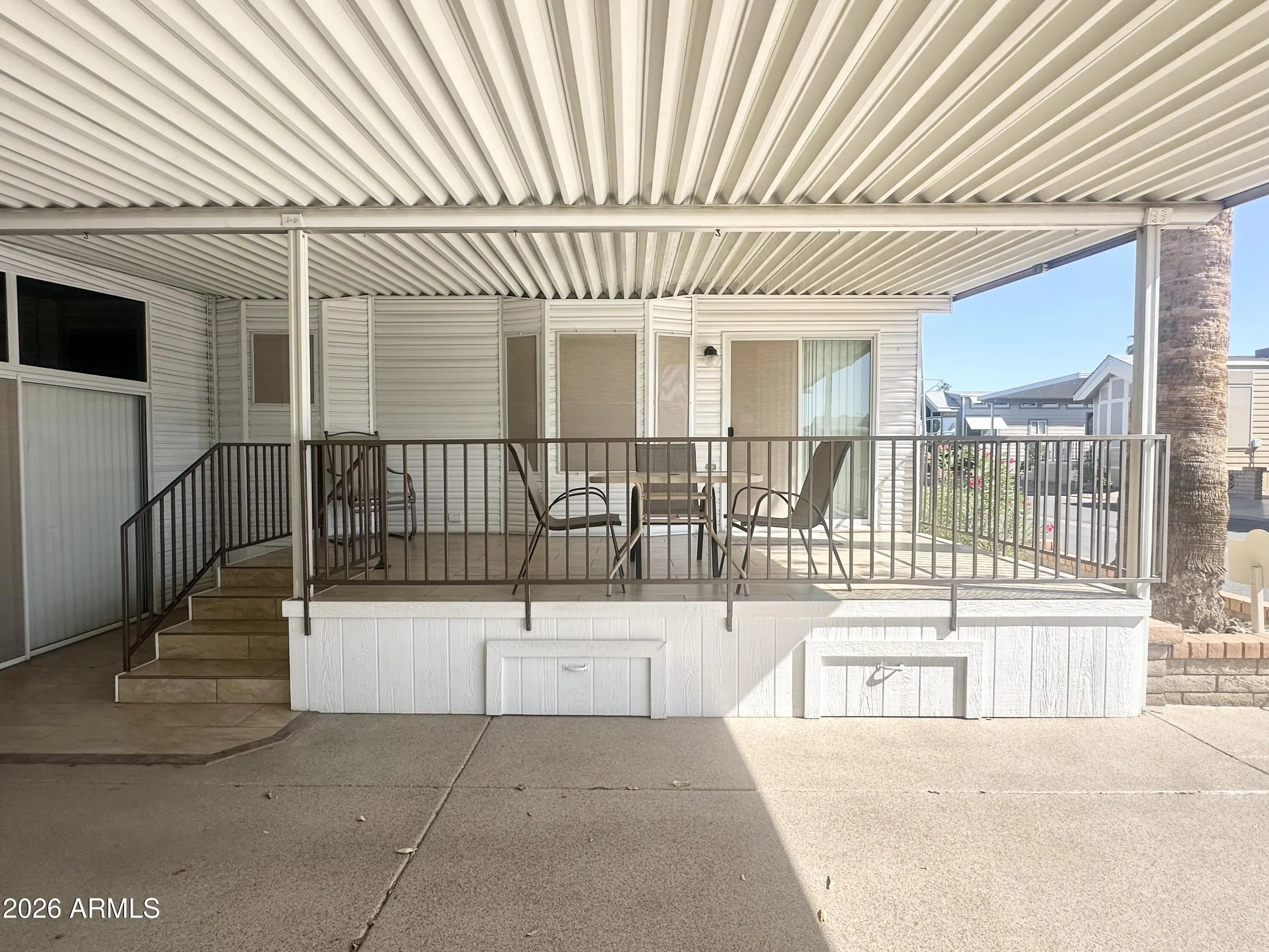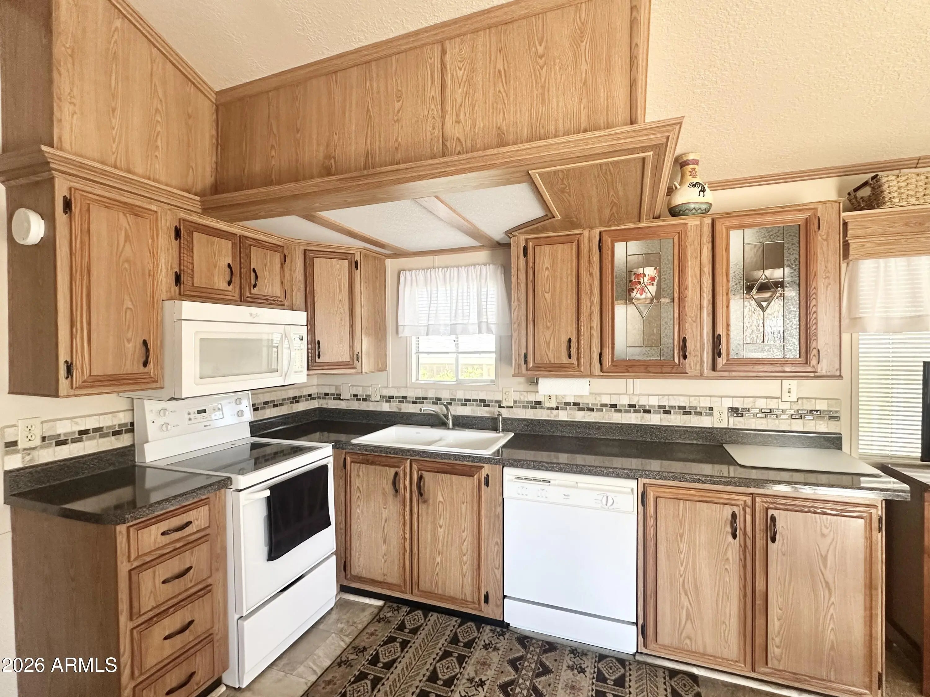 Spacious Home on an Oversized Lot in Greenfield Village! Situated on a large, extended lot, this one-of-a-kind home offers exceptional indoor and outdoor living space, perfect for entertaining, relaxing, and enjoying the Arizona lifestyle. Step onto the huge front deck, ideal for morning coffee or evening gatherings, and into the home's open-concept layout featuring vaulted ceilings and a bright dining area. The kitchen is well-appointed with a flat-top range, microwave, dishwasher, garbage disposal, and a large porcelain sink, making it both functional and inviting. Down the hallway, you'll find a built-in desk with storage, perfect for a home office or hobby space. The spacious bathroom includes a newer walk-in shower and convenient pocket door. The primary bedroom offers a comfortable retreat with a large closet, built-in shelving, and ample storage. One of the standout features is the impressive 20x20 Arizona room, complete with vaulted ceilings, oversized windows, and transom windows that fill the space with natural light. A large patio door provides seamless access to the carport area, while an additional sliding glass door leads to the covered back patio with fruit trees--a perfect setting for outdoor entertaining. Just off the Arizona room, you'll find a super-sized laundry room with a three-quarter bath, walk-in shower, extensive cabinetry, oversized closet, extra refrigerator/freezer, second water heater, and even loft storage above--offering incredible versatility and convenience. Additional highlights include a newer AC unit, sunscreens, a recently coated roof and new PEX plumbing in 2024. This home truly stands out with its generous space, thoughtful layout, and entertaining potential--all located in the highly desirable 55 + Greenfield Village community. Own the land own the fun!