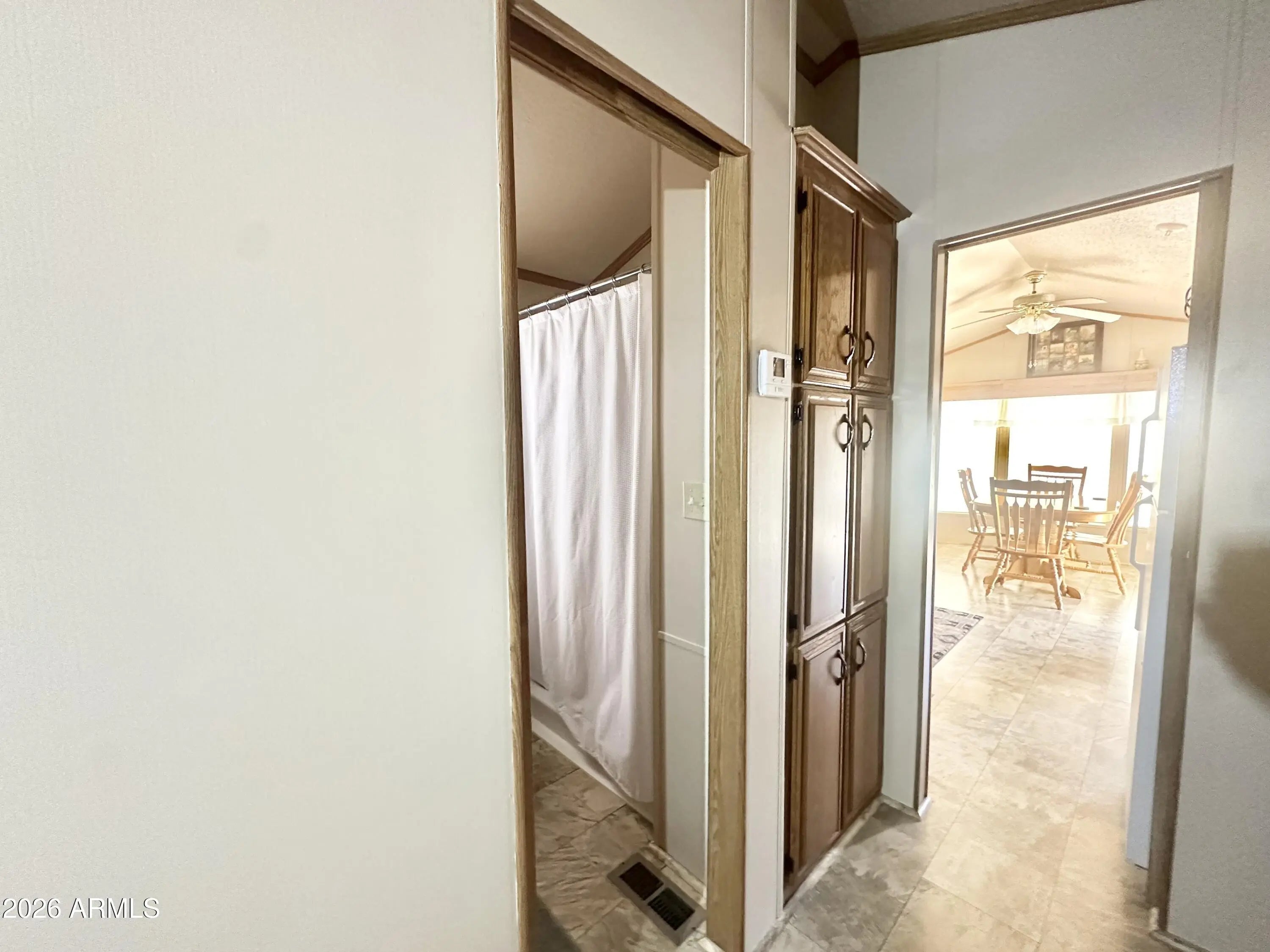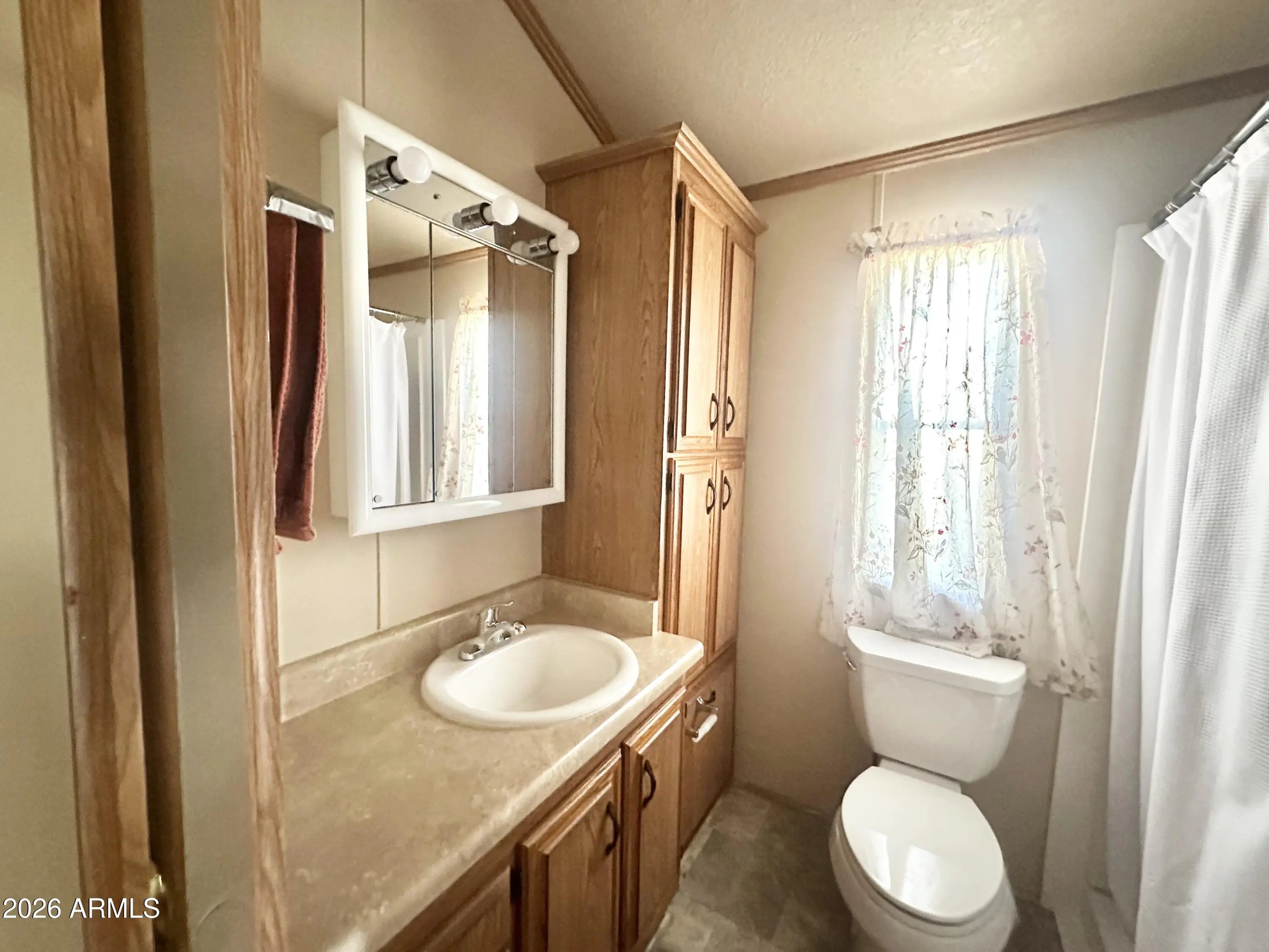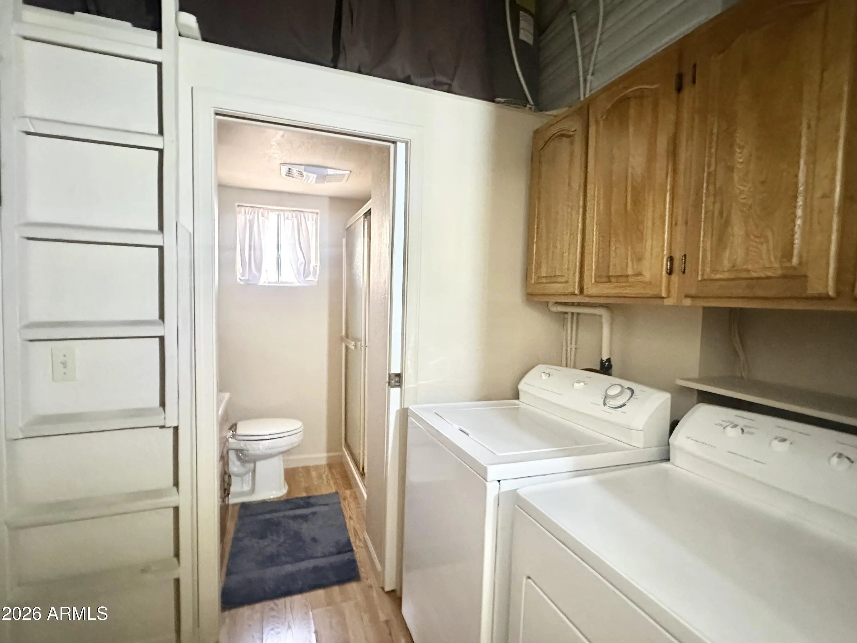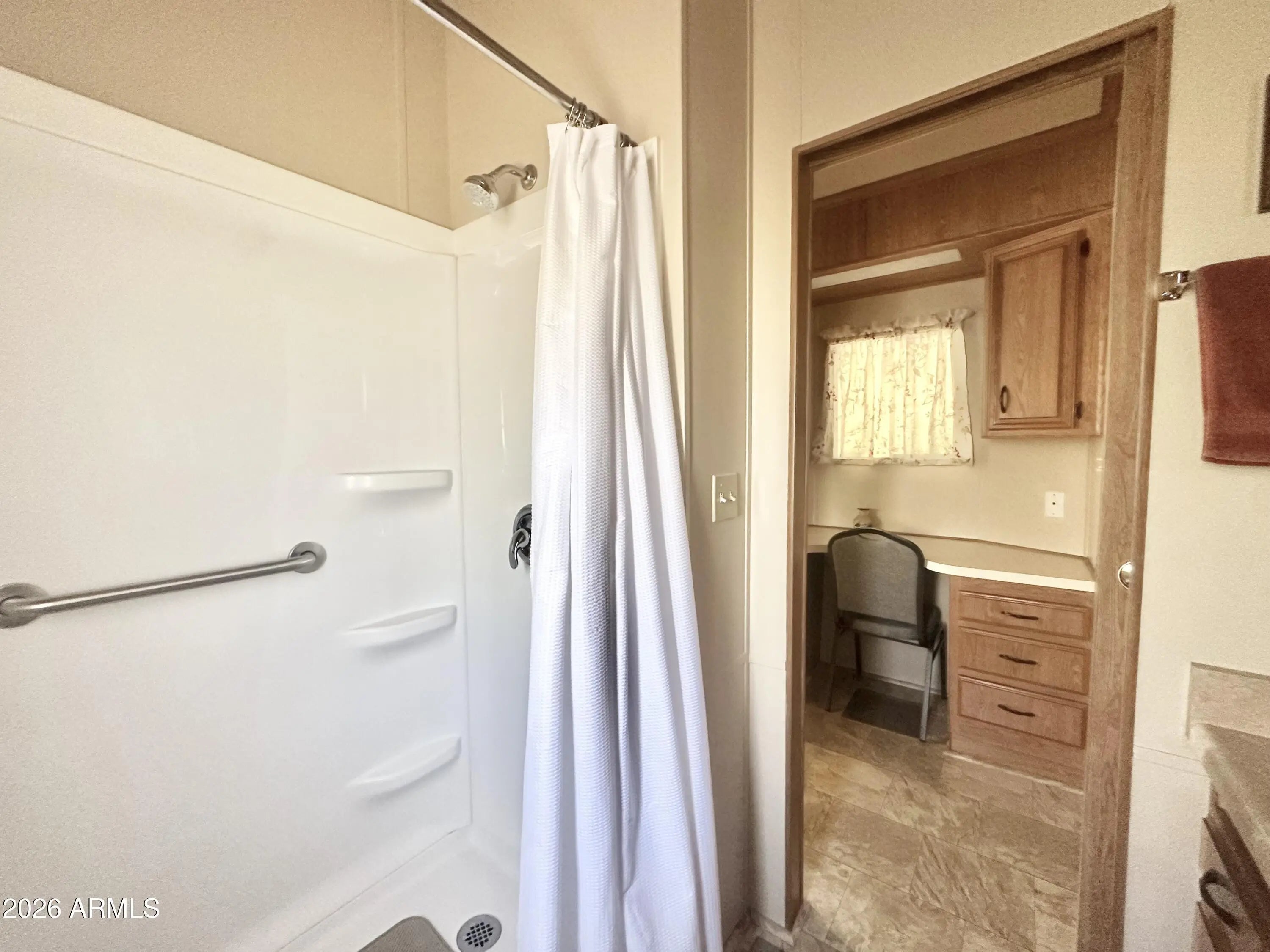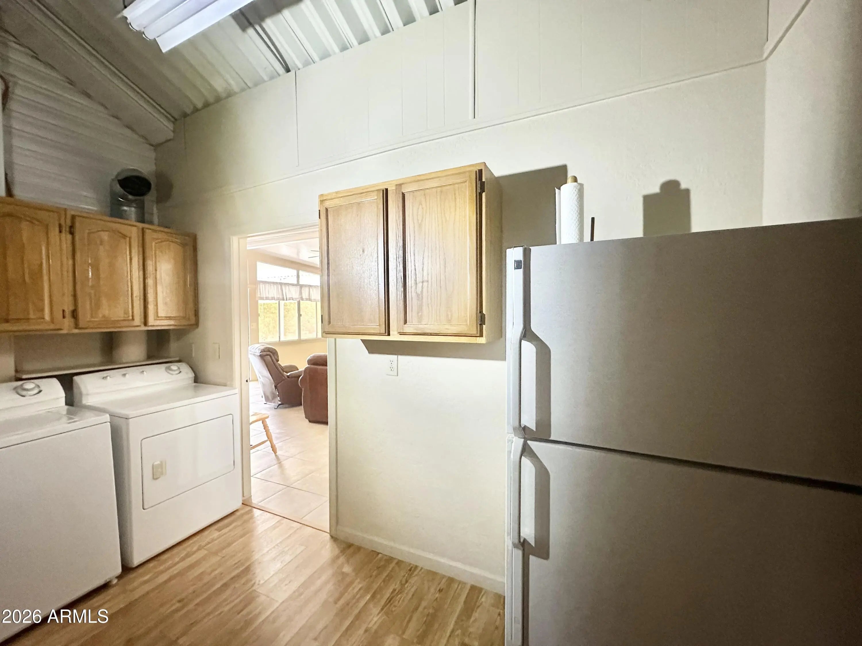 Spacious Home on an Oversized Lot in Greenfield Village! Situated on a large, extended lot, this one-of-a-kind home offers exceptional indoor and outdoor living space, perfect for entertaining, relaxing, and enjoying the Arizona lifestyle. Step onto the huge front deck, ideal for morning coffee or evening gatherings, and into the home's open-concept layout featuring vaulted ceilings and a bright dining area. The kitchen is well-appointed with a flat-top range, microwave, dishwasher, garbage disposal, and a large porcelain sink, making it both functional and inviting. Down the hallway, you'll find a built-in desk with storage, perfect for a home office or hobby space. The spacious bathroom includes a newer walk-in shower and convenient pocket door. The primary bedroom offers a comfortable retreat with a large closet, built-in shelving, and ample storage. One of the standout features is the impressive 20x20 Arizona room, complete with vaulted ceilings, oversized windows, and transom windows that fill the space with natural light. A large patio door provides seamless access to the carport area, while an additional sliding glass door leads to the covered back patio with fruit trees--a perfect setting for outdoor entertaining. Just off the Arizona room, you'll find a super-sized laundry room with a three-quarter bath, walk-in shower, extensive cabinetry, oversized closet, extra refrigerator/freezer, second water heater, and even loft storage above--offering incredible versatility and convenience. Additional highlights include a newer AC unit, sunscreens, a recently coated roof and new PEX plumbing in 2024. This home truly stands out with its generous space, thoughtful layout, and entertaining potential--all located in the highly desirable 55 + Greenfield Village community. Own the land own the fun!