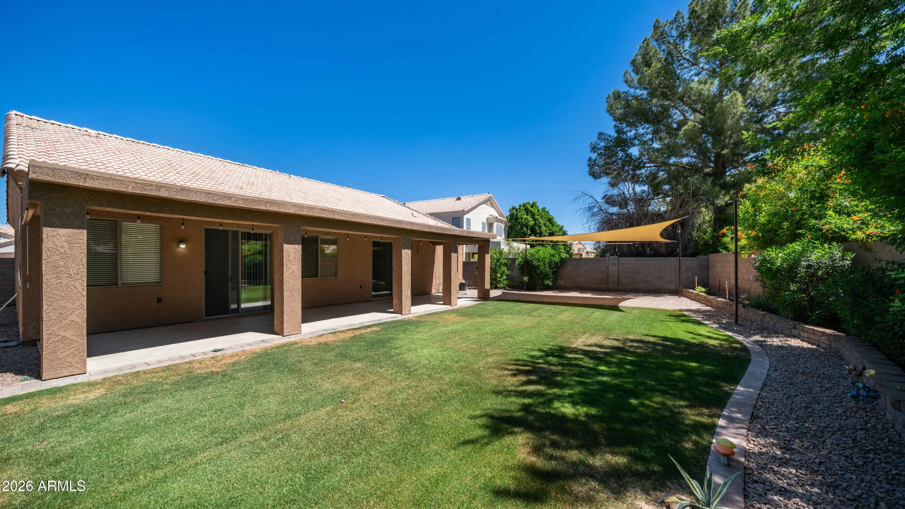 Amazing Single level Home With Three Bedrooms And A Large Den Office. Large Formal Living Room And Dining Area With Double Door Entry To The Den. Family Room Is Open To The Kitchen With Island And Breakfast Nook. Granite Counters Stainless Steel Refrigerator And Gas Range Oven. Ten Foot Ceilings Through Out Home. Wood Like Plank Tile Flooring And Brand New Carpet In The Bedrooms. The Ten Foot Ceilings And Eight Foot Exterior Doors Bring A Custom And Spacious Feel. The Primary Bedroom Has A Very Spacious Bathroom Suite With Walk In Closet, Double Sinks And A Huge Walk In Shower. The Interior Has Just Been Painted. The Rear Yard Features An Amazing Covered Patio With Ceramic Tile With Additional Paver Patio, Huge Turf Area And Lush Foliage Borders. New Gas Water Heater And Newer HVAC Unit This Home Is Located Just Two Miles From Chandler Fashion Center Mall With Class A Shopping And Top Restaurants And Walking Distance To Intel. This Community Is Nestled In A Wonderful Community With Top Schools, A Walking Path Along The Green Belts And Parks.