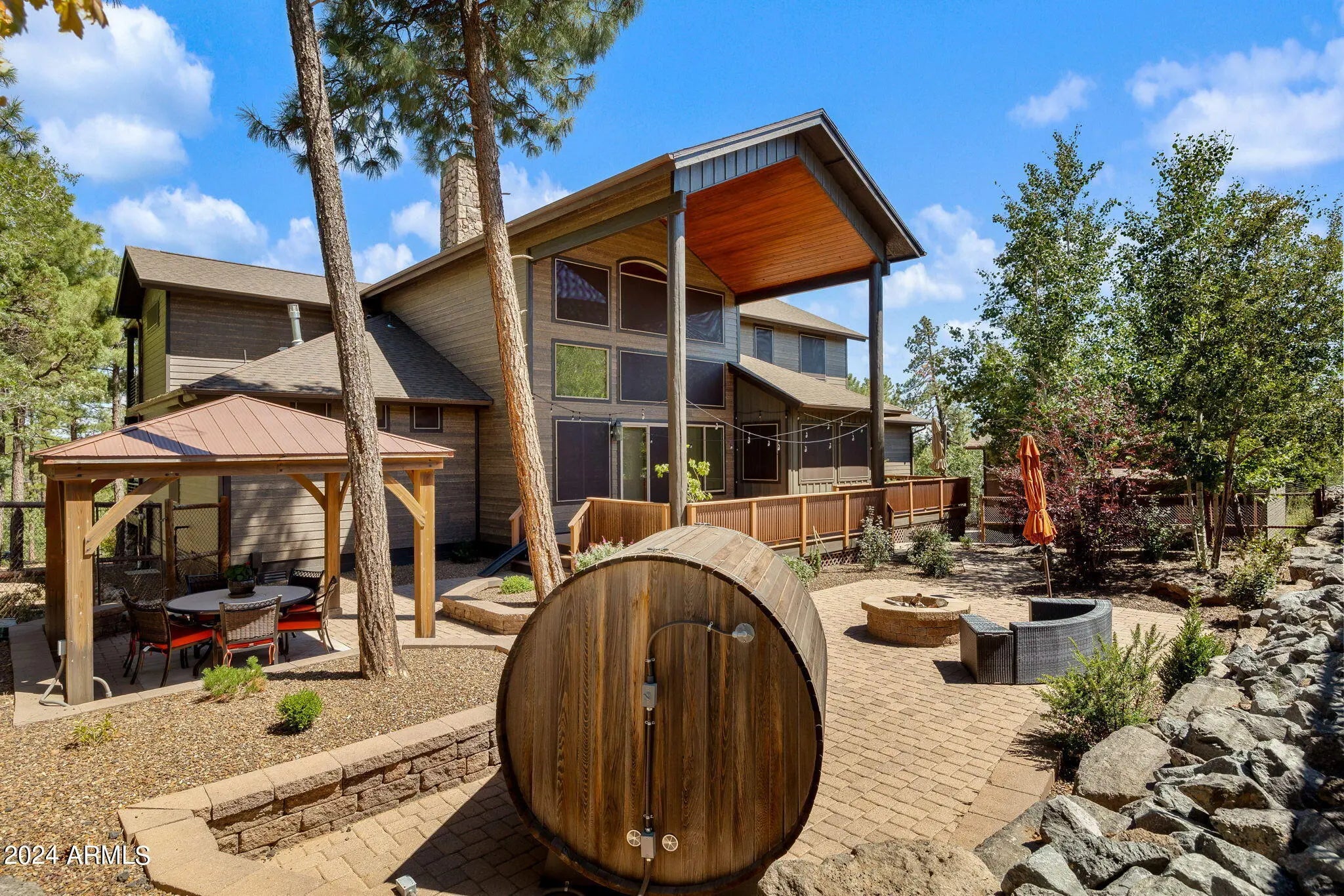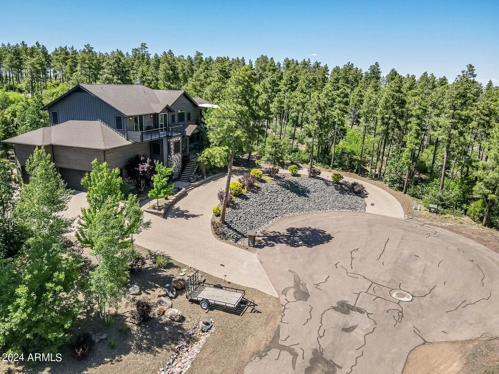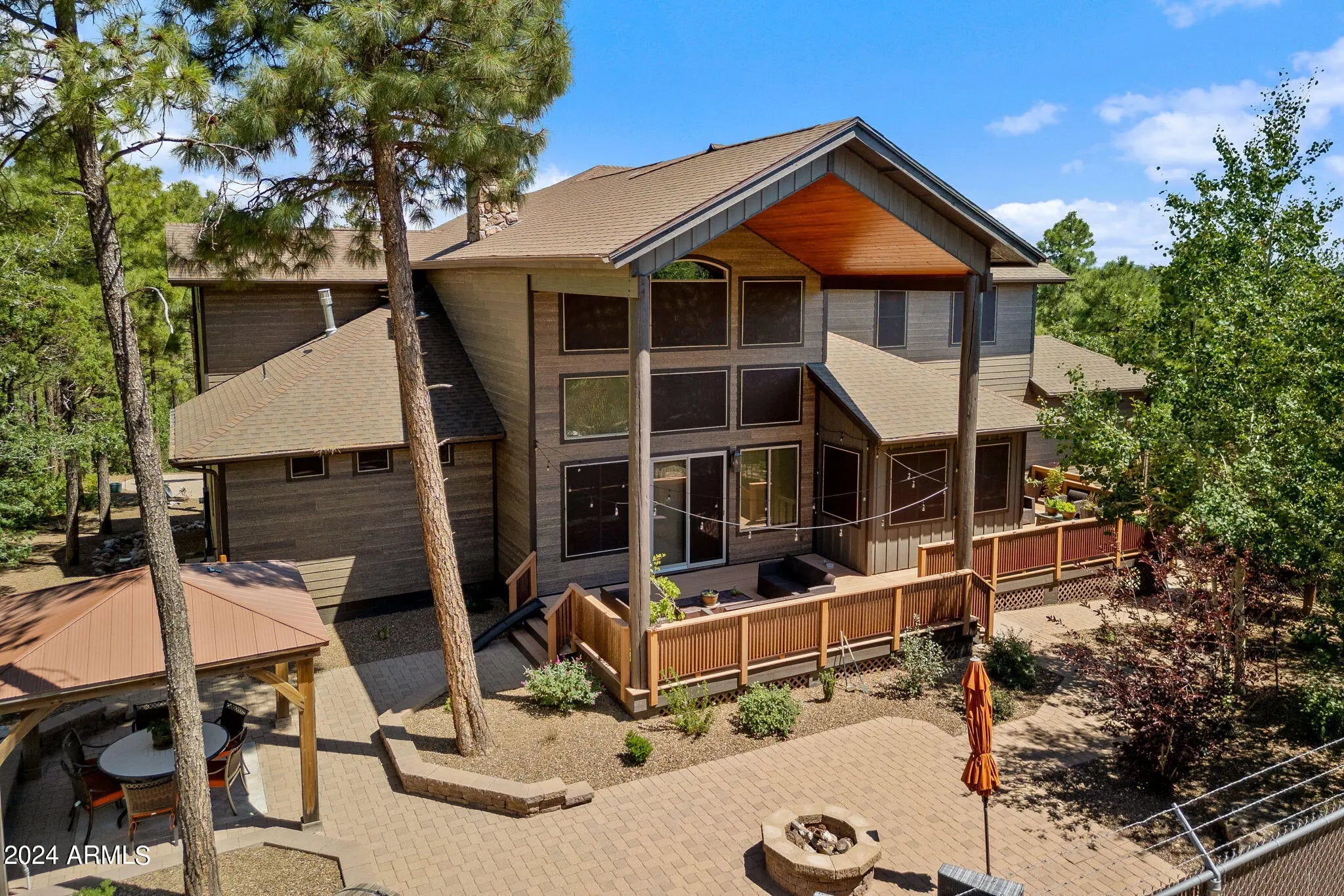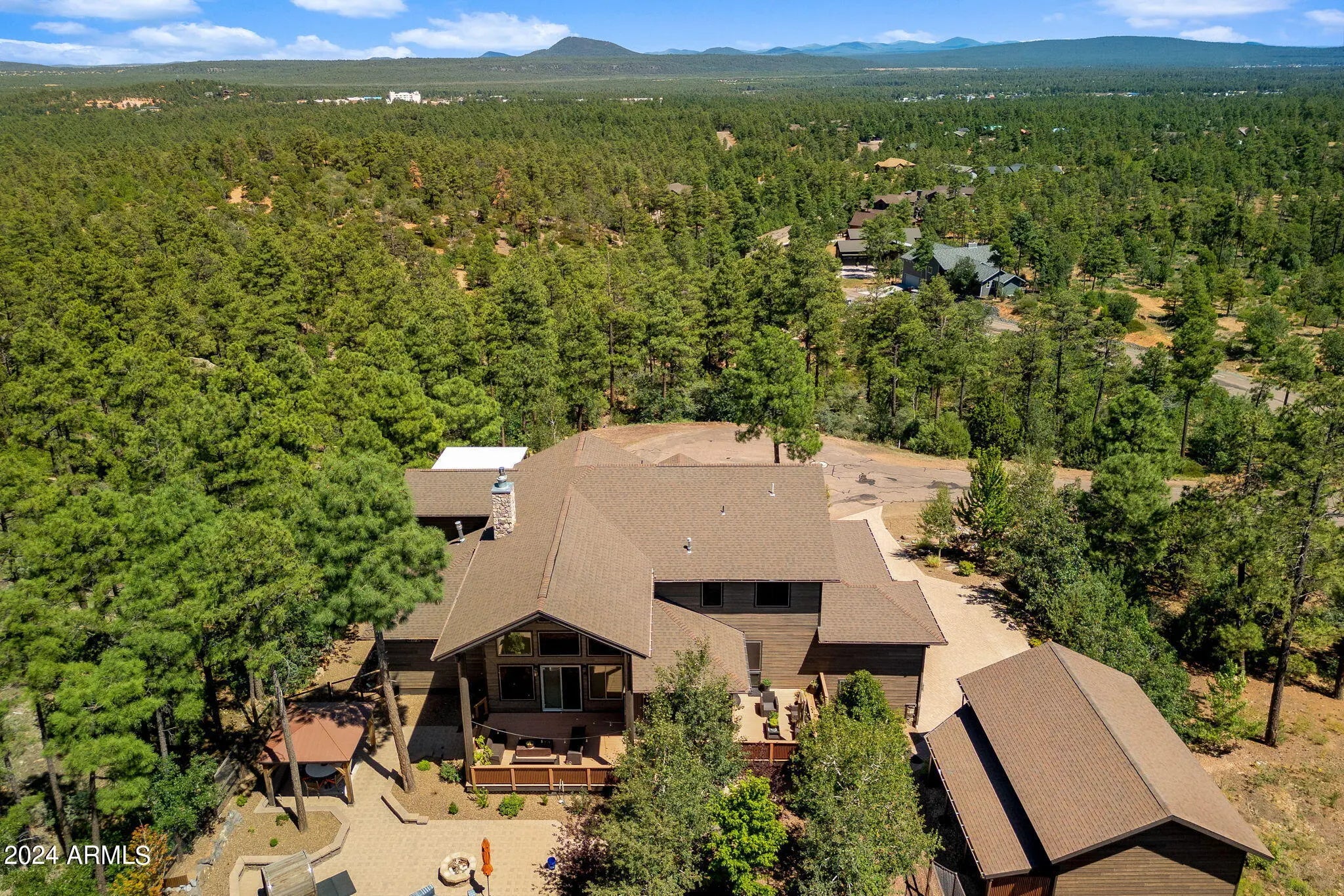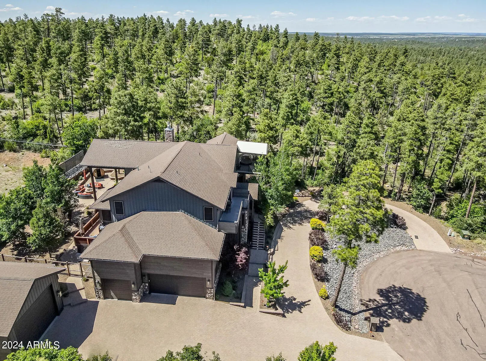 Discover the ultimate in luxury lifestyle on this elevated lot in Starlight Ridge Estates with unforgettable views! Arguably one of the best lots in the White Mountains. Situated in a private cul de sac connecting to the National Forest and Reservation. Perched at the end of the community every area of this estate has spectacular views and has been completely renovated. The result, a sophisticated custom home where functionality is key, yet still elegant, warm and inviting. The unique design truly elevates the principles of timeless appeal and resort style living. Enjoy the outdoors year-round with choices of warm summer days, cool winter evenings, take refuge from the sun under many expansive covered patios, or just relax in privacy. Enter through the welcoming Alder side lite front door Discover the ultimate in luxury lifestyle on this elevated lot in Starlight Ridge Estates with unforgettable views! Arguably one of the best lots in the White Mountains. Situated in a private cul de sac connecting to the National Forest and Reservation. Perched at the end of the community every area of this estate has spectacular views and has been completely renovated. The result, a sophisticated custom home where functionality is key, yet still elegant, warm and inviting. The unique design truly elevates the principles of timeless appeal and resort style living. Enjoy the outdoors year-round with choices of warm summer days, cool winter evenings, take refuge from the sun under many expansive covered patios, or just relax in privacy. Enter through the welcoming Alder side lite front do Discover the ultimate in luxury lifestyle on this elevated lot in Starlight Ridge Estates with unforgettable views! Arguably one of the best lots in the White Mountains. Situated in a private cul de sac connecting to the National Forest and Reservation. Perched at the end of the community every area of this estate has spectacular views and has been completely renovated. The result, a sophisticated custom home where functionality is key, yet still elegant, warm and inviting. The unique design truly elevates the principles of timeless appeal and resort style living. Enjoy the outdoors year-round with choices of warm summer days, cool winter evenings, take refuge from the sun under many expansive covered patios, or just relax in privacy. Enter through the welcoming Alder side lite front door. Once inside you are immediately drawn to the outdoors by the large wall of windows and breathtaking mountain views. The main living areas truly bring new meaning to an open floor plan with sliding doors opening to the expansive covered and uncovered back deck and paver patio. This home takes indoor/outdoor living to a whole new level. The gourmet kitchen is a chef's dream. Offering high-end appliances, two huge center islands, quartz book matched slab & backsplash, coffee bar with custom lite elm wood shelves, two dishwashers, 36" farmhouse sink, custom lighting and two-tone cabinetry, built in 66" fridge-freezer, huge pantry, and a large dining nook. The kitchen, truly designed with cooking in mind, blends perfectly with sleek designed custom elements, sweeping views and an abundance of natural light. Entertaining is a delight with multiple dining & seating arrangements. Spacious, romantic owner's suite with unobstructed soaring mountain views features sliding doors to the covered deck, and a large walk-in closet. Enjoy the spa-like bath with luxurious soaker tub, large walk-in shower w/ bench, dual vanities along with fabulous lighting. Just outside the suite you will find a private workspace with mountain views. Three generous sized secondary bedrooms one of which is an en suite, the other two share a large double vanity, walk in shower and all with custom closets and built-ins. You will notice all rooms were designed with mountain views in mind. In addition, a loft and den provide additional entertainment space. A huge office is beautifully presented with custom barnwood ceiling and tons of natural light. French doors that open to the space off of the entry make this room ideal for a workspace or an en suite for your guests. The fifth room currently used as an executive office can easily convert to a fifth bedroom, fitness or music room. The indoors flow seamlessly to the outside creating indoor/outdoor living sanctuary. Enjoy the stunning sunrises with your morning coffee on one of the three front decks, or spend your evenings on the back deck with a glass of wine watching the sunset. Enjoy watching the Monsoons roll in with their spectacular lightning shows from the large upper deck, or watch the many spectacular meteor showers clear skies allow. In addition, the full spectacular fall harvest moons, blood red moons and the smell of the mountains after a rainstorm will take to a place of relaxation! The 3-car attached garage is worth talking about. Having a desired side load entry features lofty ceilings and you can add a few lifts to make room for 6 cars. Don't forget the detached RV Garage! The 6000+ square feet of paved driveway with a circular boulevard and side parking create enough room for many additional vehicles. This is more than a house; it is a lifestyle. Enjoy the romance of the property, the birds & wildlife & the sound of the wind rustling through the hundreds of mature ponderosa pines and oak trees. In addition, sitting by the crackling backyard firepit provides space for engaging in deep conversation or simply just enjoying the silence. Architectural design and the blending of indoor and outdoor spaces make this timeless splendor an irreplaceable home, unique in every aspect, no detail has been left out. This home lives like your own private & tranquil Arizona Mountain Resort. Minutes from the amenities that Pinetop-Lakeside and Show Low have to offer. Close to plenty of golf courses, the hospital and the local lakes. This home is situated in one of the most amazing and private locations the White Mountains has to